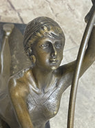 Elevating the aesthetic appeal, the statue is mounted on a luxurious marble base, adding a touch of sophistication to its presentation. The choice of marble not only complements the bronze figure but also enhances the overall visual impact. The combination of bronze and marble creates a harmonious blend of materials, elevating the statue to a level of refined elegance. As a representation of the Art Nouveau style, this sculpture embodies the era's commitment to fluid lines, organic forms, and a celebration of natural beauty.