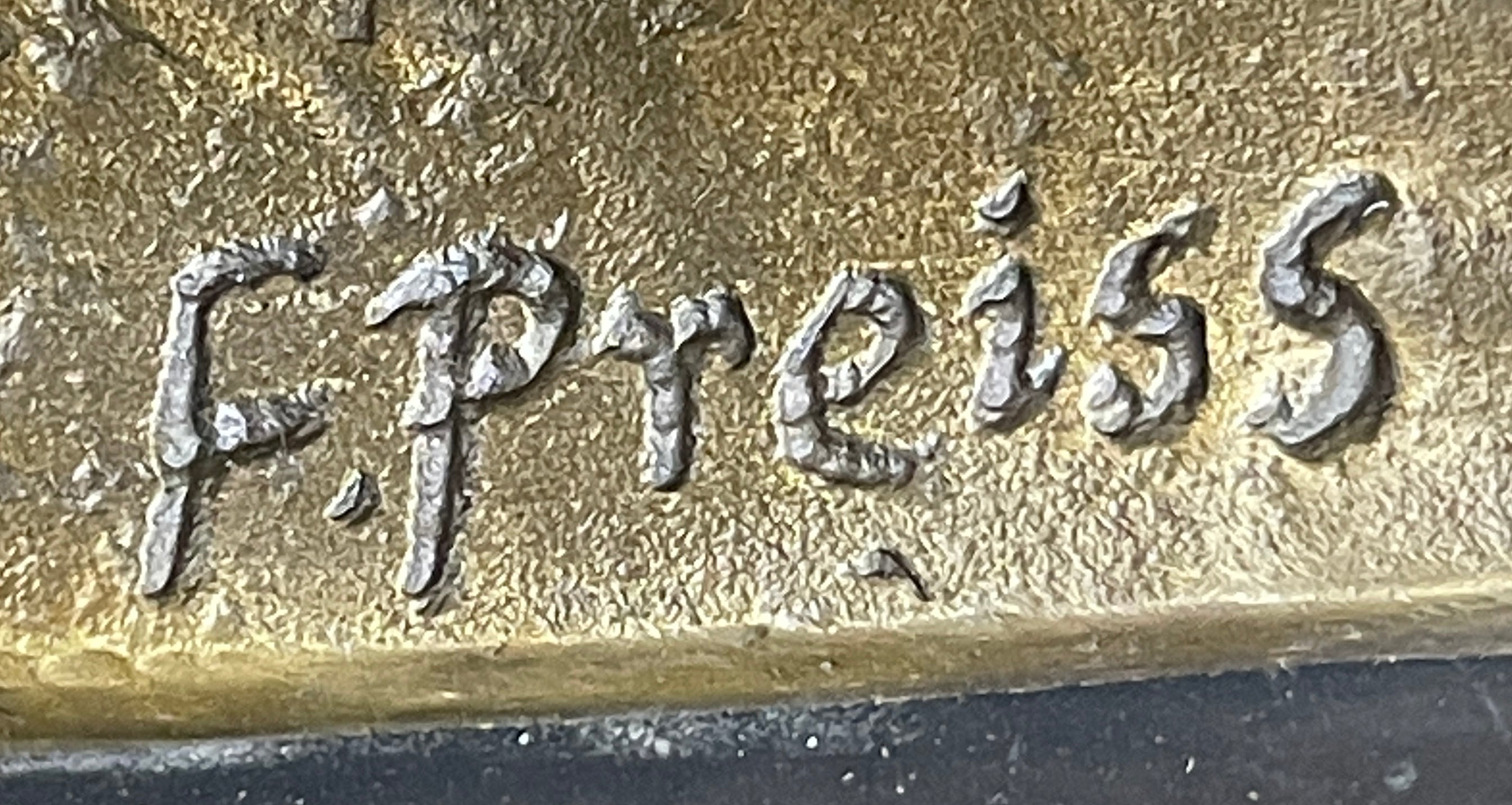 Adding a distinctive touch, the statue is signed by the artist Priess, marking it as a unique and quality piece of art. The signature serves as a seal of approval, attesting to the skill and creativity of the artist behind this exquisite creation. Whether displayed in a private art collection or as a focal point in a curated space, the Preiss Sitting Lady Bronze Art Nouveau Statue on Marble Base stands as a captivating embodiment of artistic mastery and the timeless beauty of the Art Nouveau movement.Bronze Dimensions with Marble Base: Height 16 1/2" X Width 12"