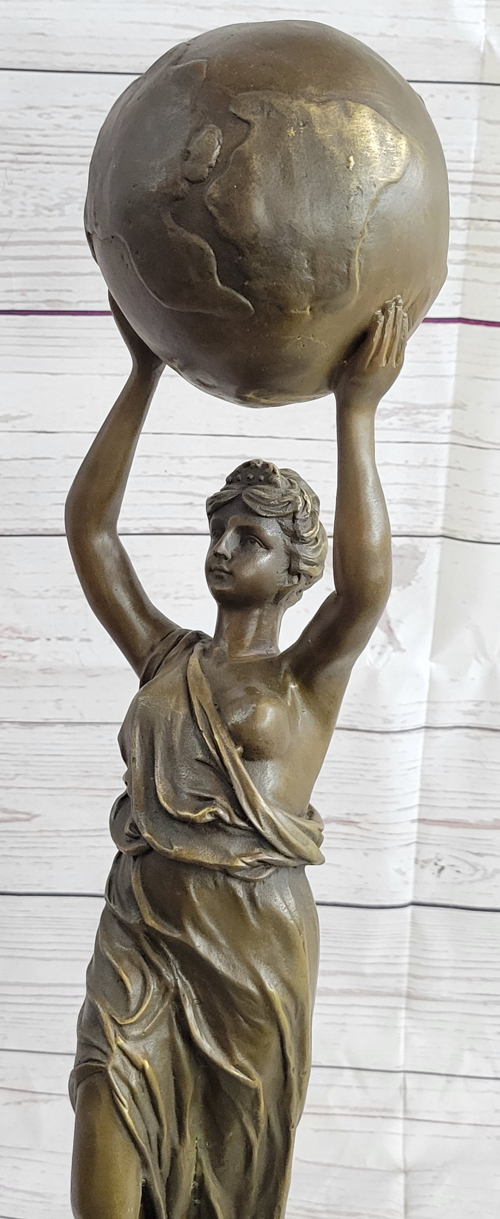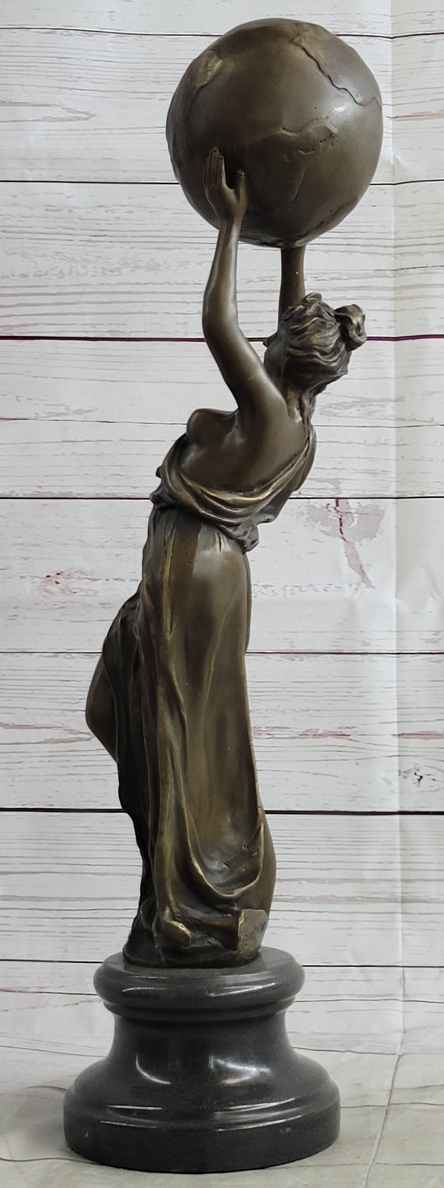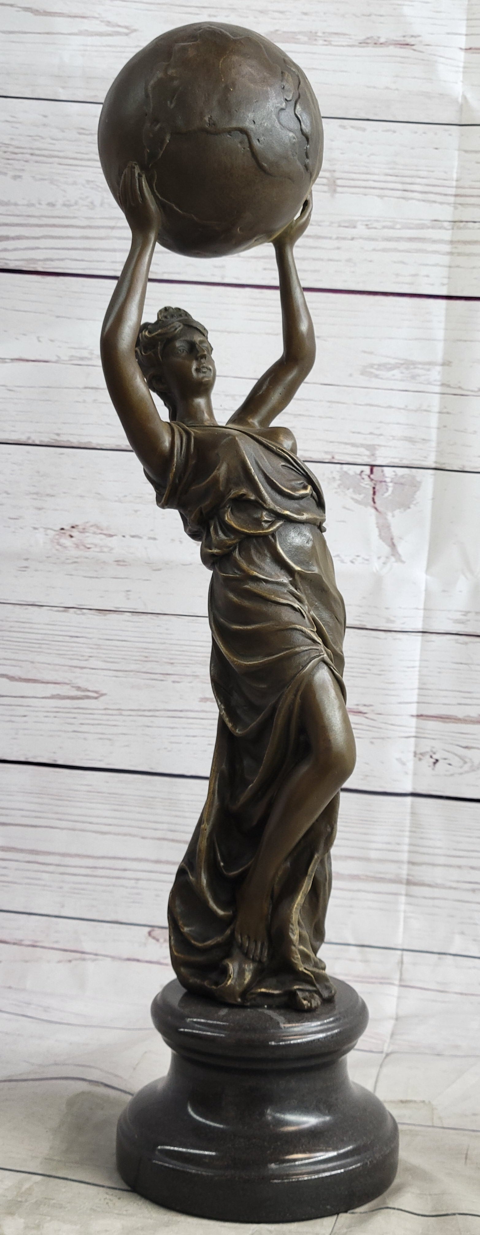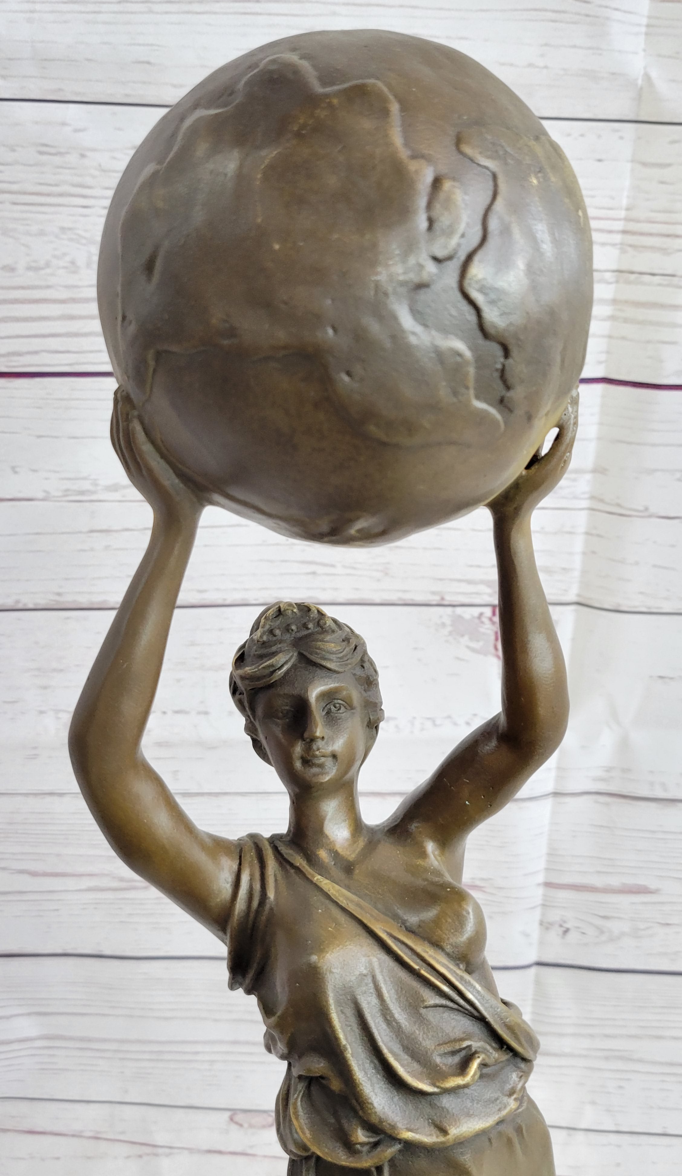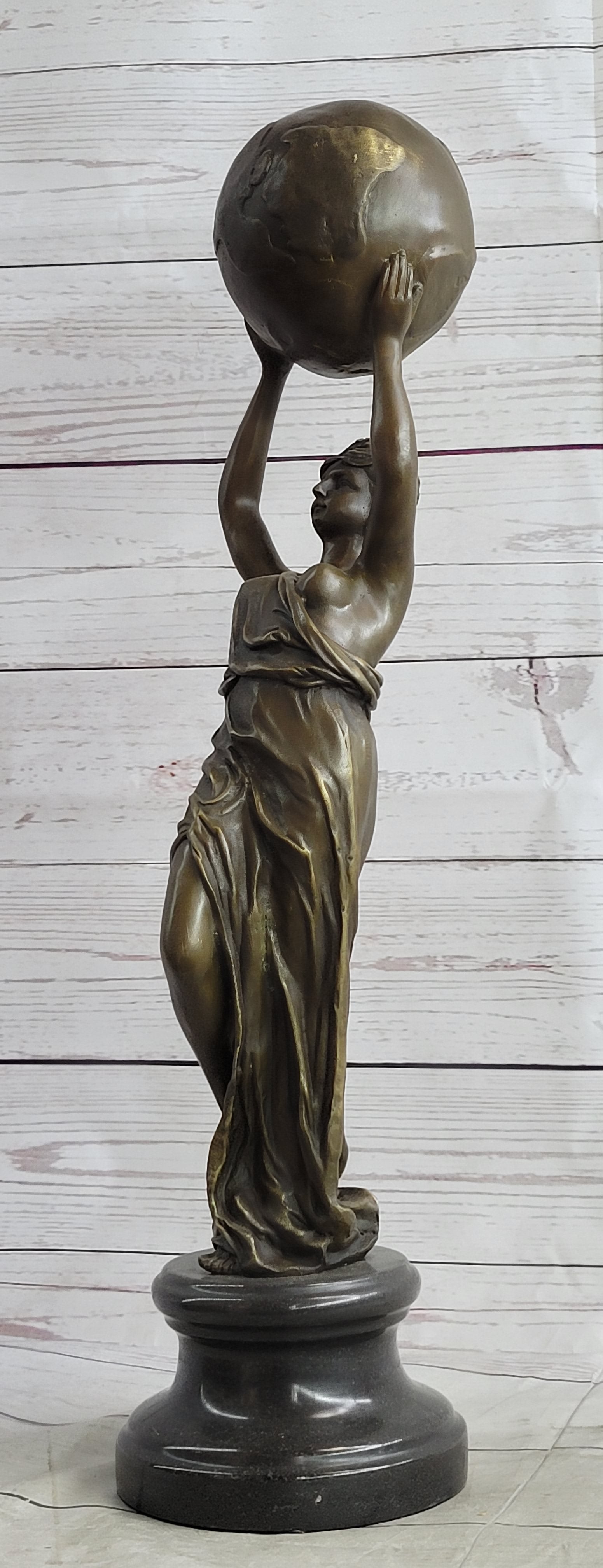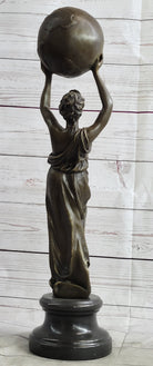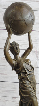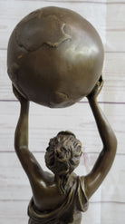 Semi Nude Female Atlas Holding the World Globe Bronze Sculpture Statue