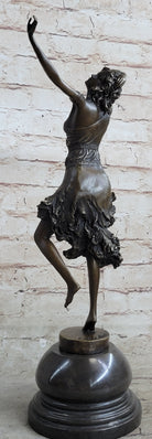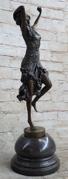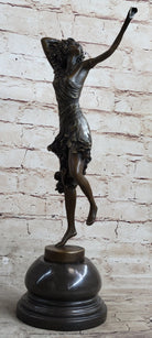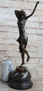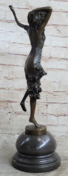 Semi Nude Female Dancer Art Deco Bronze Sculpture Statue Figure on Marble Base