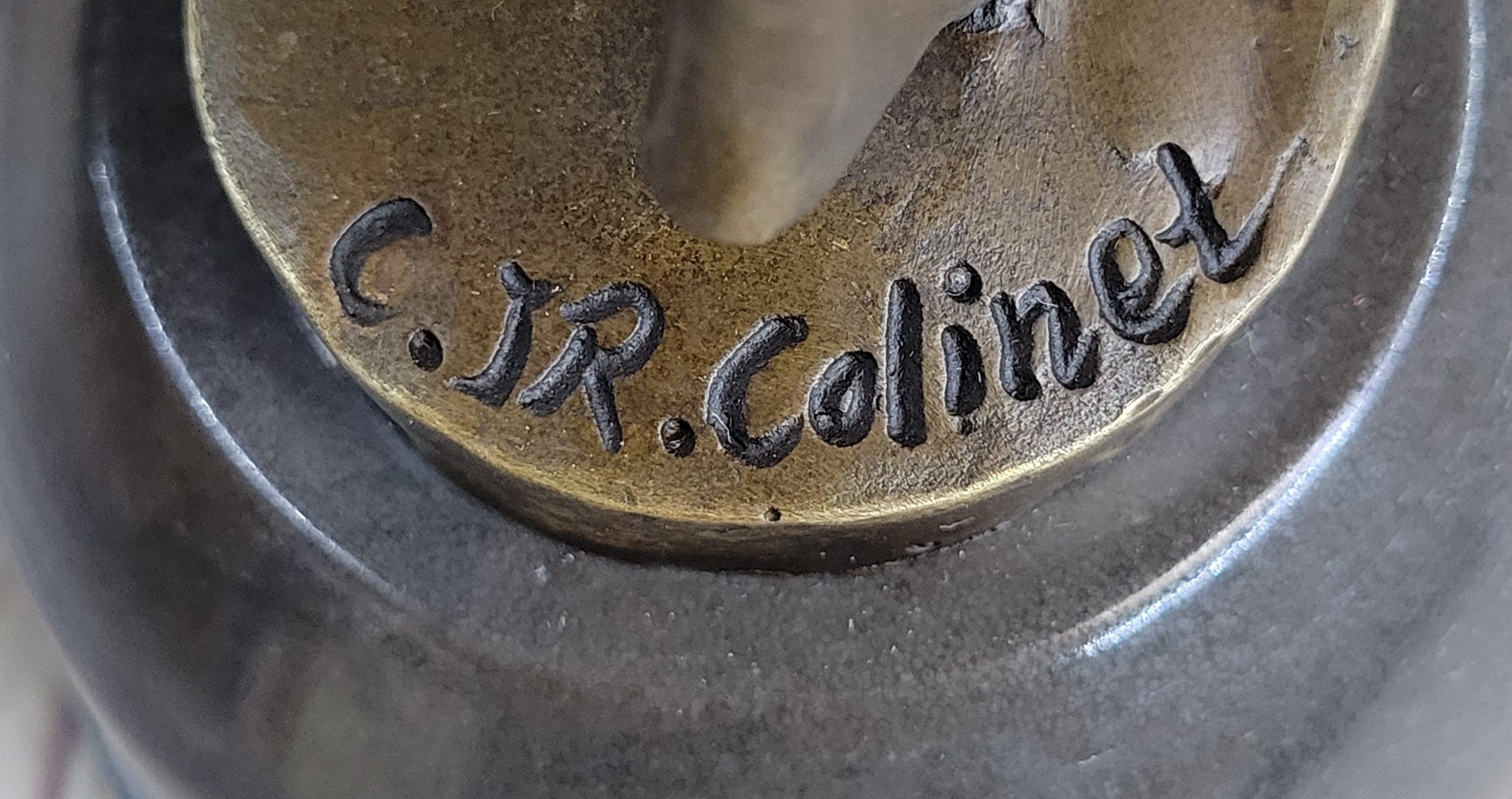 Crafted using the esteemed Lost Wax Method, this sculpture boasts a two-tone brown patina that enhances its depth and dimension, bringing the figure to life with stunning realism. Mounted on a marble base, it exudes a sense of stability and sophistication, creating a striking contrast to the fluidity of the dancing figure. Signed by C.JR Colinet, a renowned sculptor known for her dynamic and energetic sculptures, this piece is a true masterpiece that captures the beauty and grace of dance in timeless bronze.