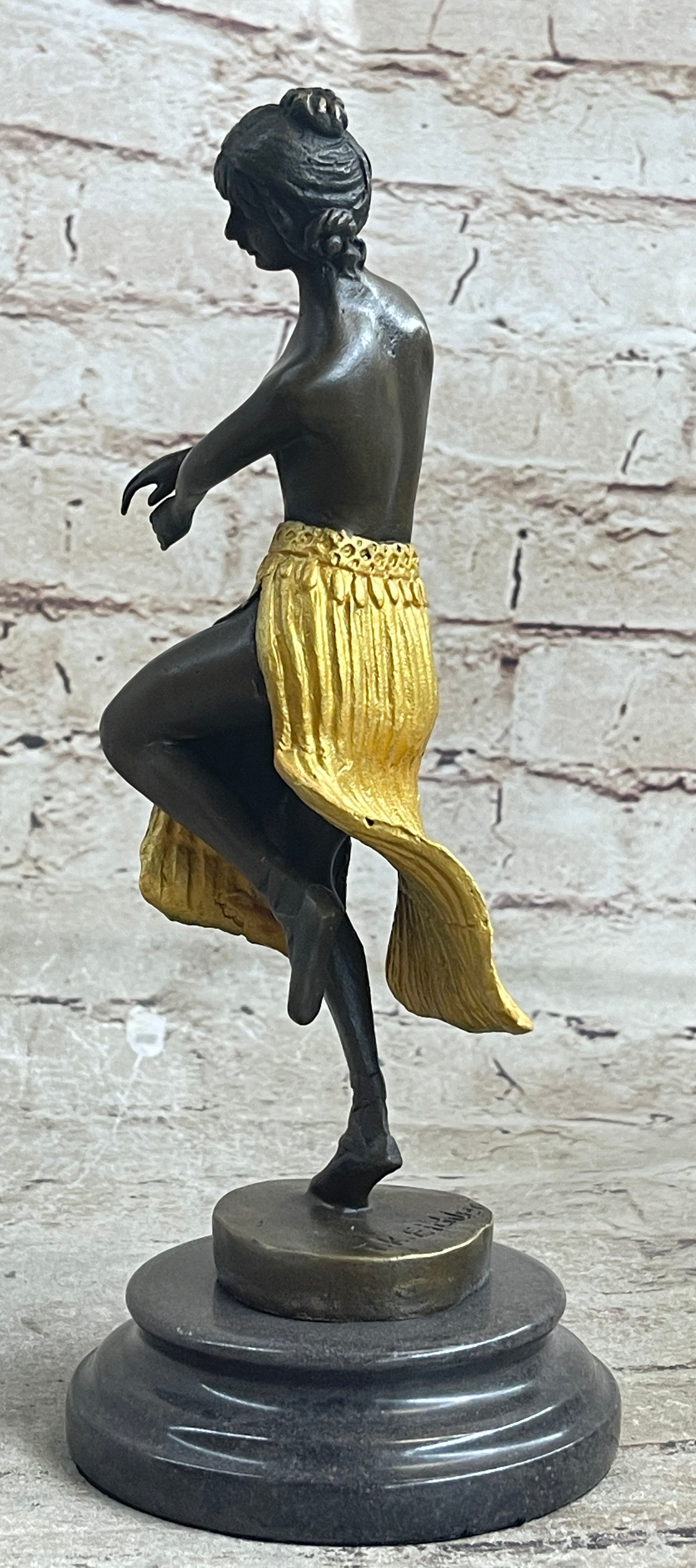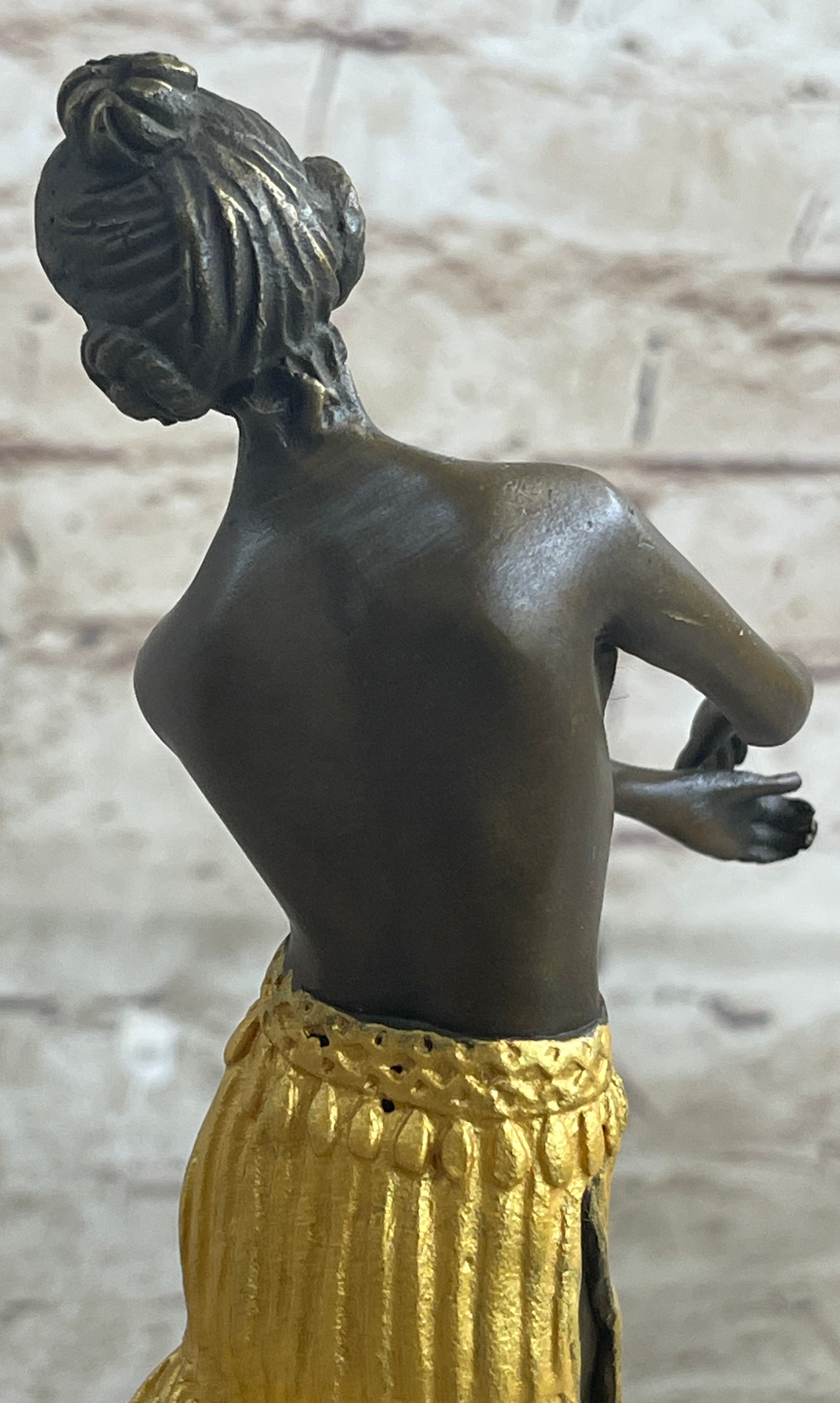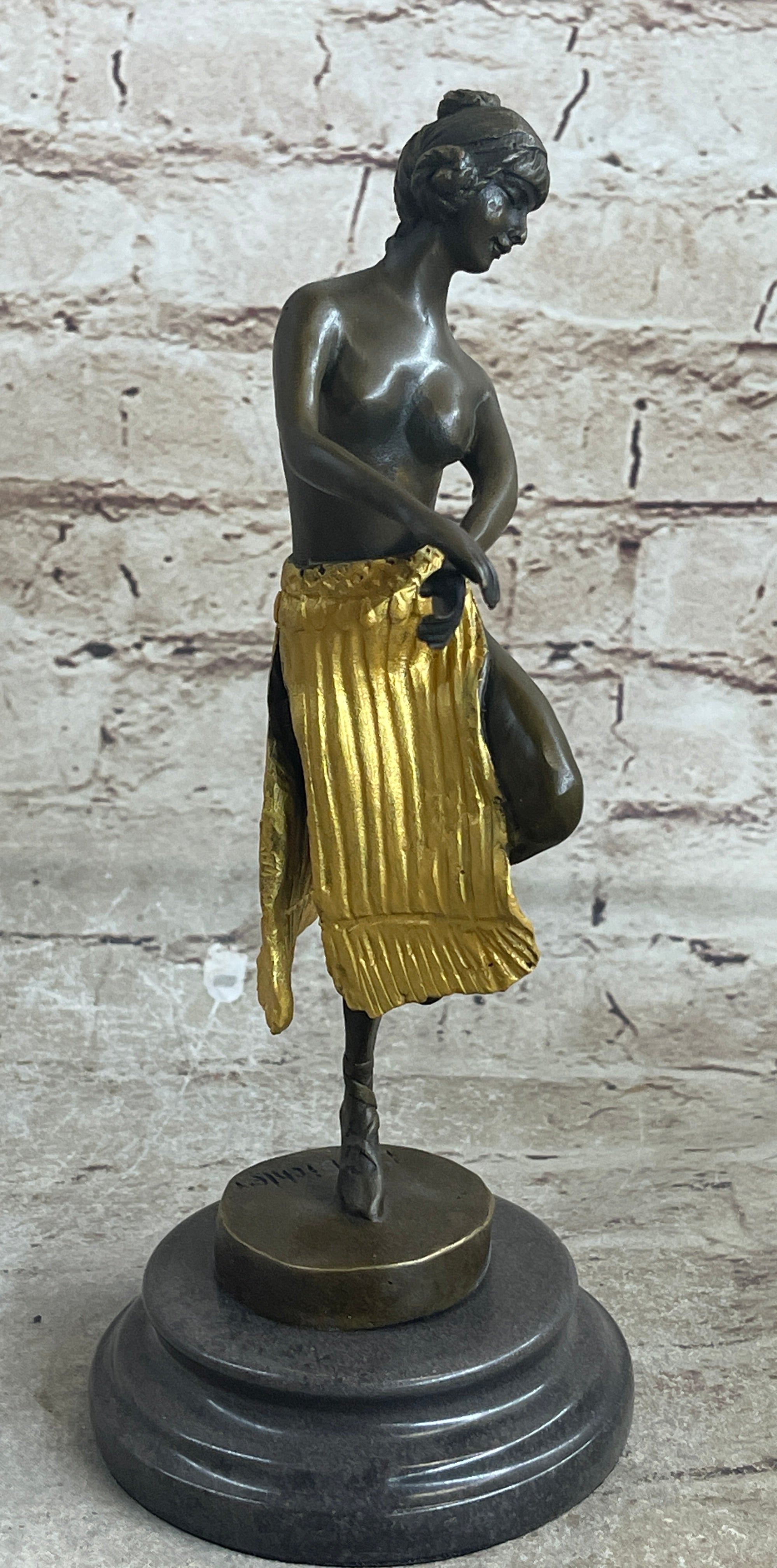 Semi Nude Female Hawaiian Dancer Girl Hula Skirt Bronze Statue Sculpture Figure Gold Patina