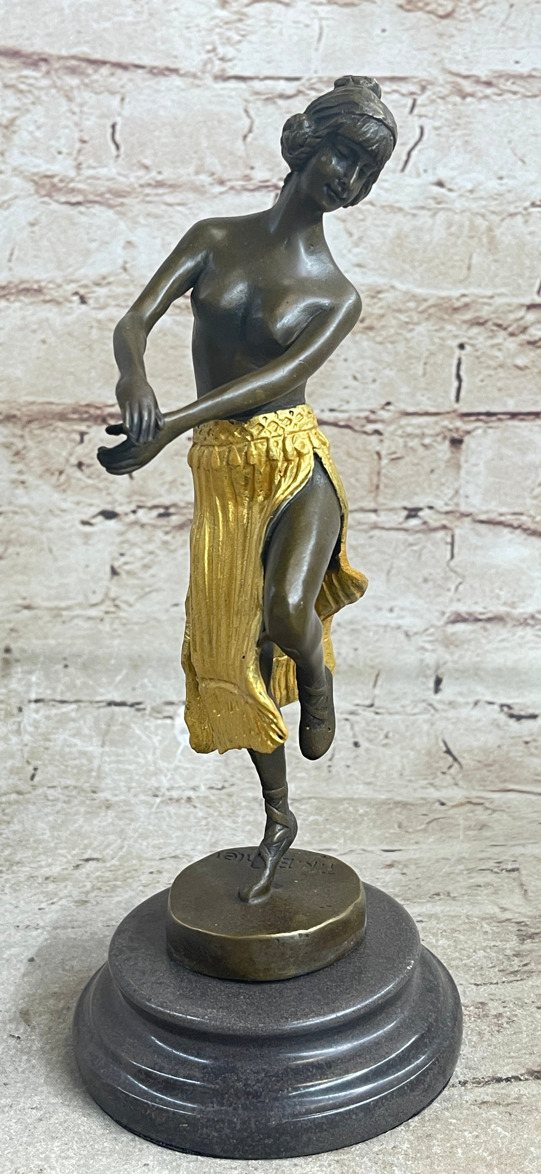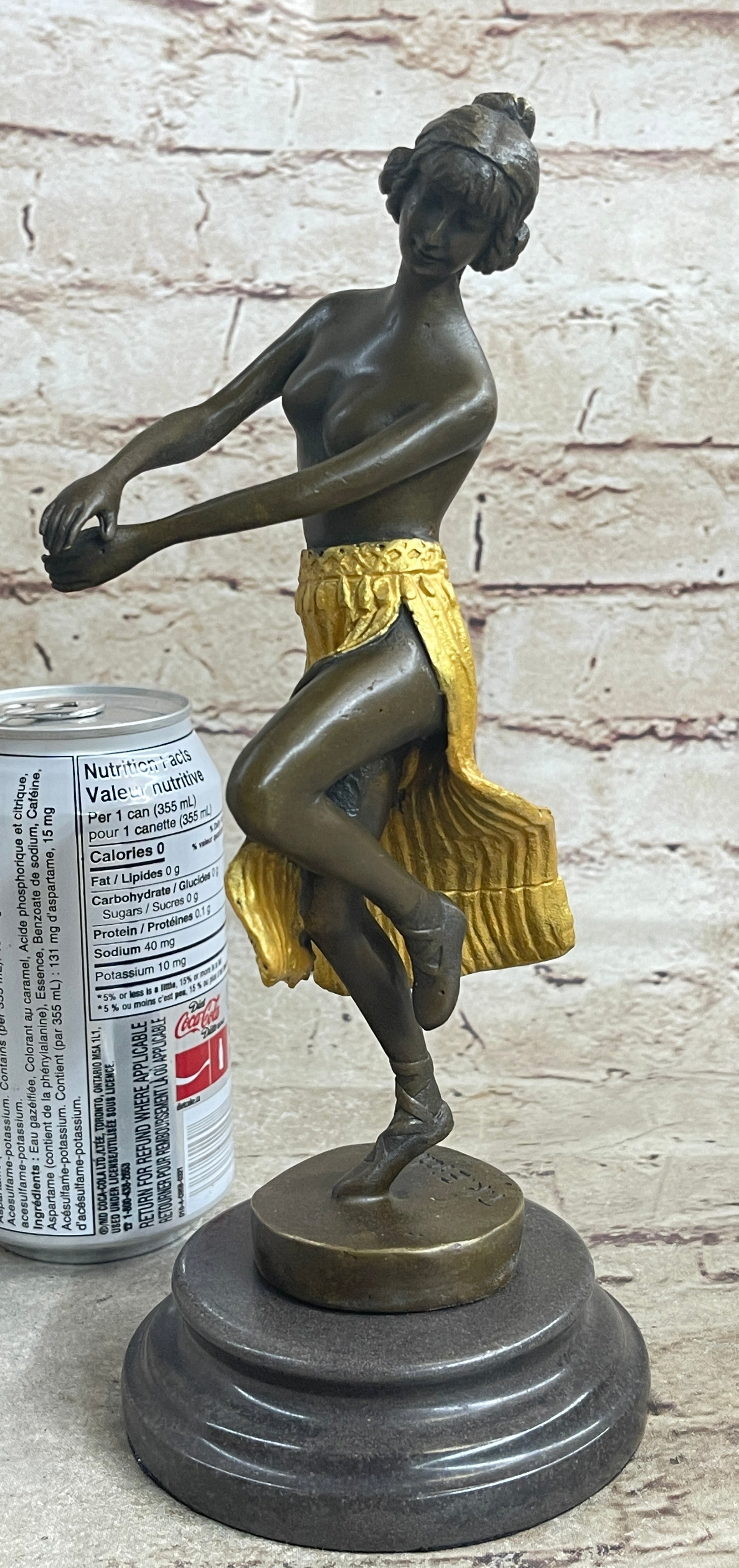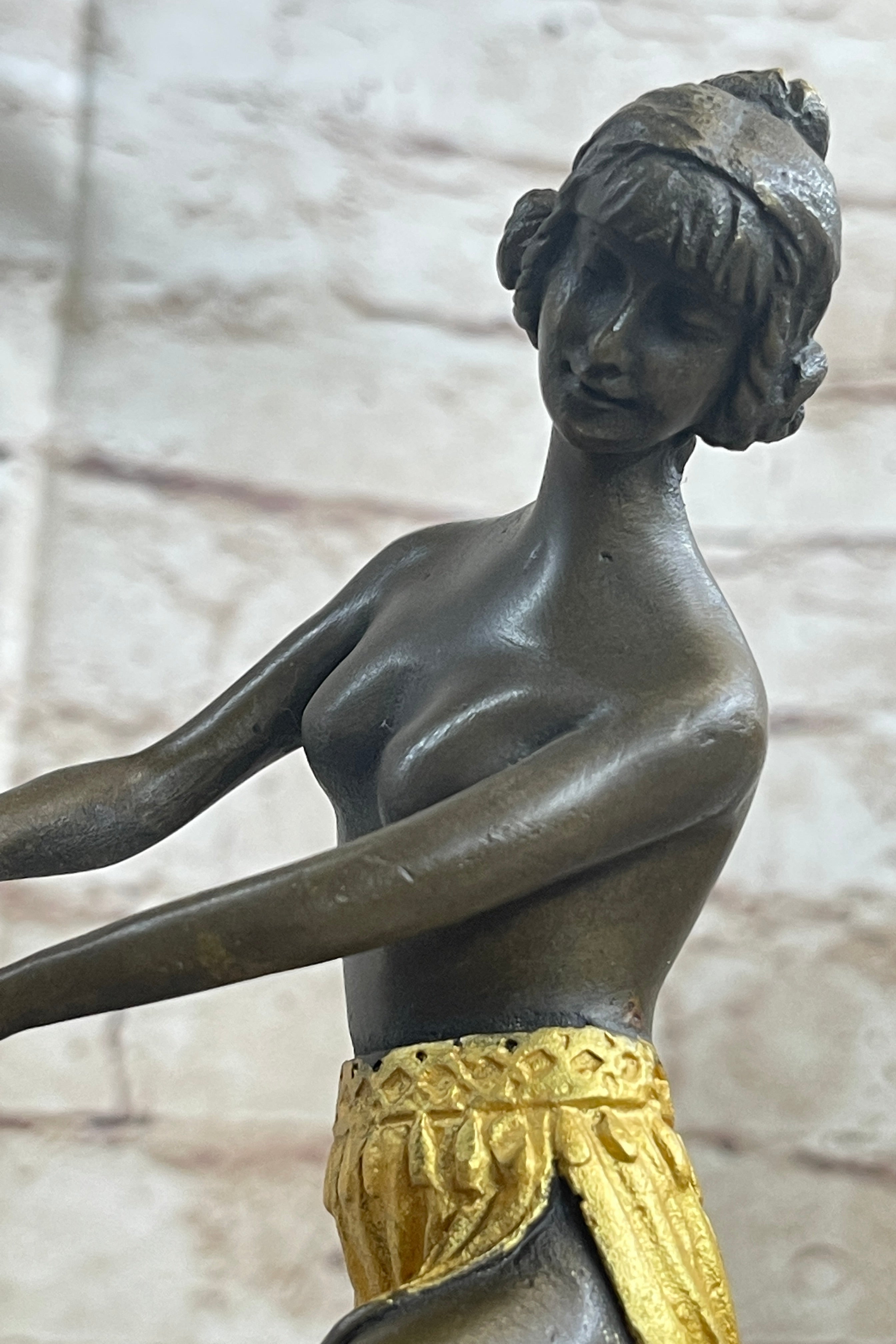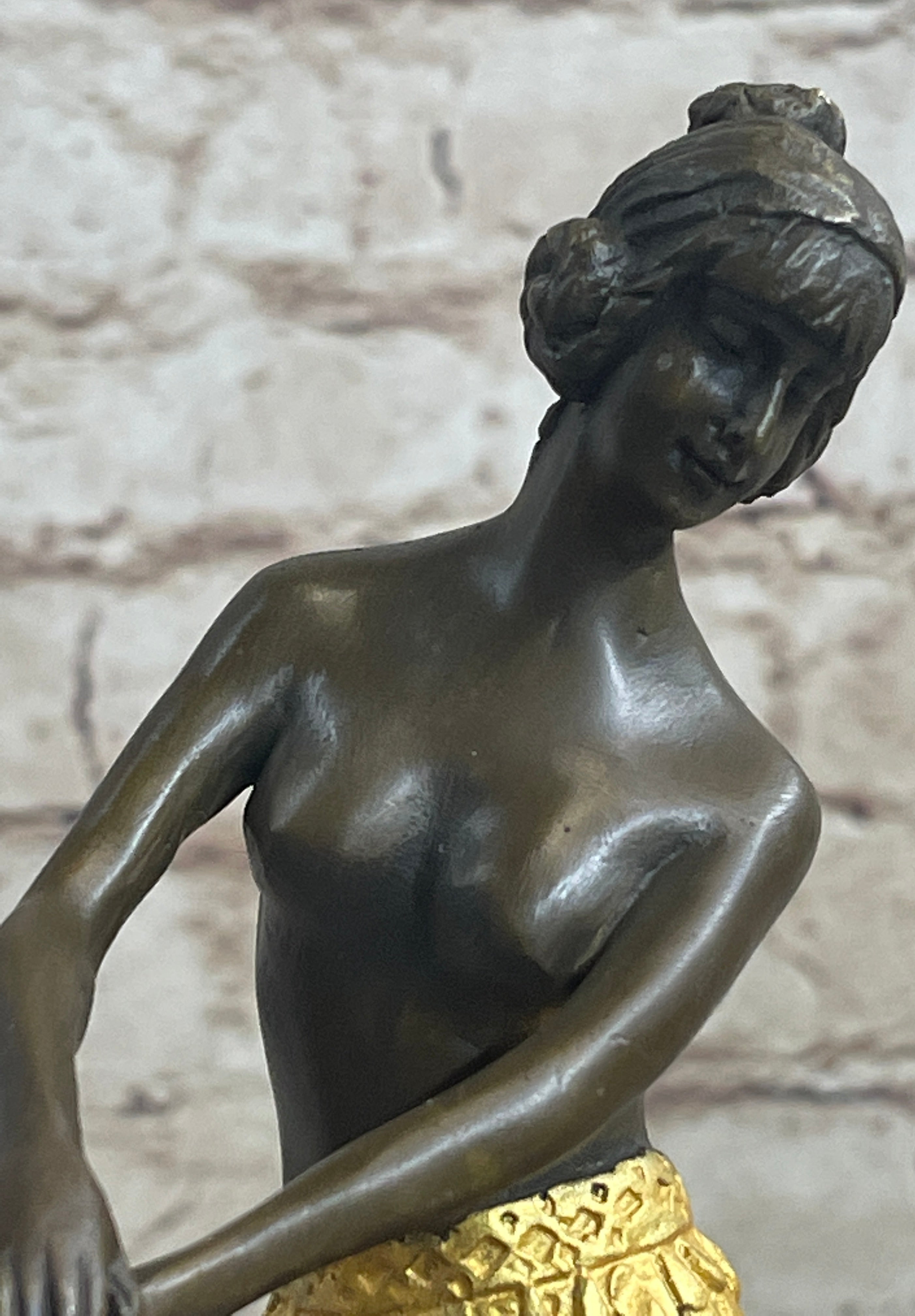 Semi Nude Female Hawaiian Dancer Girl Hula Skirt Bronze Statue Sculpture Figure Gold Patina