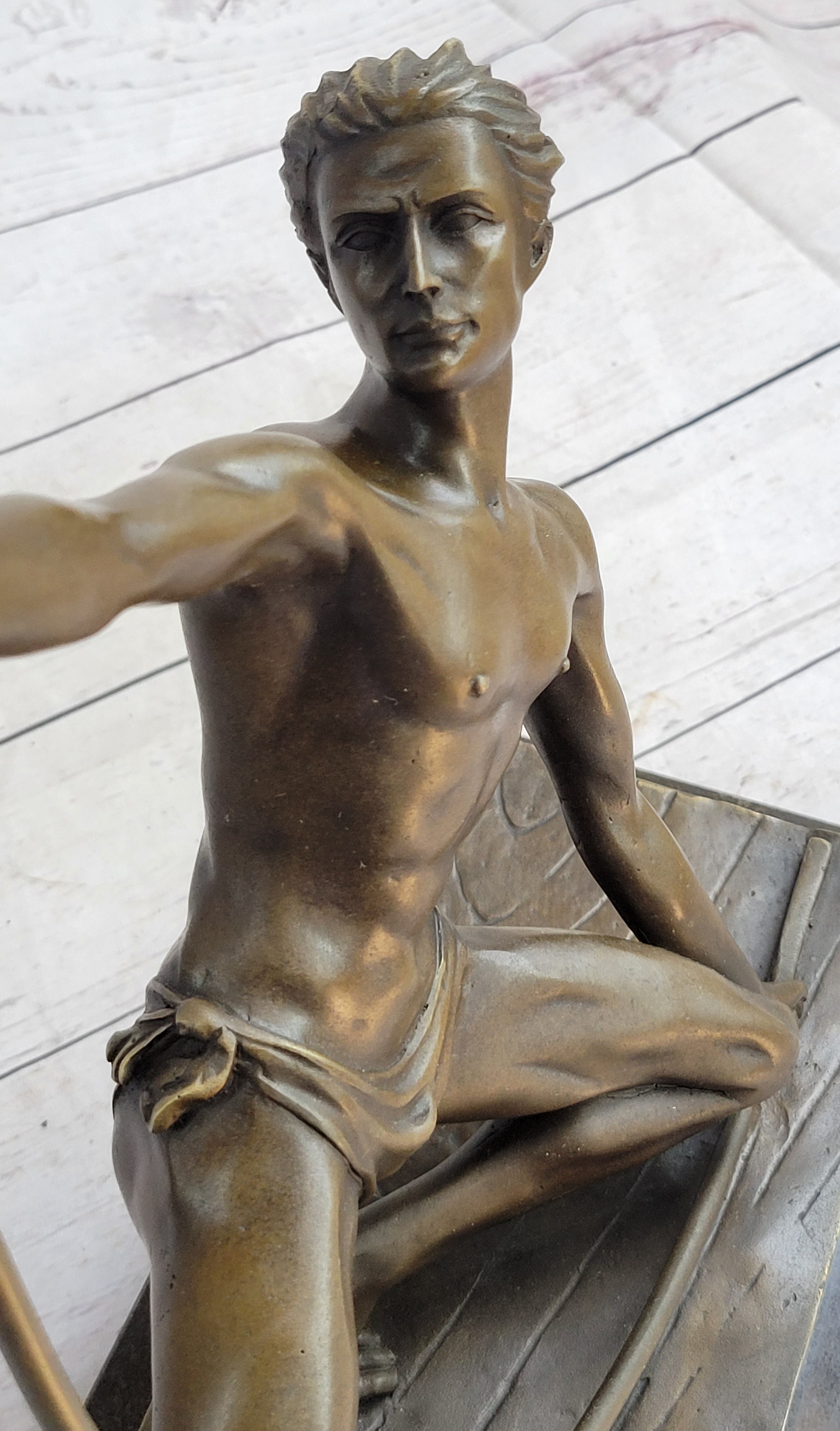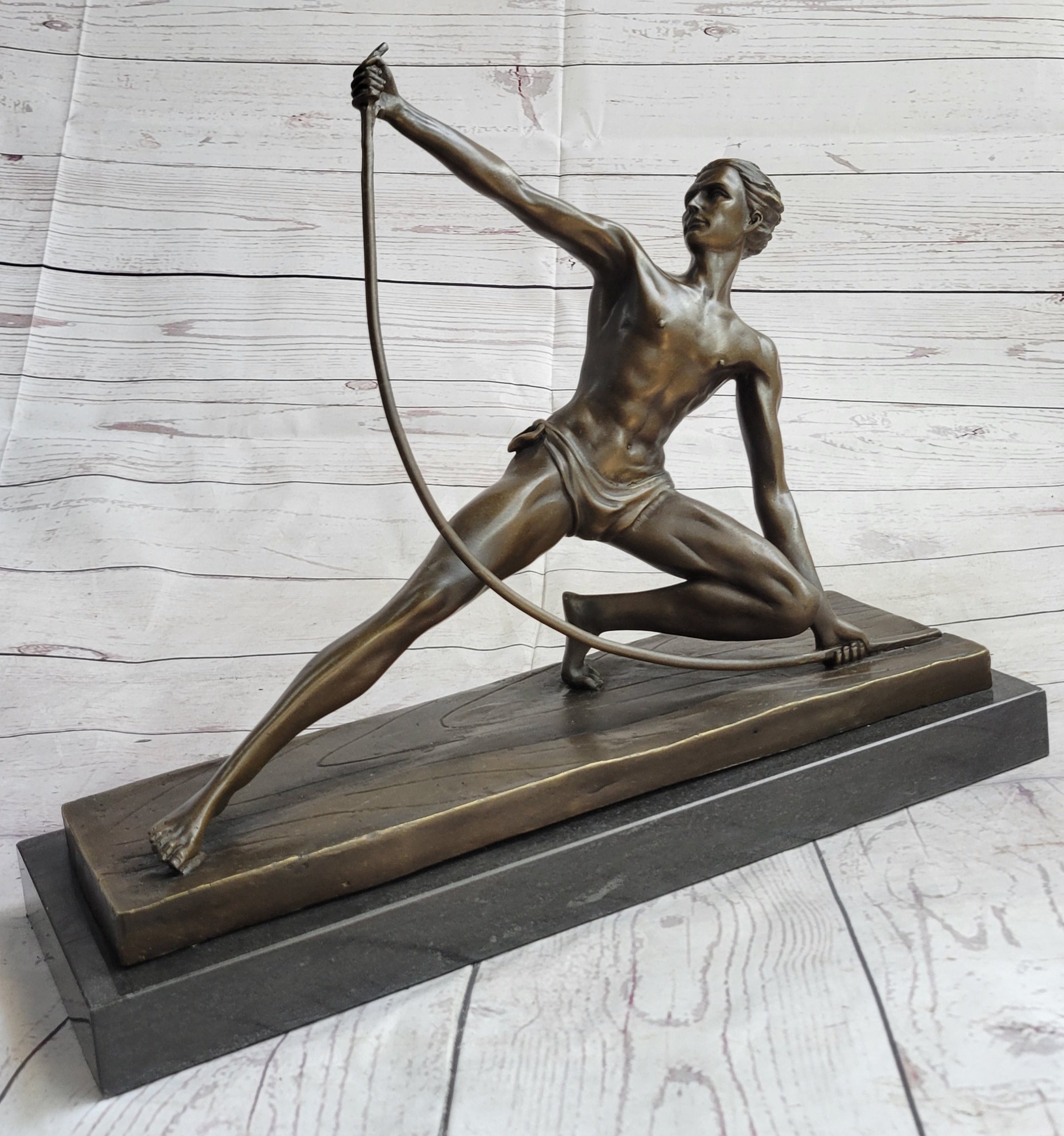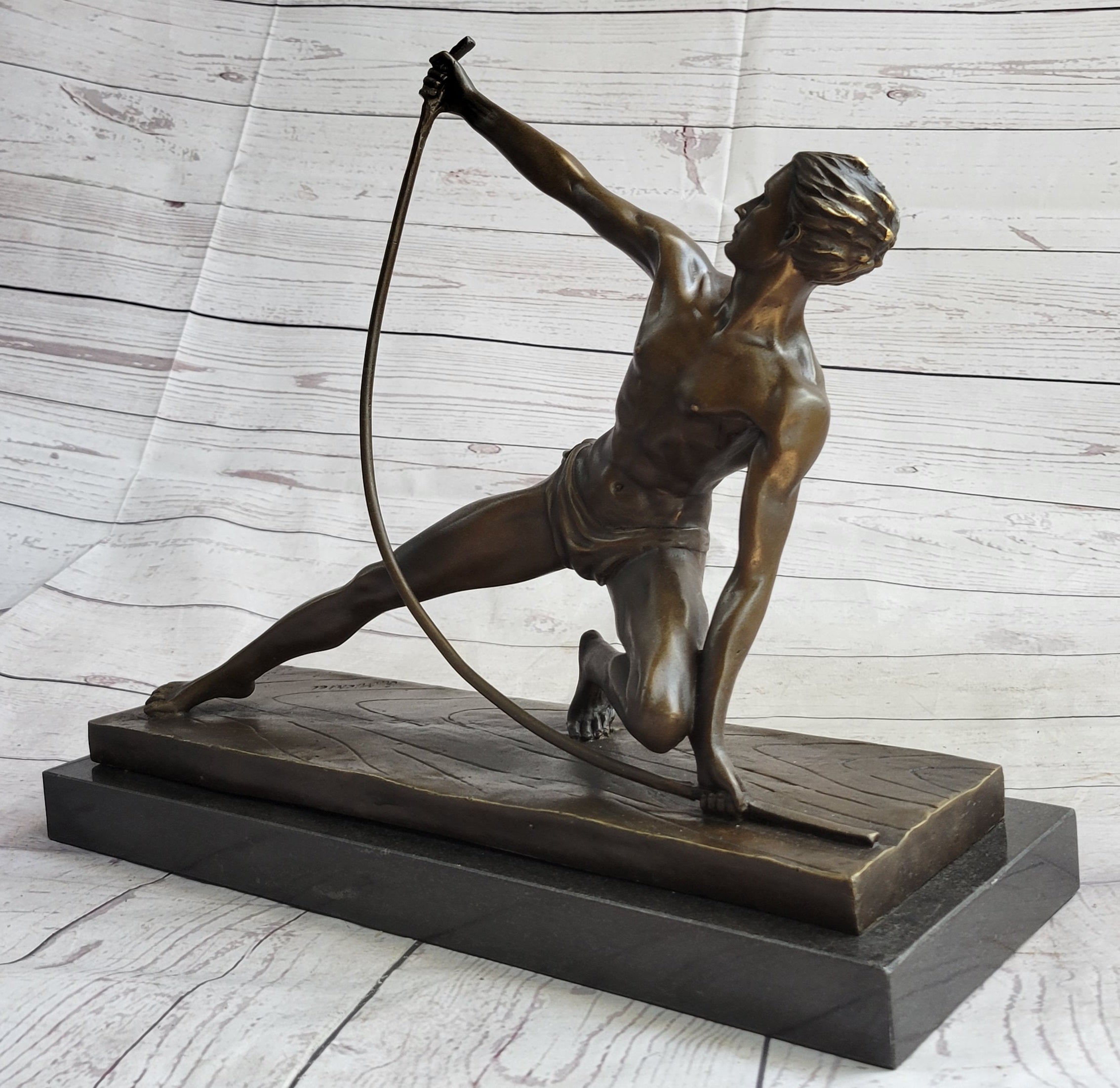 Semi Nude Muscular Male Archer by G. Michiel Bronze Sculpture Statue Art Deco 14" x 16.5"
