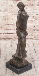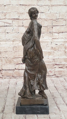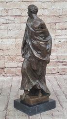 This exquisite sculpture, made of 100% bronze, is a testament to the artistry and craftsmanship of its creation. Handmade and cast using the ancient "Lost Wax Method," it boasts a special brown patina finish that enhances its intricate details and rich texture. The attention to detail in her attire and expression brings this classic figure to life, making it a striking piece of art.