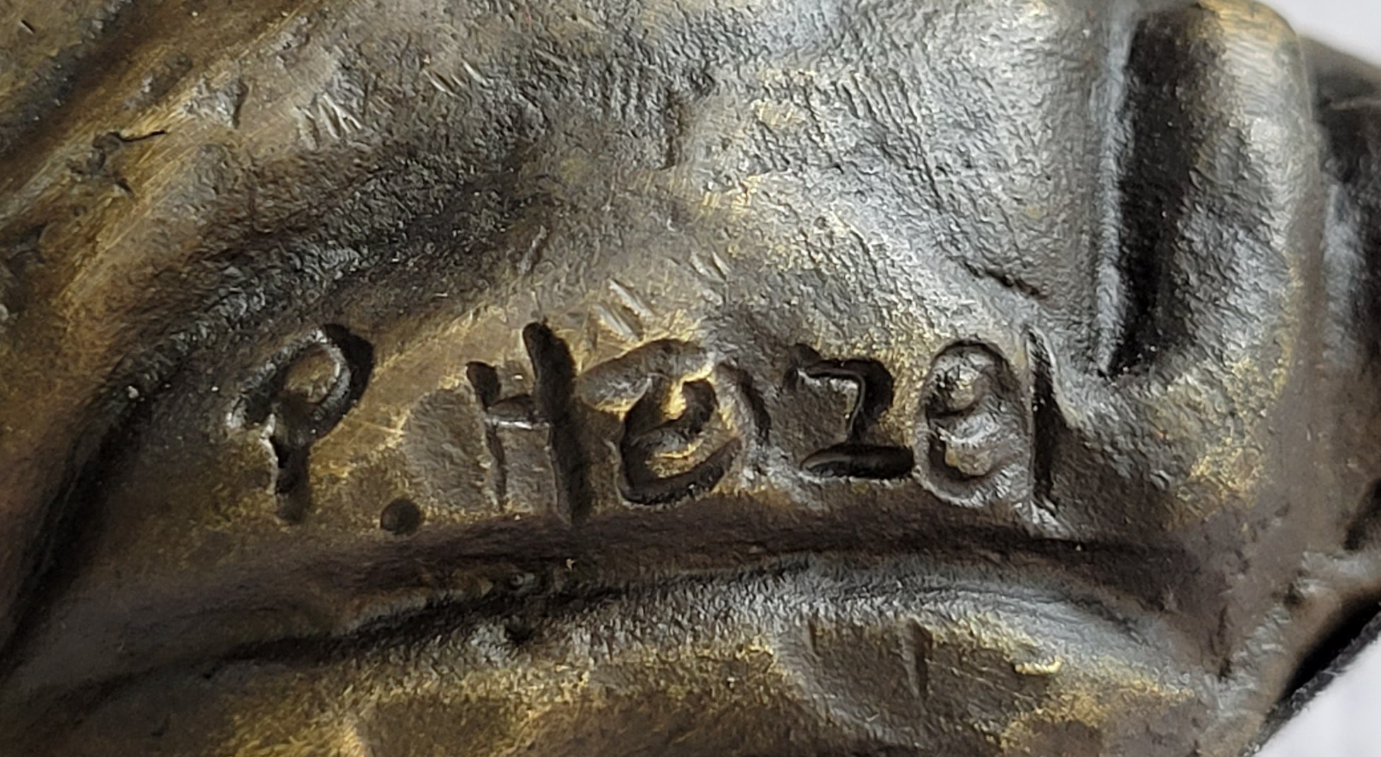 Signed by the artist P. Herzel, this sculpture not only represents a beautiful artistic creation but also a genuine appreciation for the special relationships we share with our canine friends. It serves as a heartfelt reminder of the joy, loyalty, and companionship that dogs bring into our lives. Display this charming piece in your home to honor the enduring bond that makes dogs an integral part of our families, and celebrate the love and happiness they bring every day.Bronze Dimensions: Height 6 1/2" X Width 6"