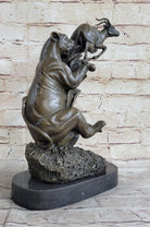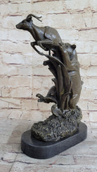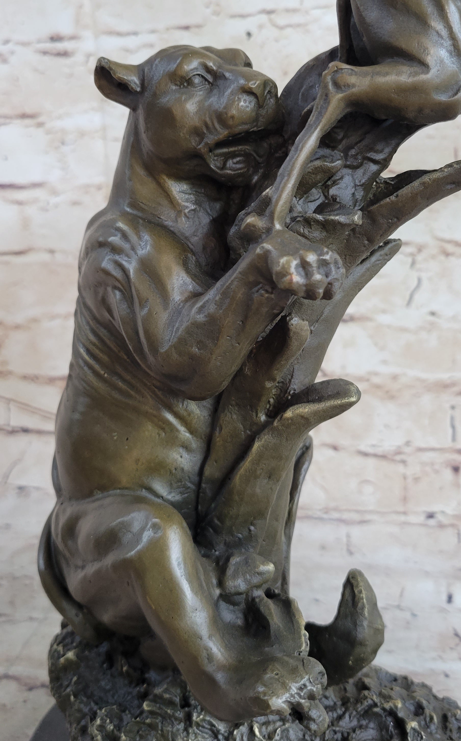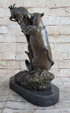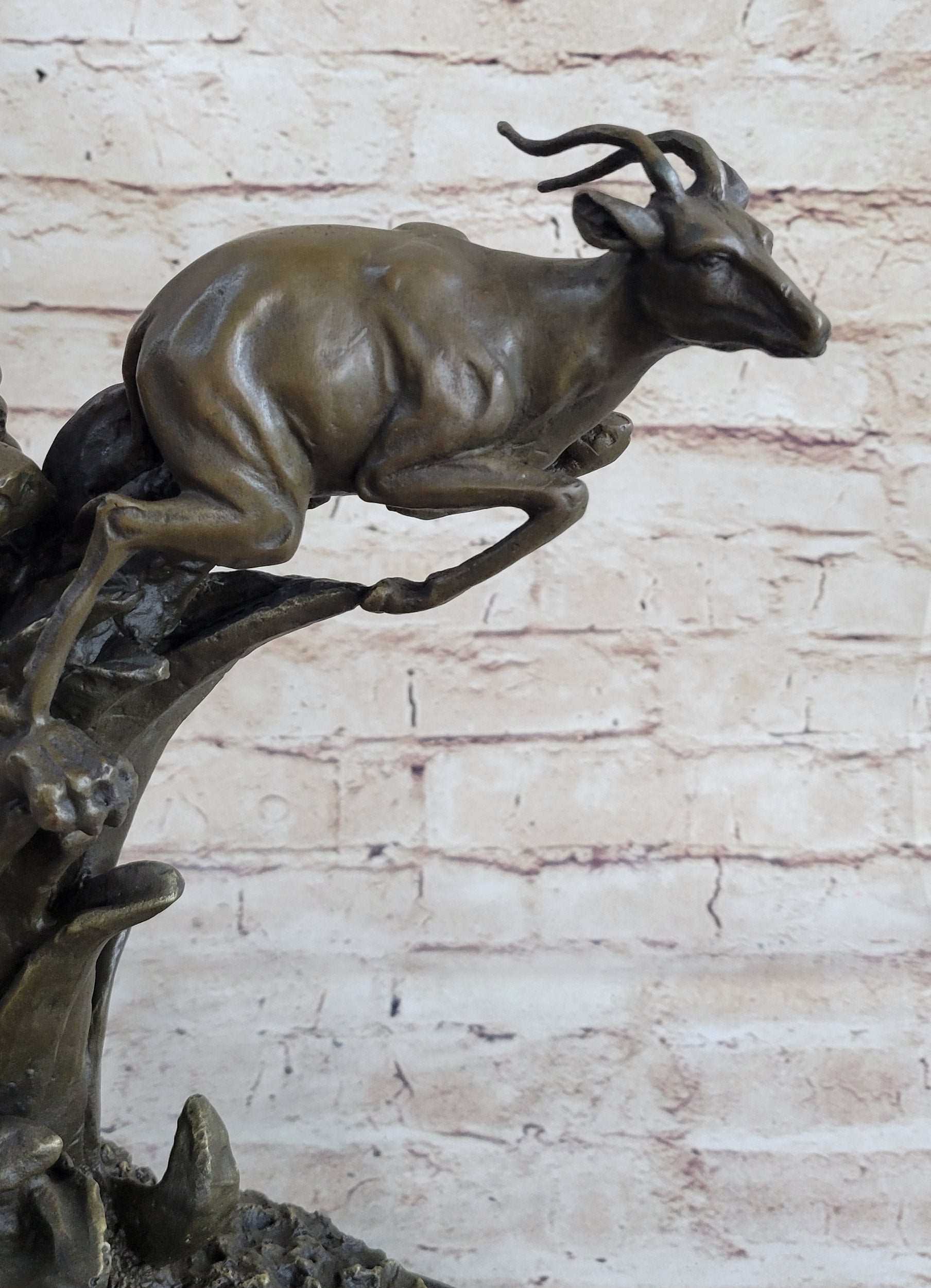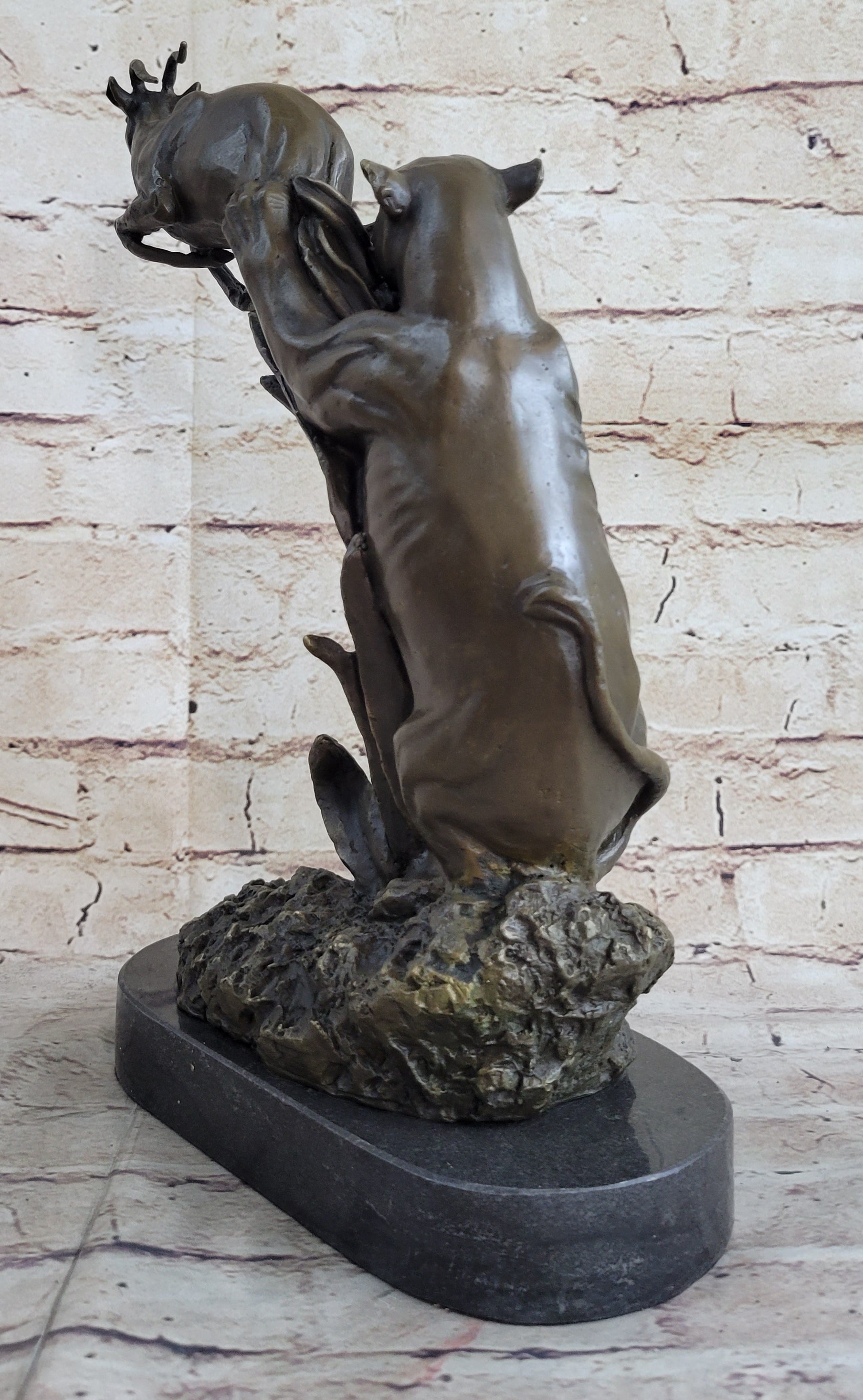 Sign Hot Cast Barye Jaguar attacking Baby Gazelle Bronze Marble Sculpture Figure