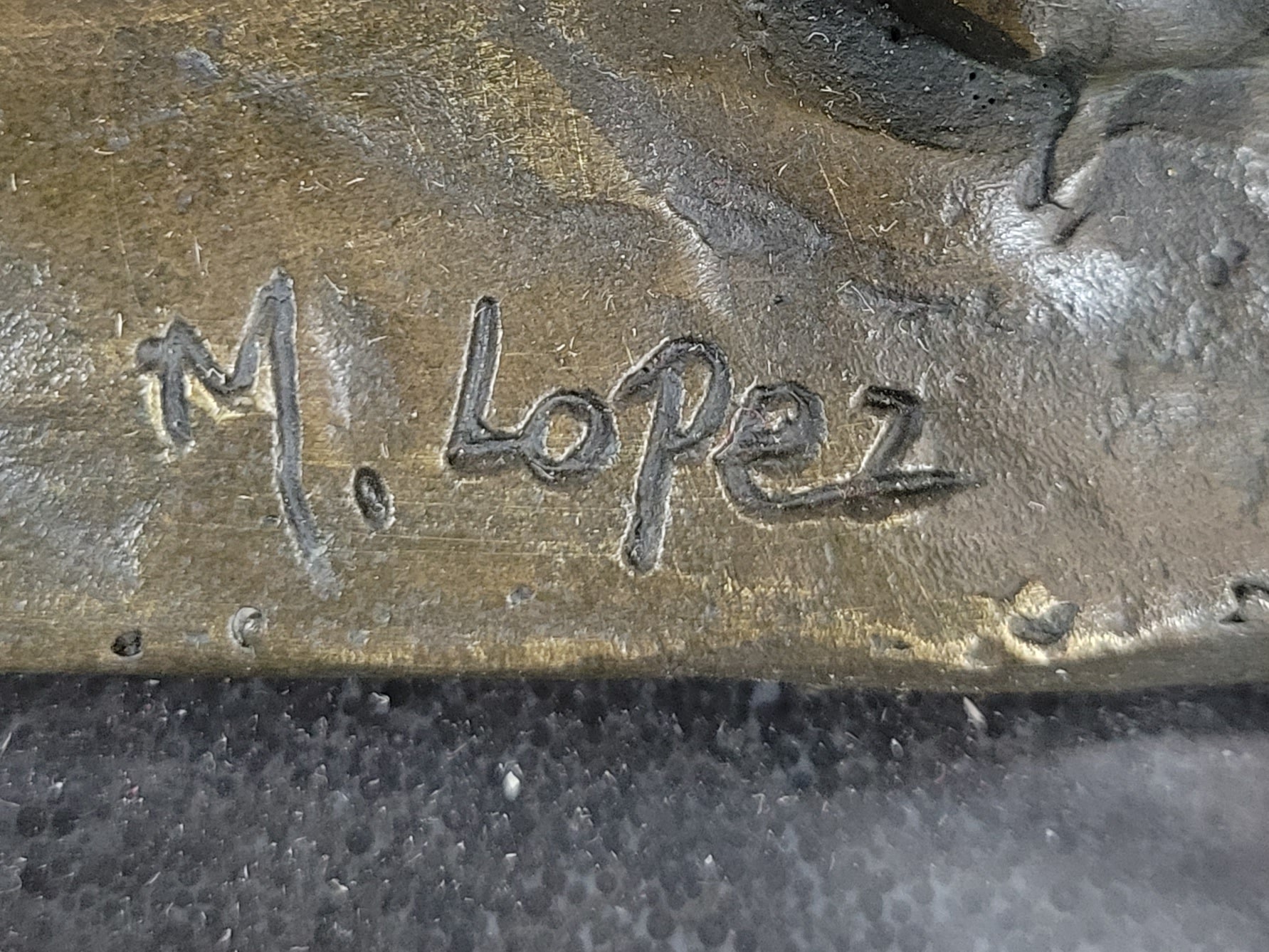 Immerse yourself in the world of Miguel Lopez's original artwork and experience the beauty and emotion that his creations evoke. From striking portraits to captivating still lifes, his art has the power to transform any space and leave a lasting impression. Explore his portfolio and discover a masterpiece that speaks to your soul.Bronze Dimensions with Marble Base: Height 9" X Width 14"