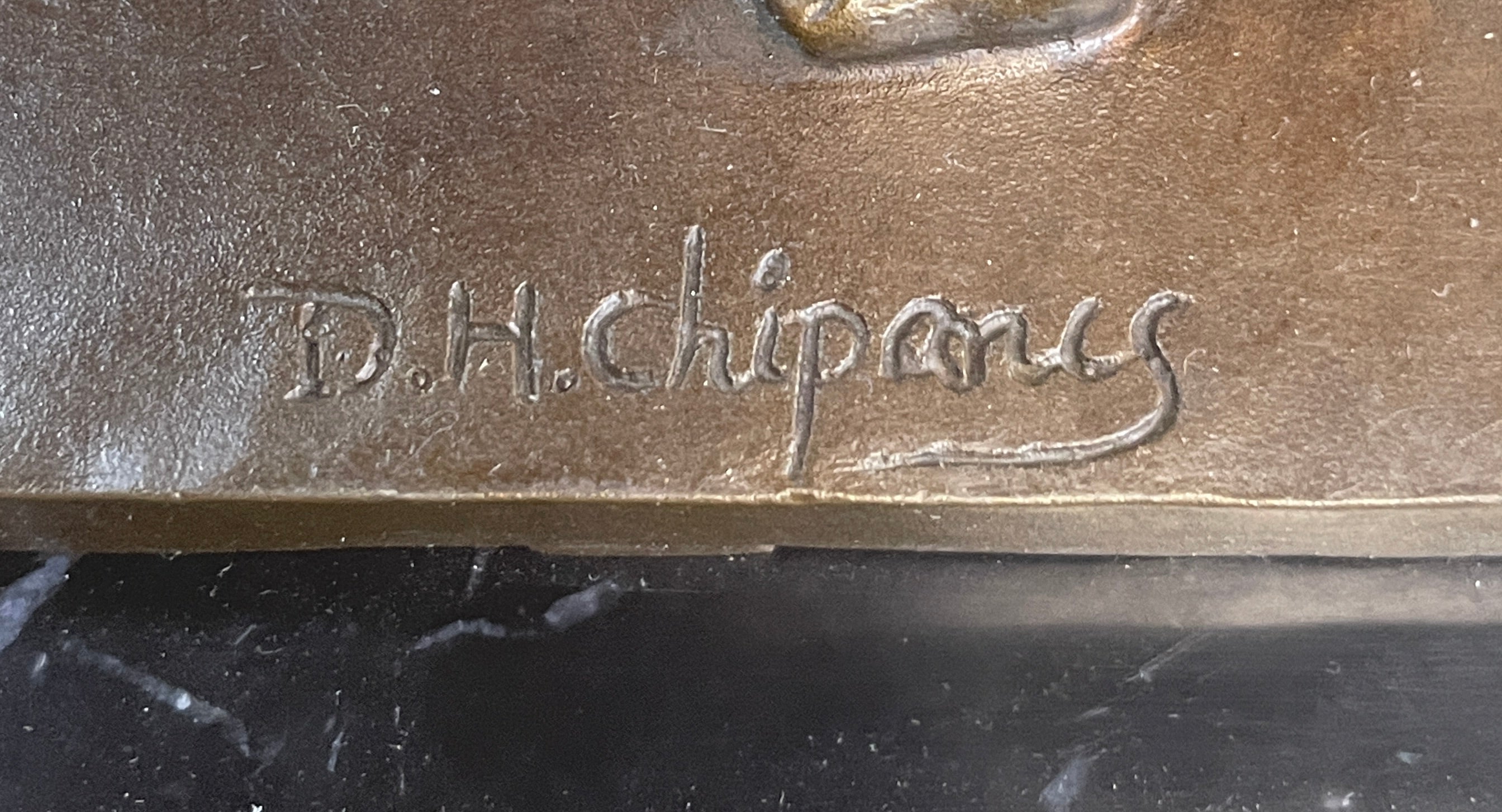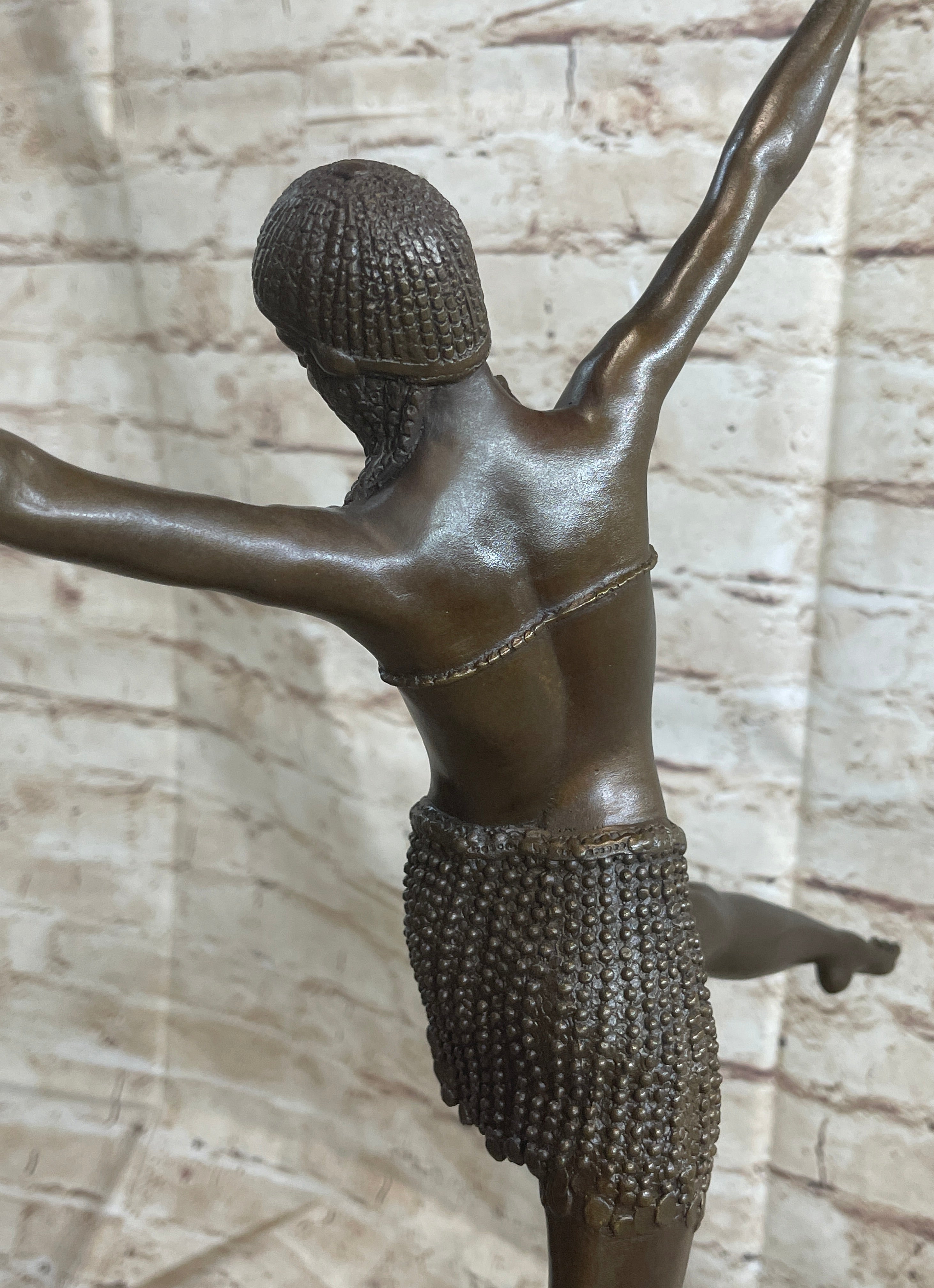 This exquisite piece of art pays homage to the legacy of Chiparus's craftsmanship and his ability to bring to life the spirit of dance through the enduring medium of bronze. It is destined to be a cherished addition to any art collection, resonating with enthusiasts of both Art Deco and the timeless beauty of dance.Bronze Dimensions with Marble Base: Height 24" X Width 17"