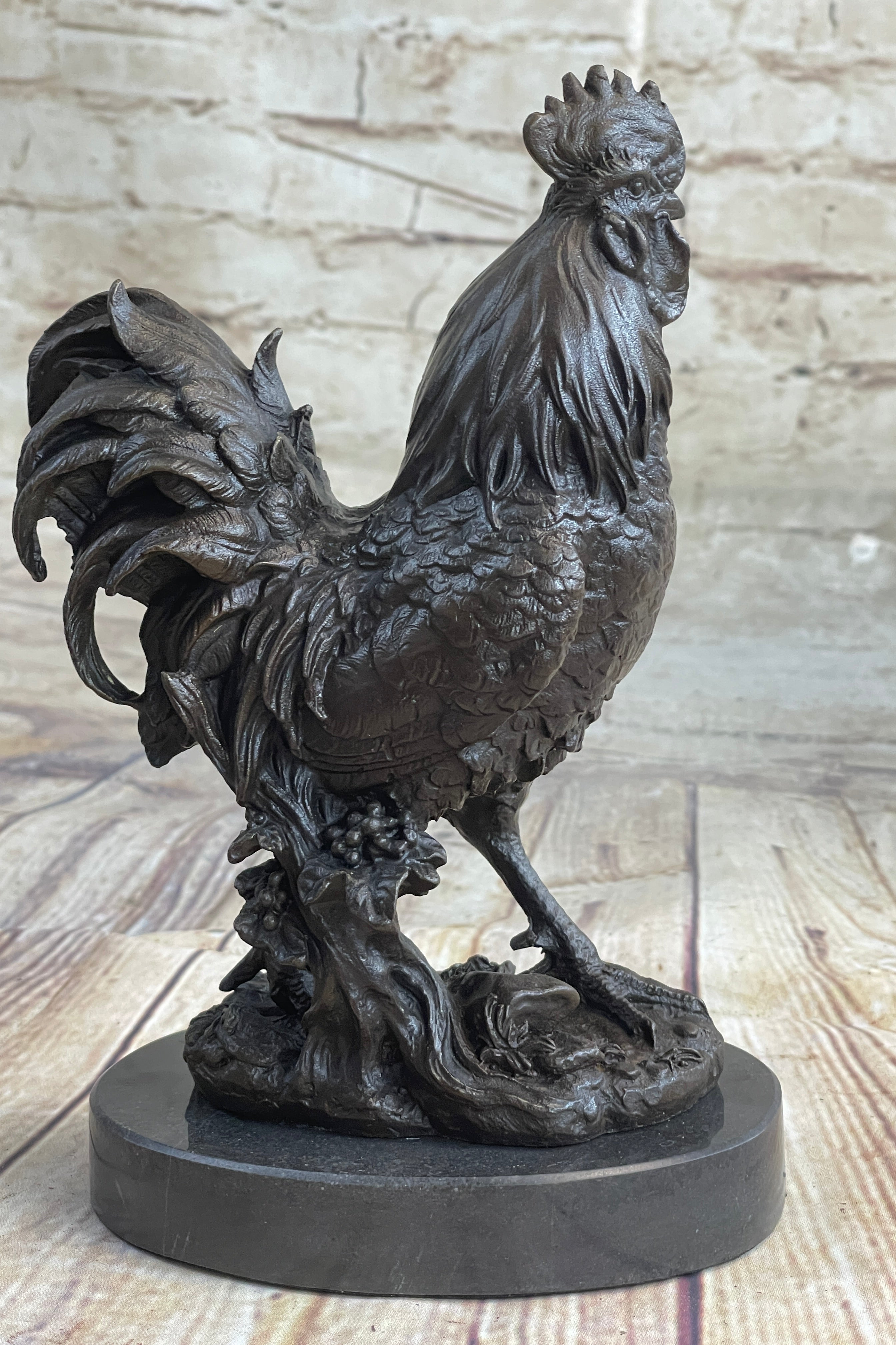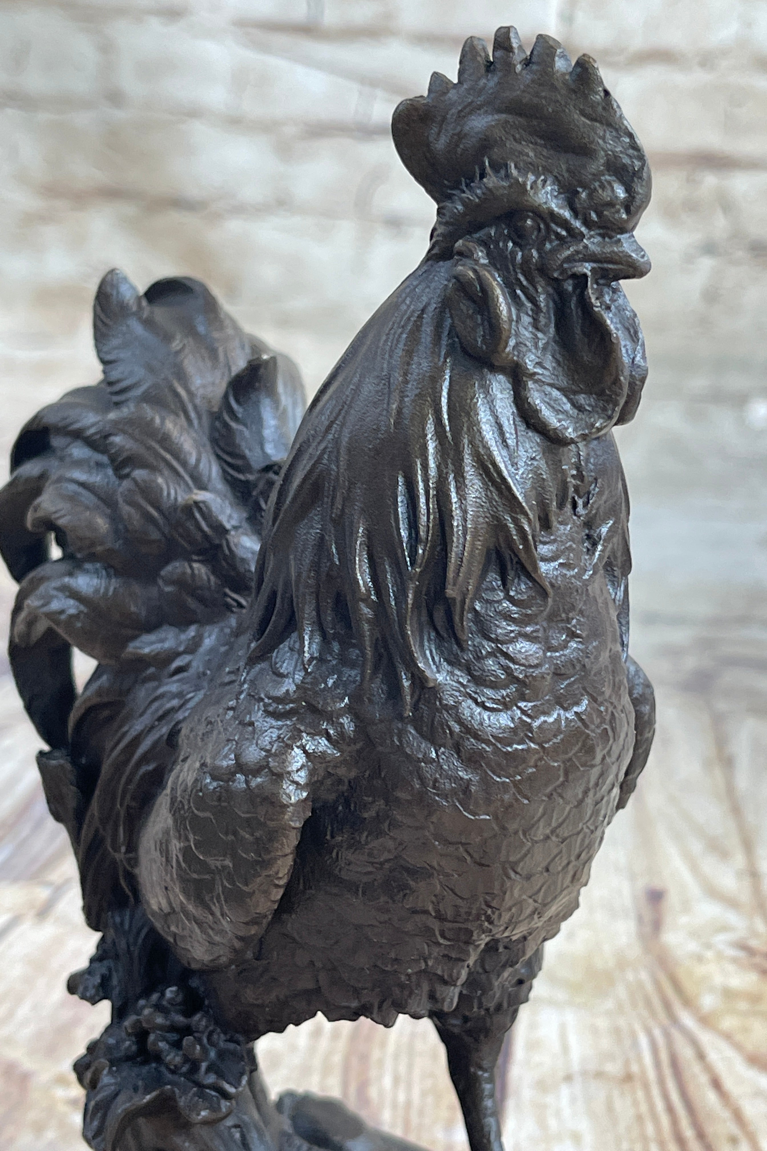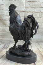 Signed Exquisite Rooster Farm Marble Bronze Statue Sculpture Figurine Figure Art