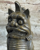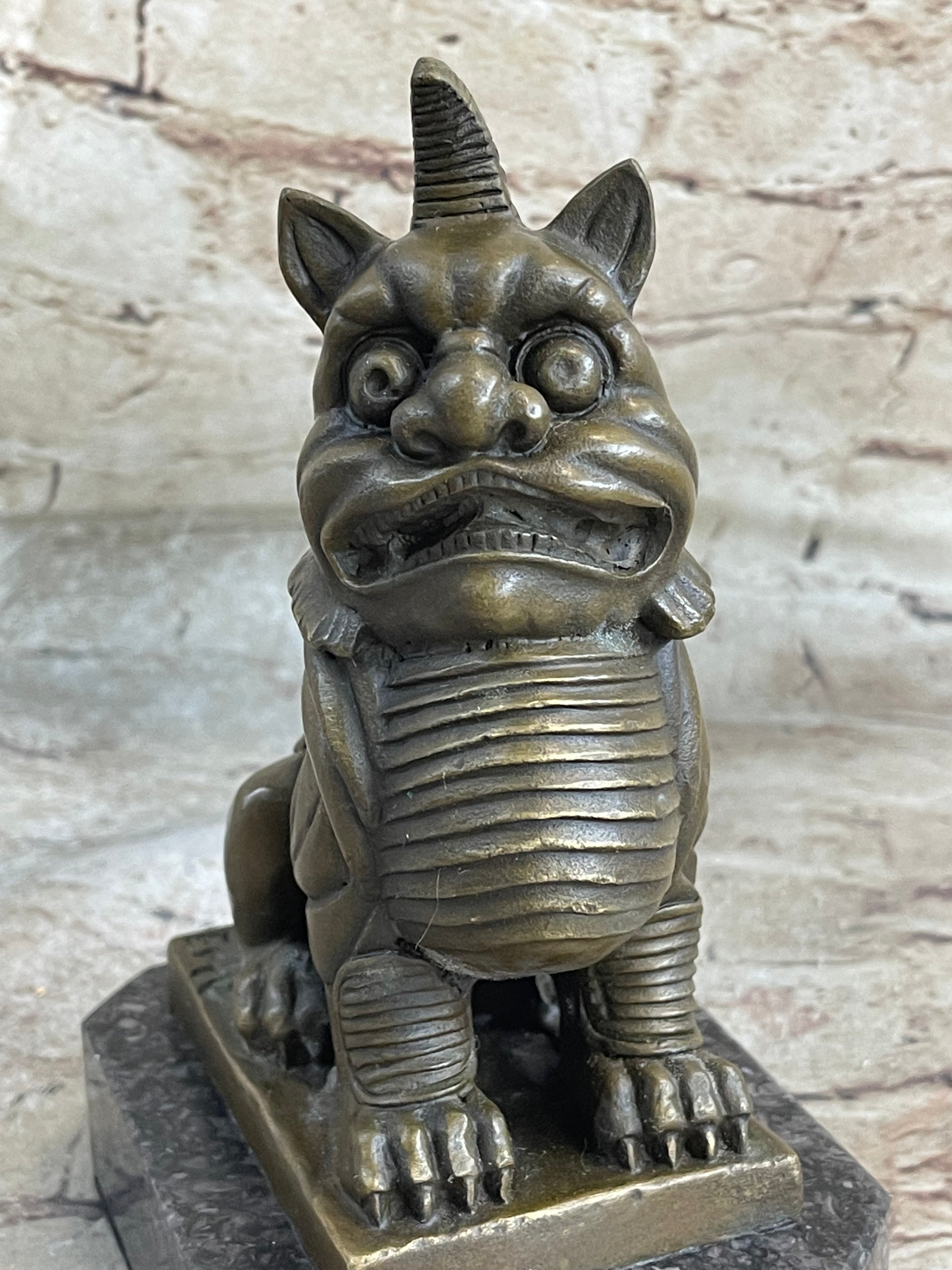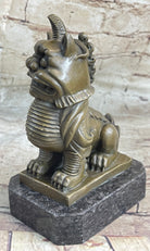 Chinese Foo Dog Guardian Lion Bronze Statue Sculpture Figure Marble Base 7.5" x 5"