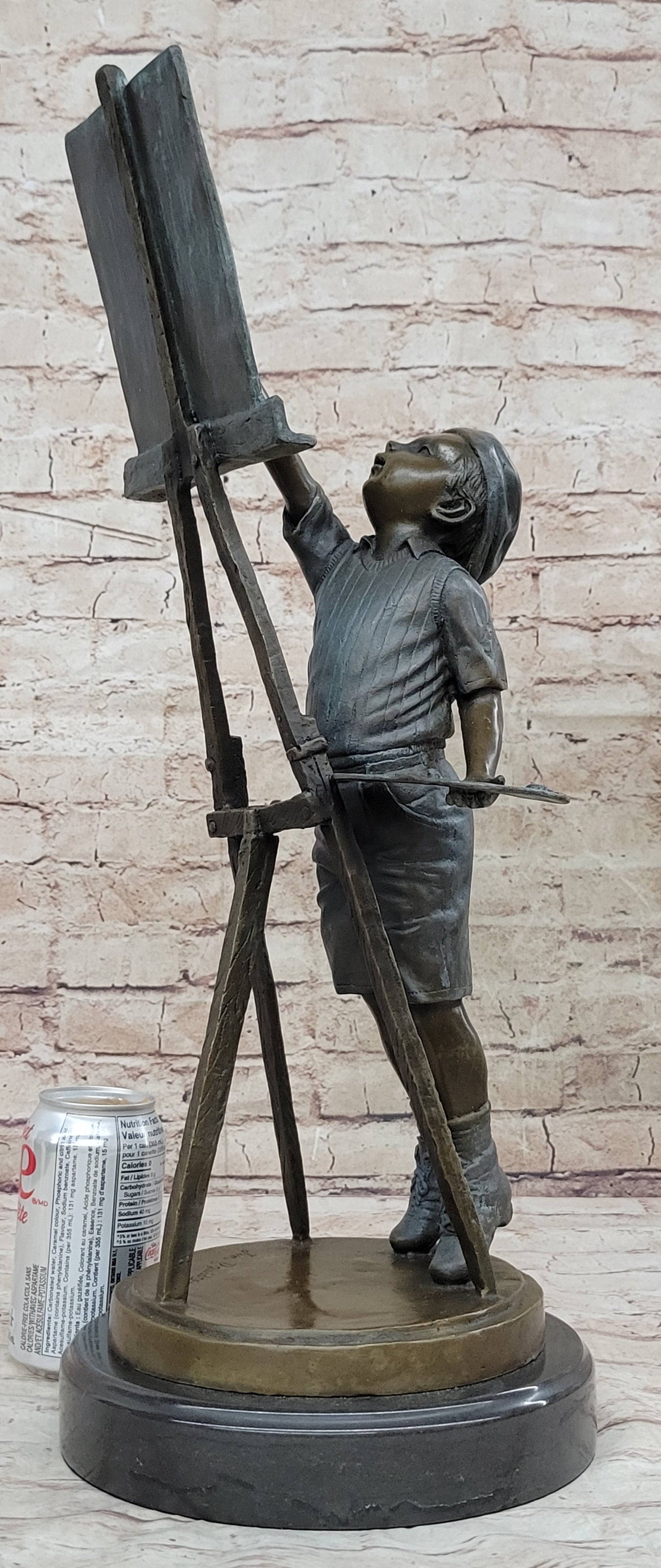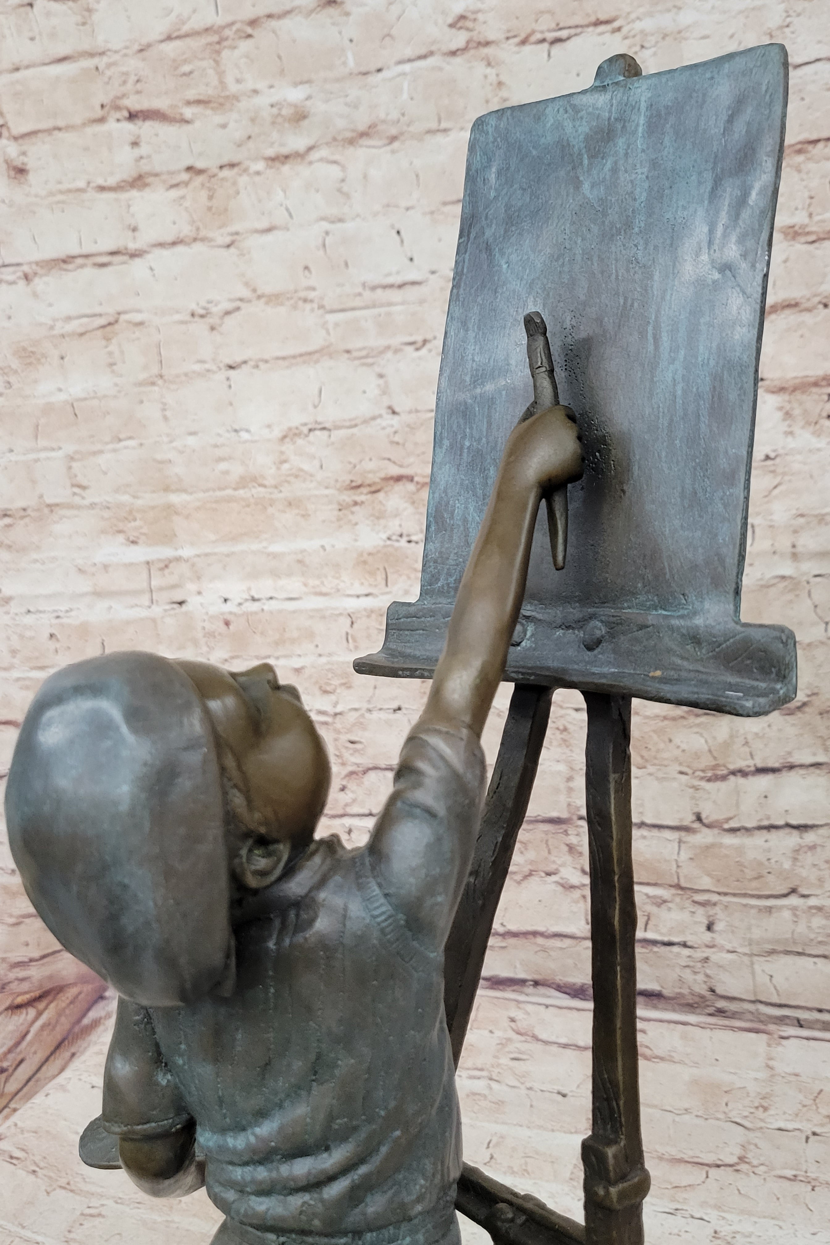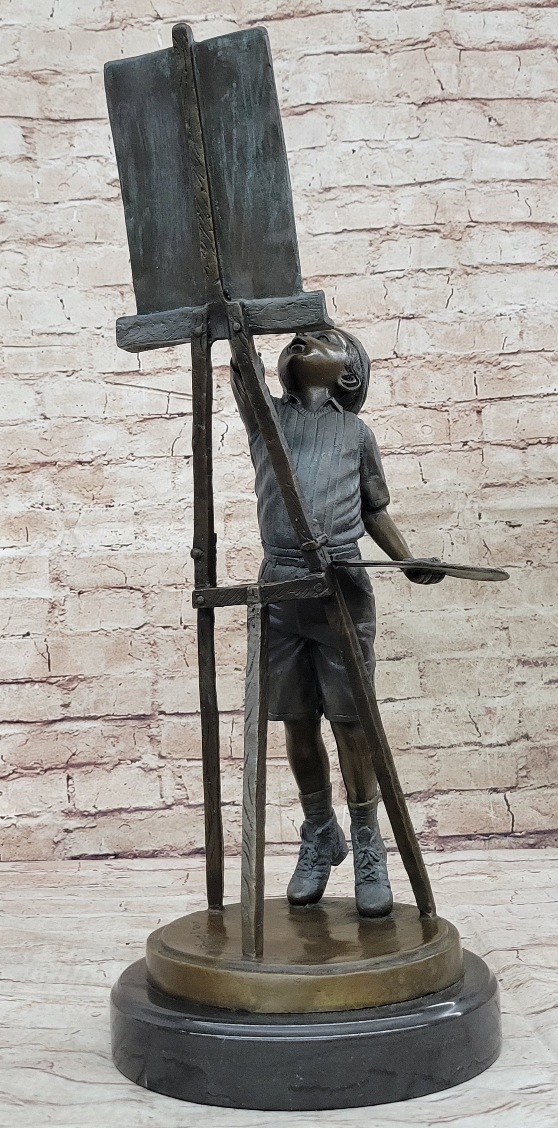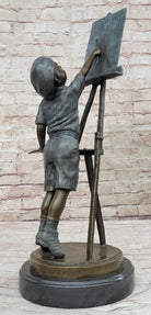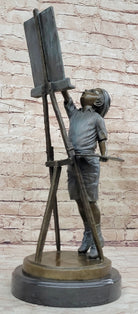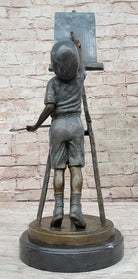 Young Boy Painting on Easel w/ Pallet - Bronze Sculpture Statue Art Teacher Gift Decor