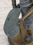 Handcrafted using the traditional lost wax method, this large bronze figurine exudes a sense of realism and emotion. The artist's attention to detail is evident in every brushstroke, making it a true masterpiece. The sculpture is elevated on a sleek round black marble base, which not only complements its aesthetic but also provides stability and elegance to the overall presentation.
