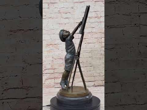 The combination of the rich brown and striking blue patina enhances the visual appeal of the sculpture, adding depth and dimension to the artwork. This magnificent piece would make a stunning addition to any art collection or home decor, evoking a sense of creativity and inspiration to all who gaze upon it. Whether displayed in an art gallery or as a centerpiece in a living space, the "Young Boy Painting" bronze sculpture is sure to leave a lasting impression on art enthusiasts and collectors alike.Bronze Dimensions with Marble Base: Height 21.5" X Width 8.5"