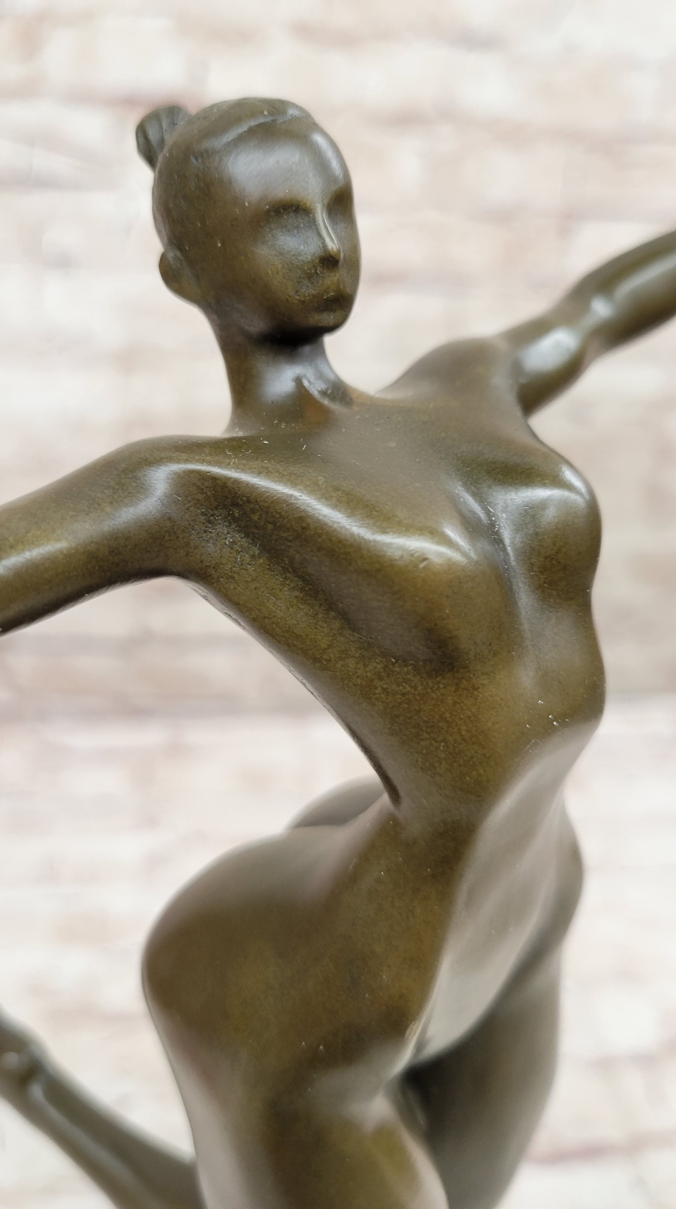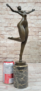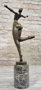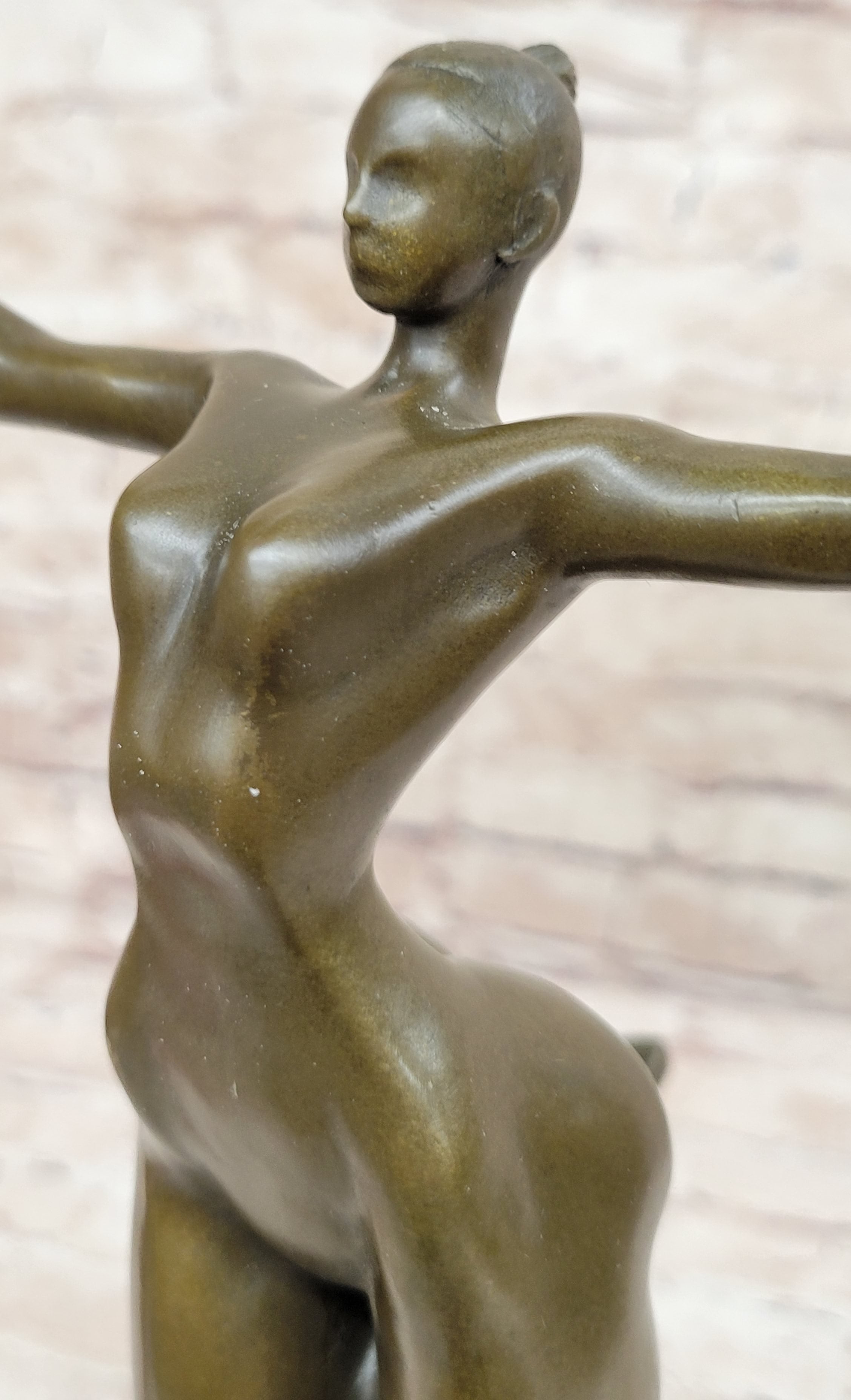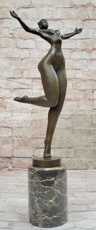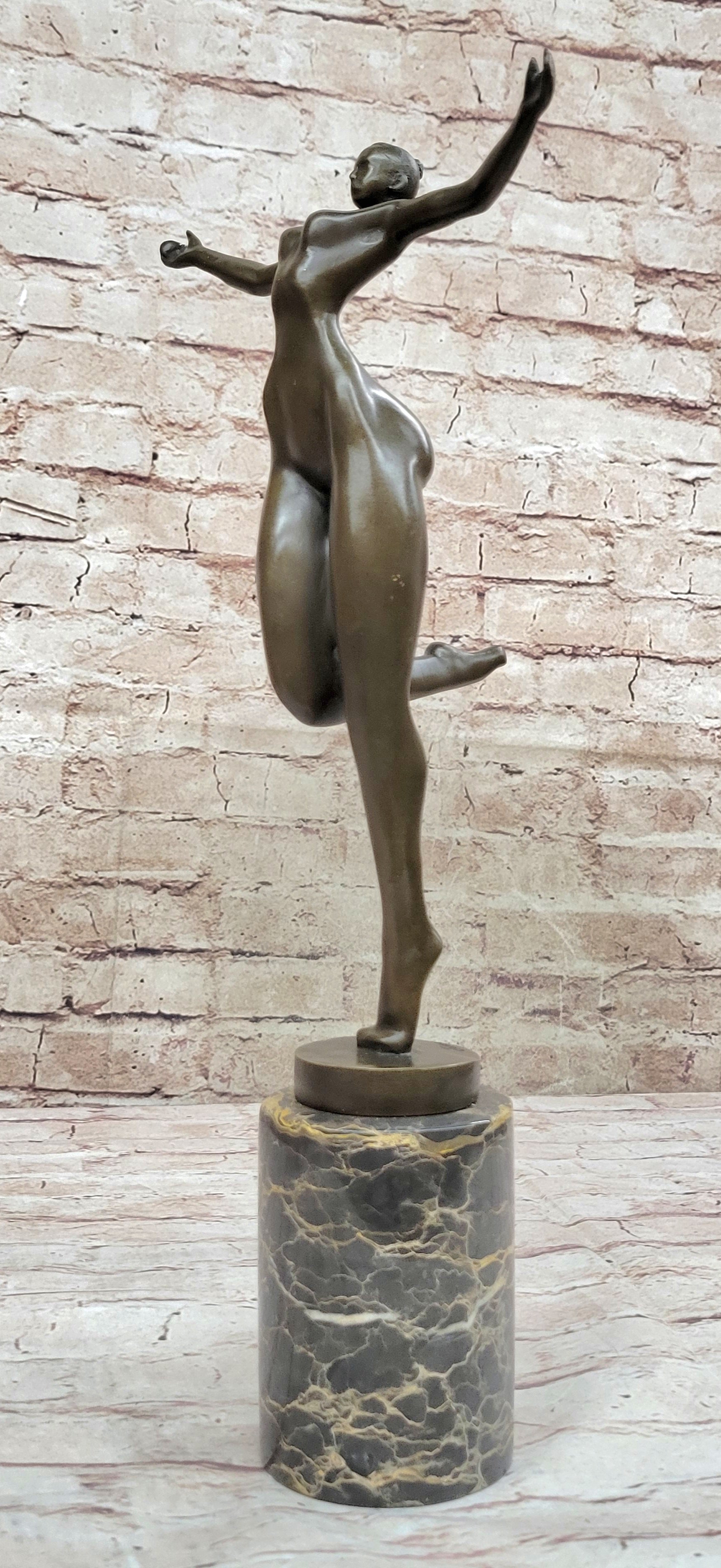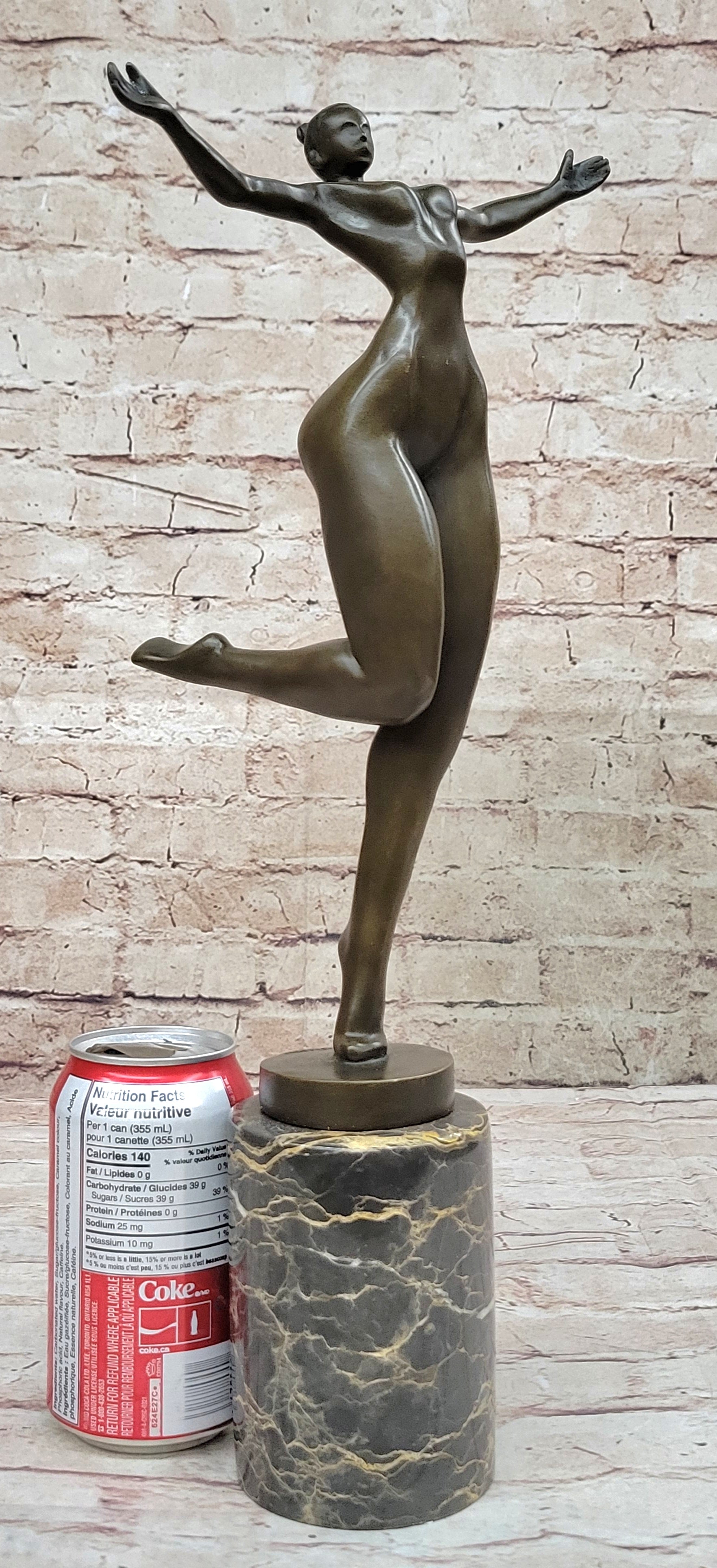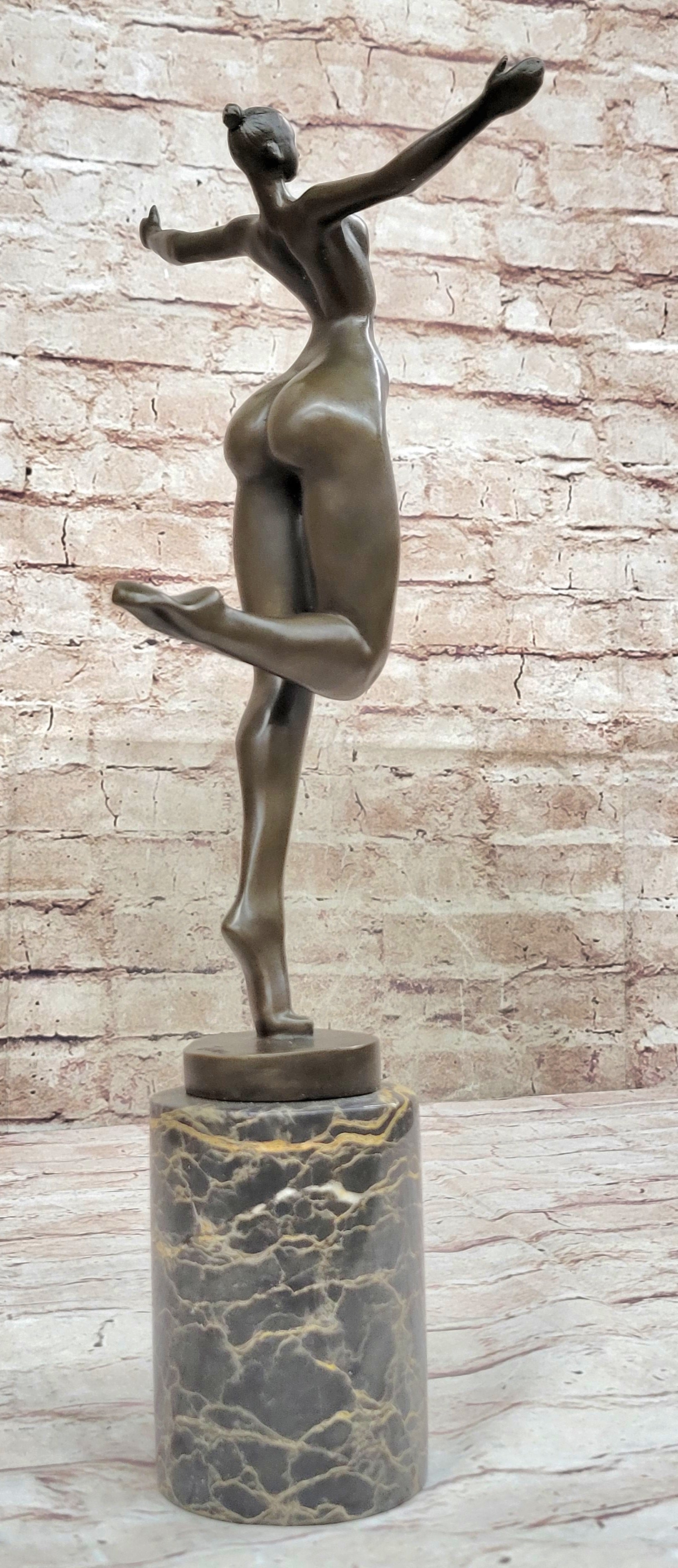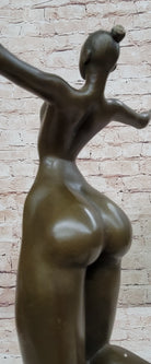 Bronze Sculpture of Proportionally Exaggerated Female Form Nude Fertility Sculpture Dancer Girl on Marble Base