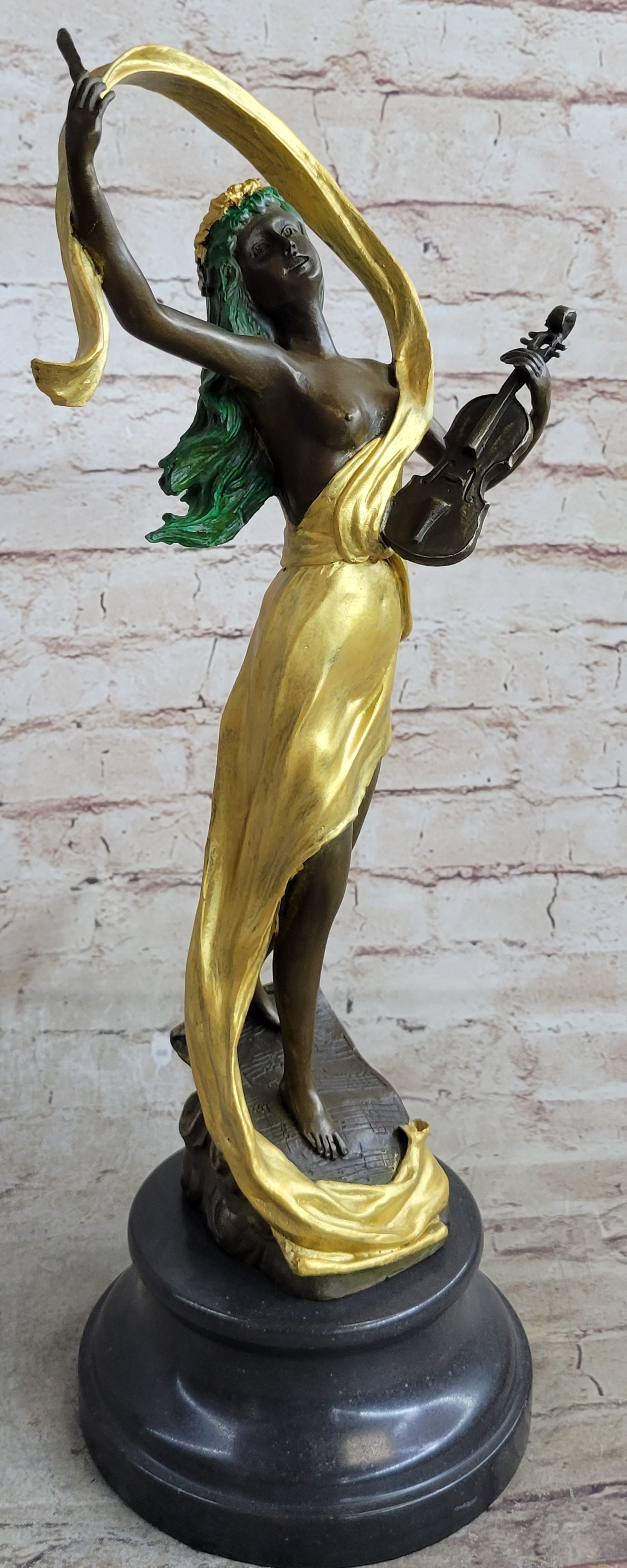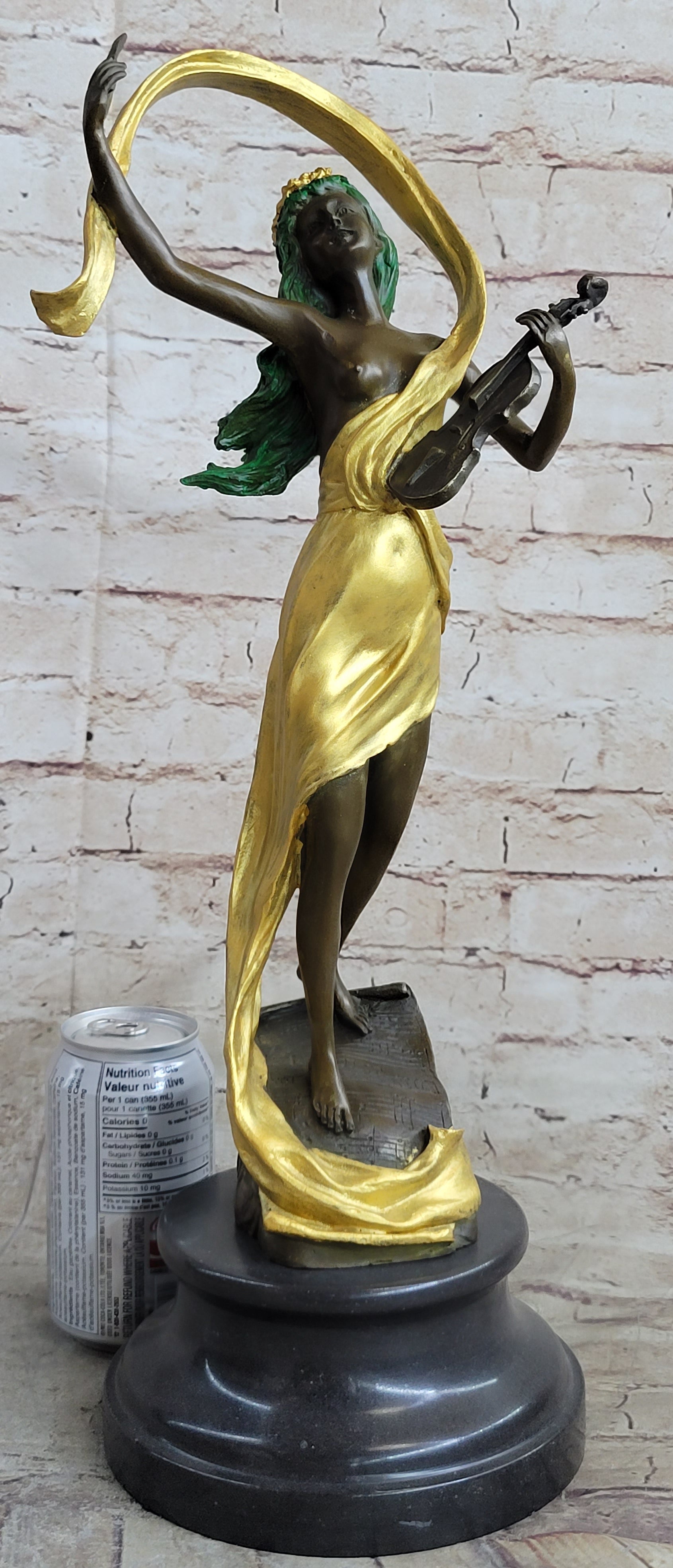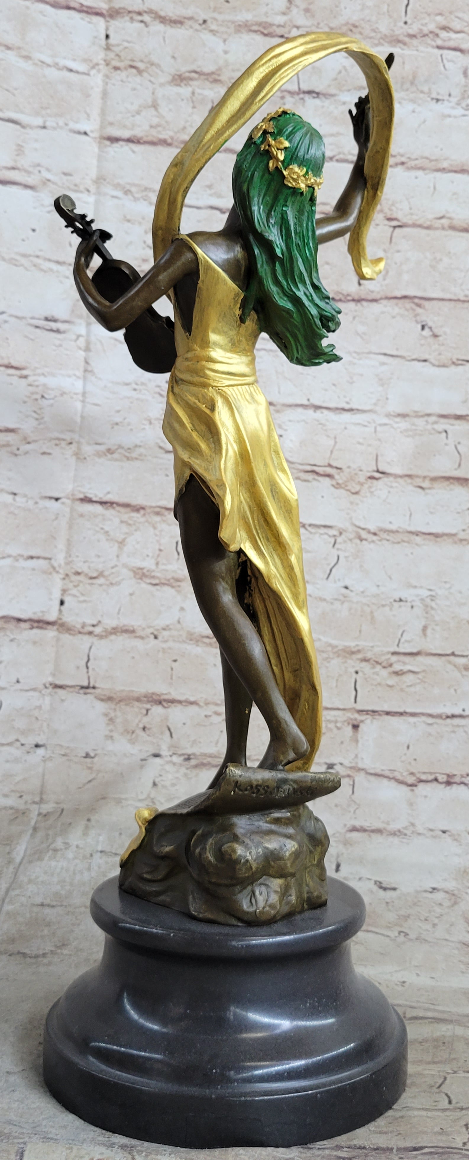 Signed Kossowski Female Gorgeous Violin Player Genuine Bronze Sculpture Statue