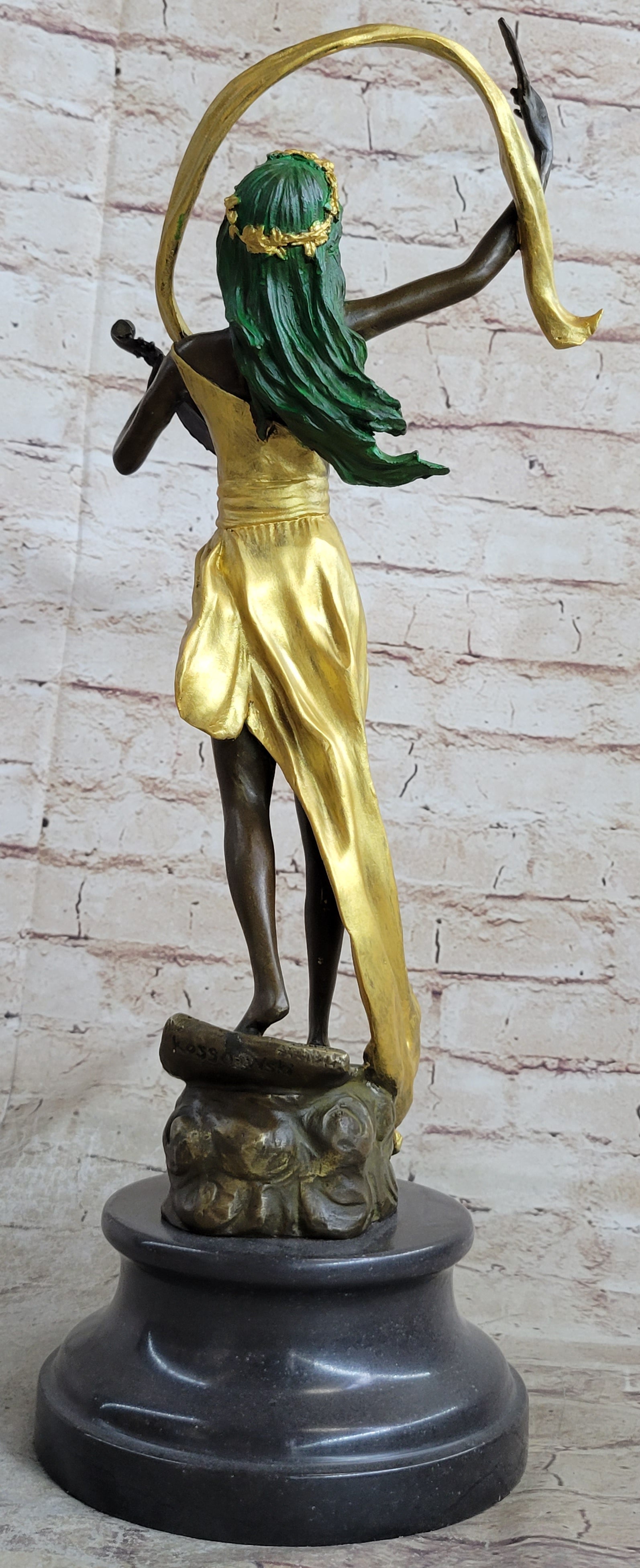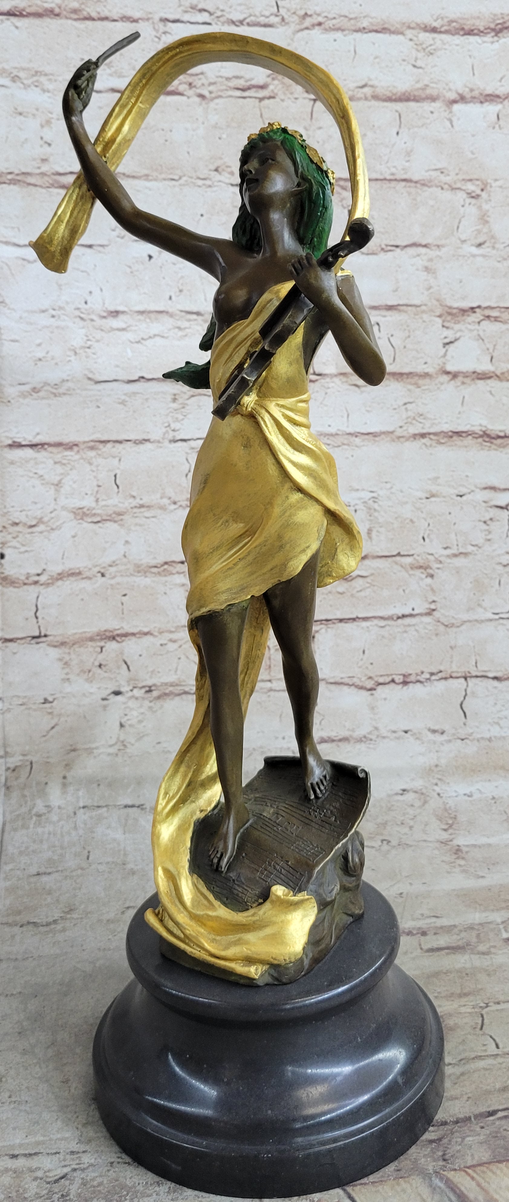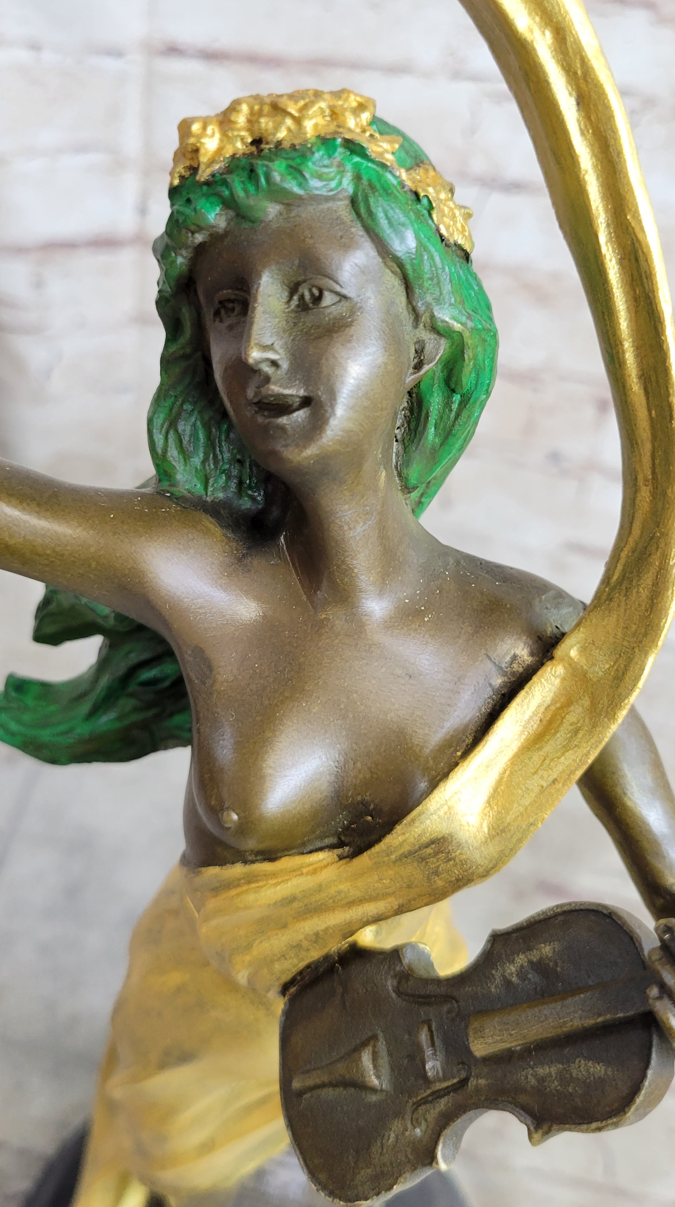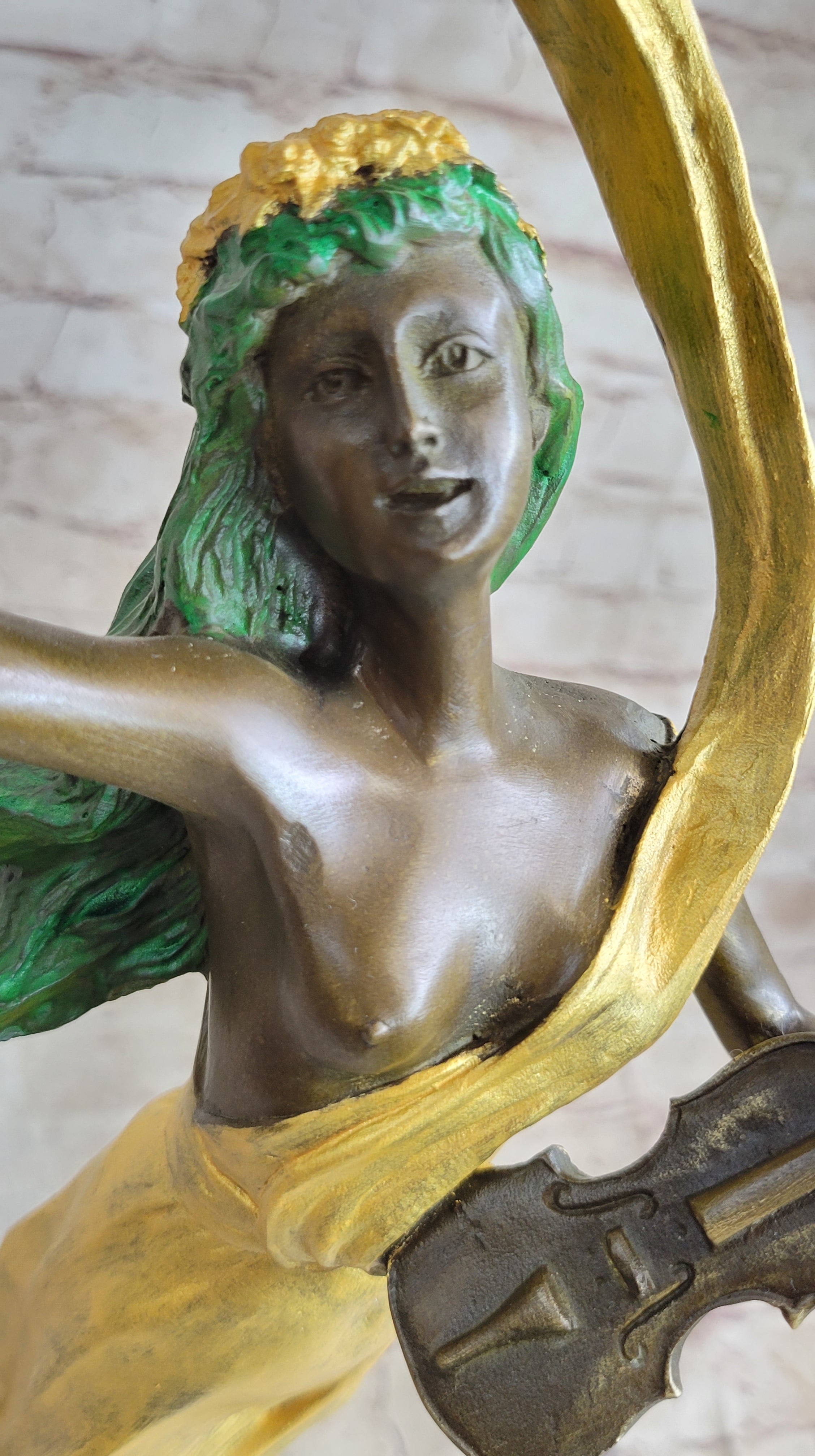 Signed Kossowski Female Gorgeous Violin Player Genuine Bronze Sculpture Statue