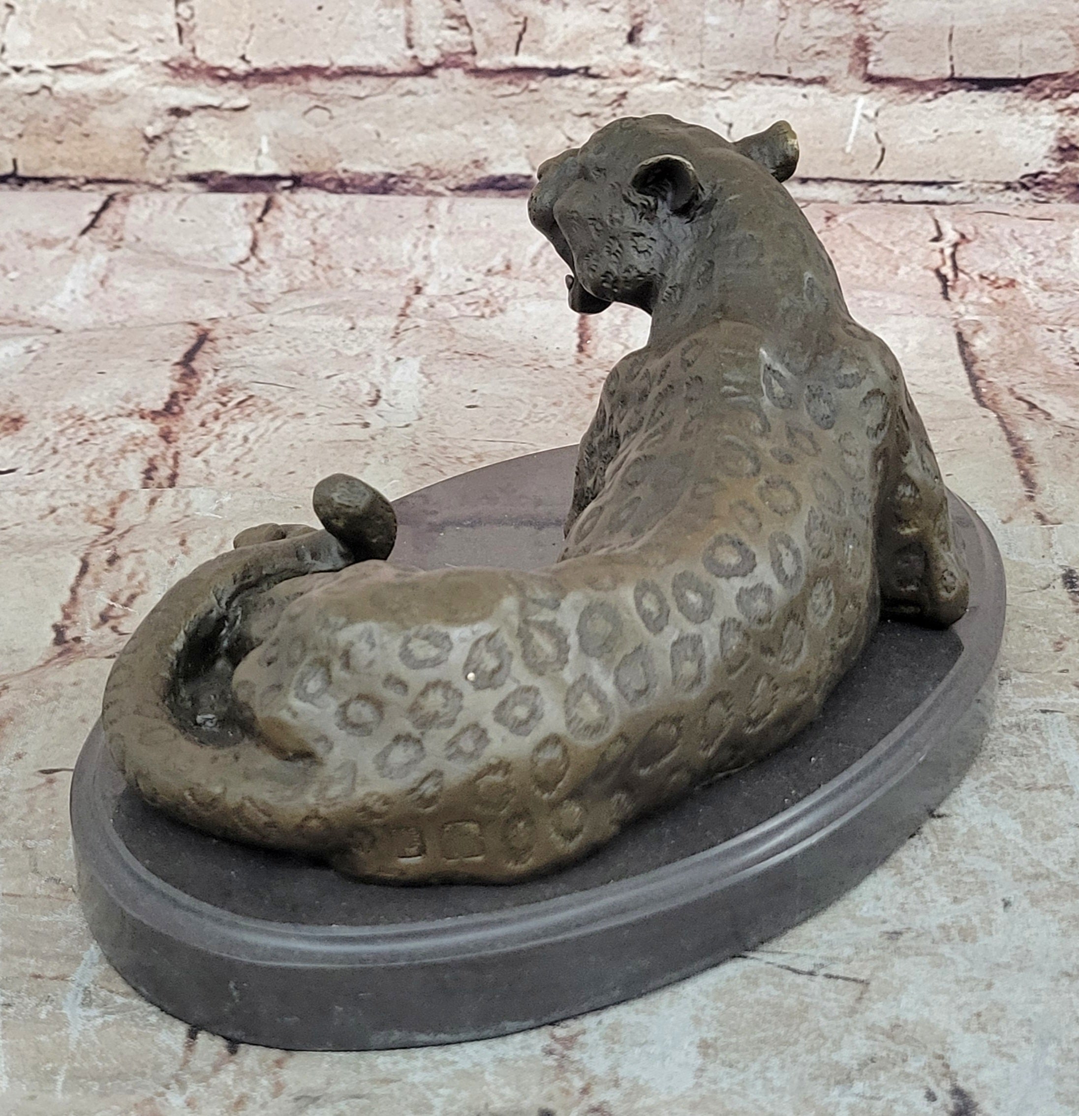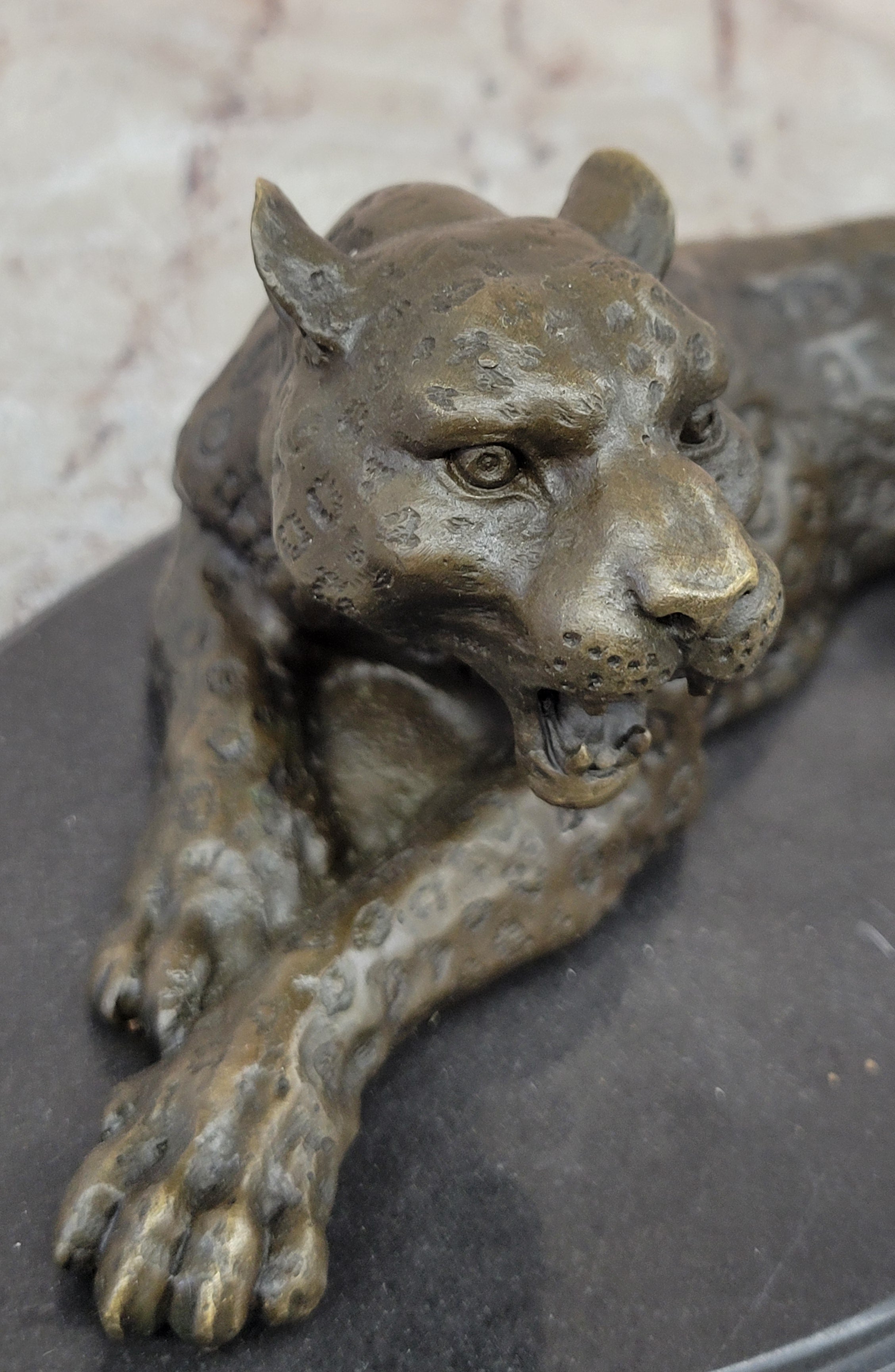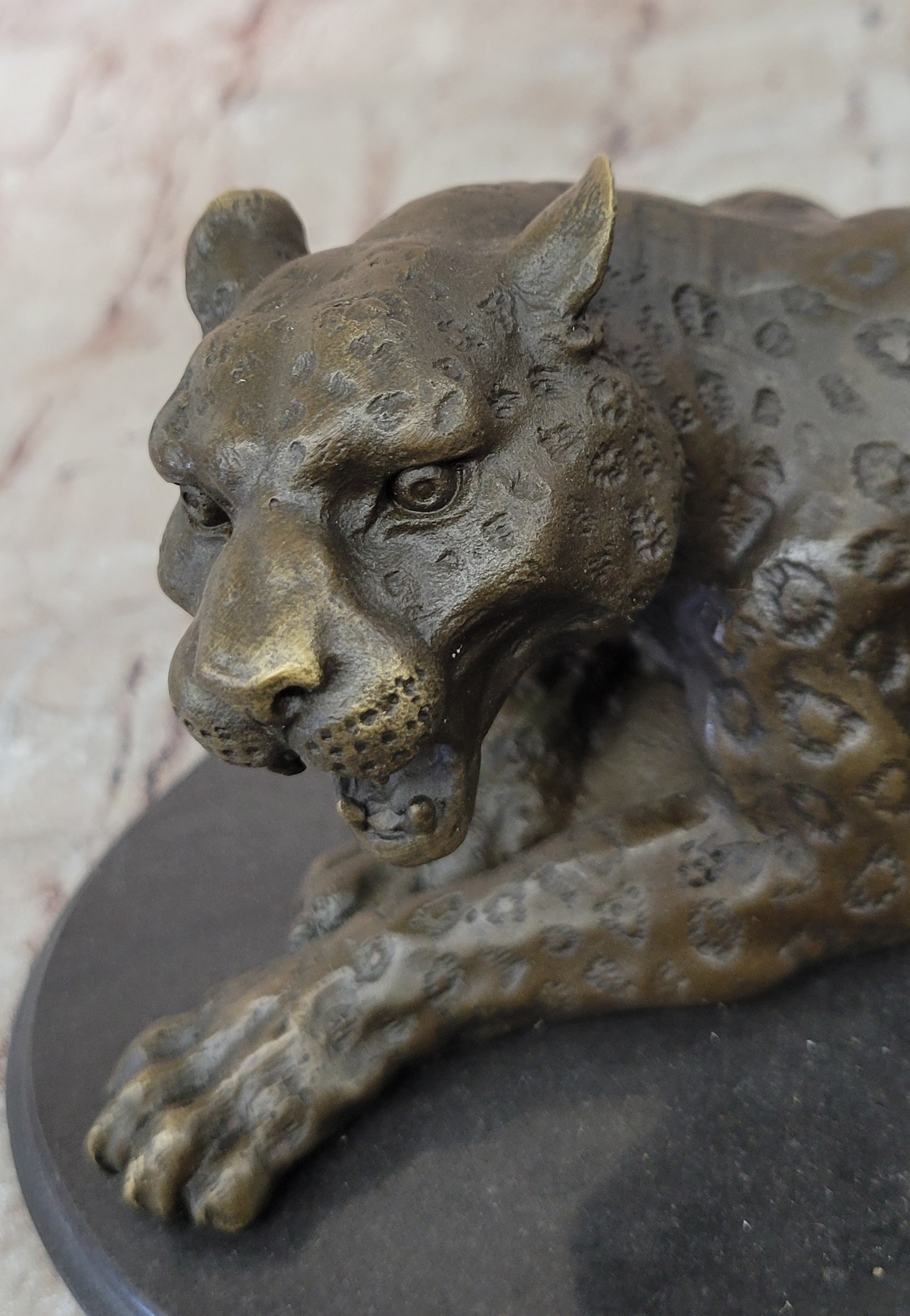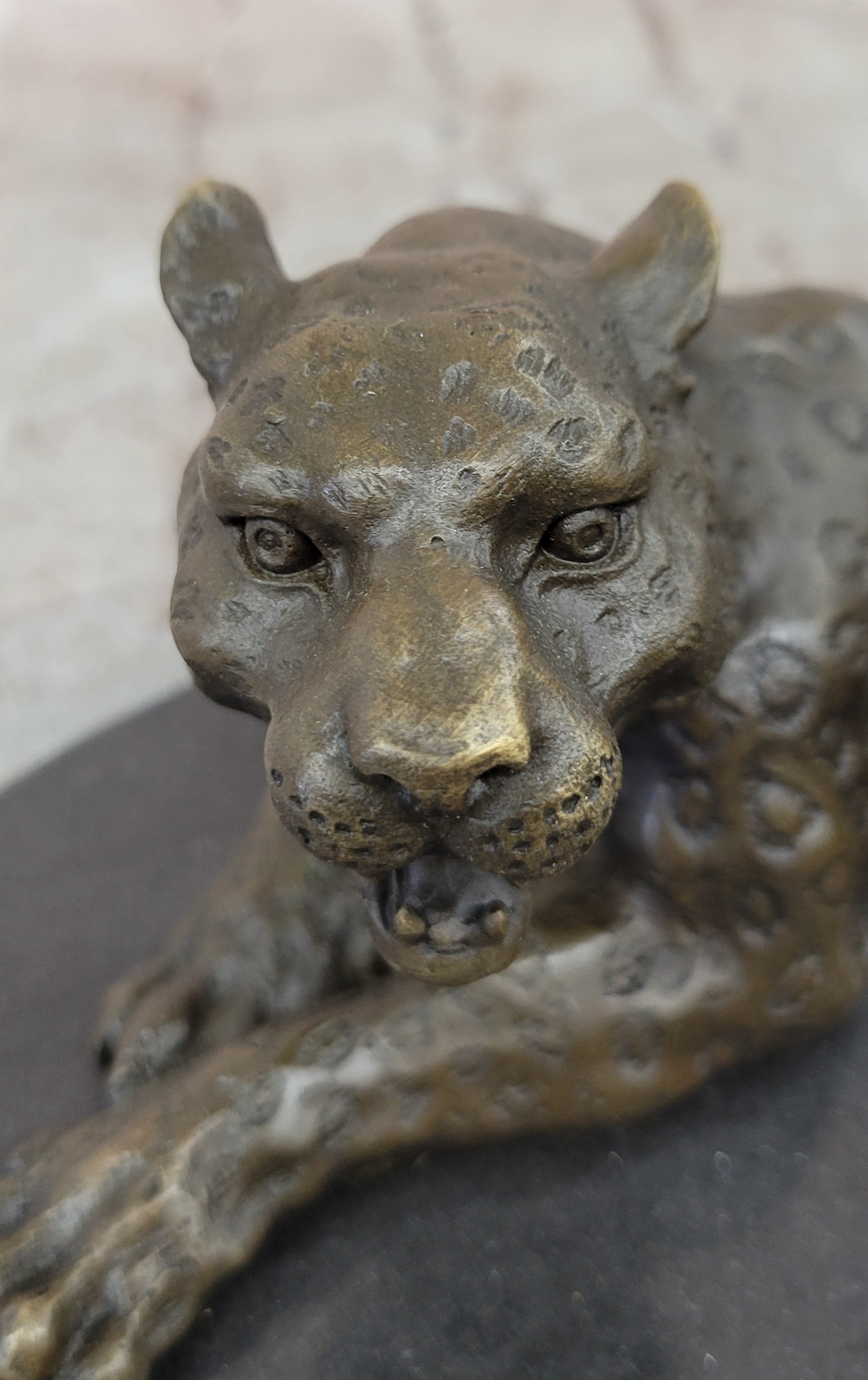 Signed Milo Jaguar Cheetah Wildlife Animal Marble Base Hand Made Bronze Statue