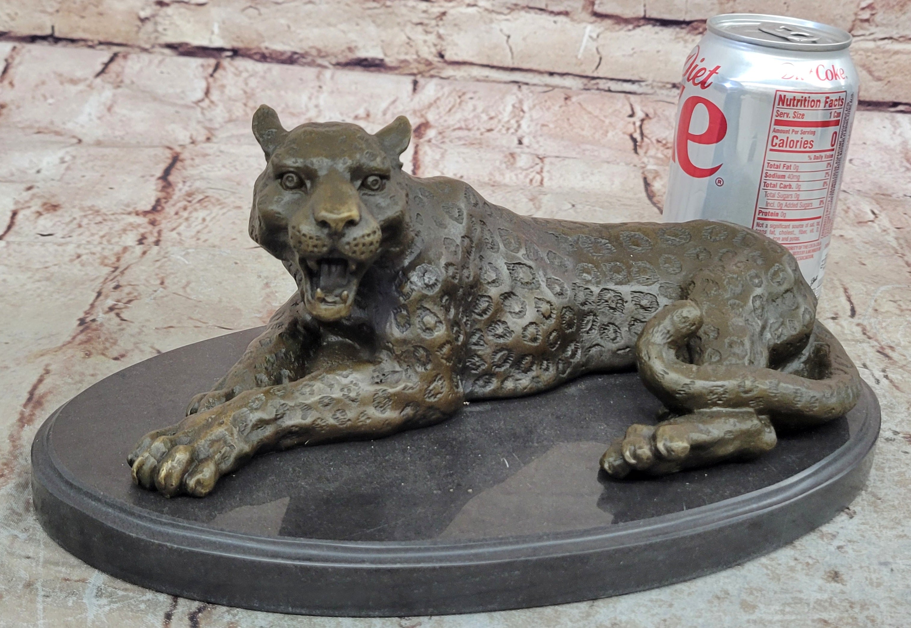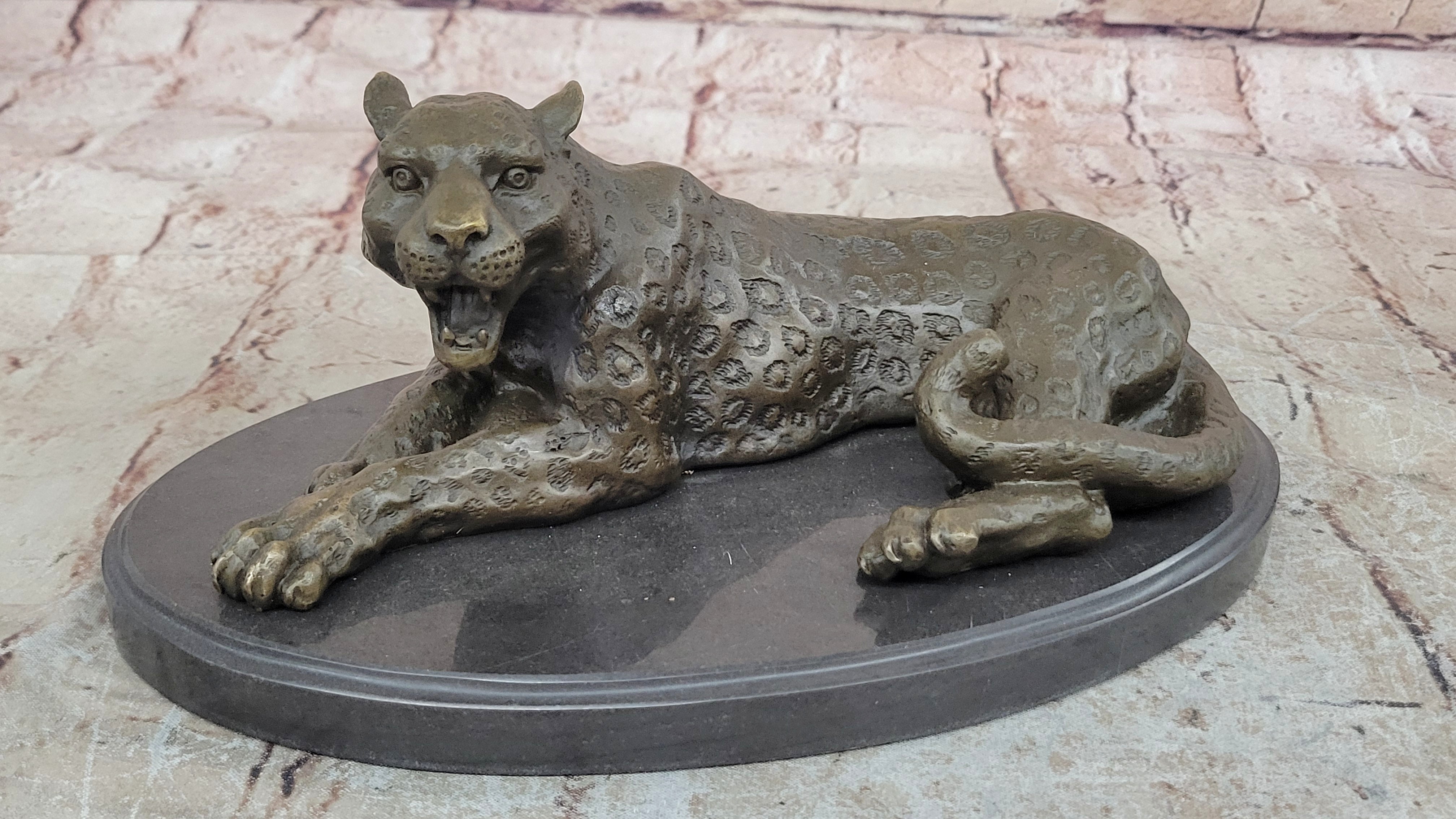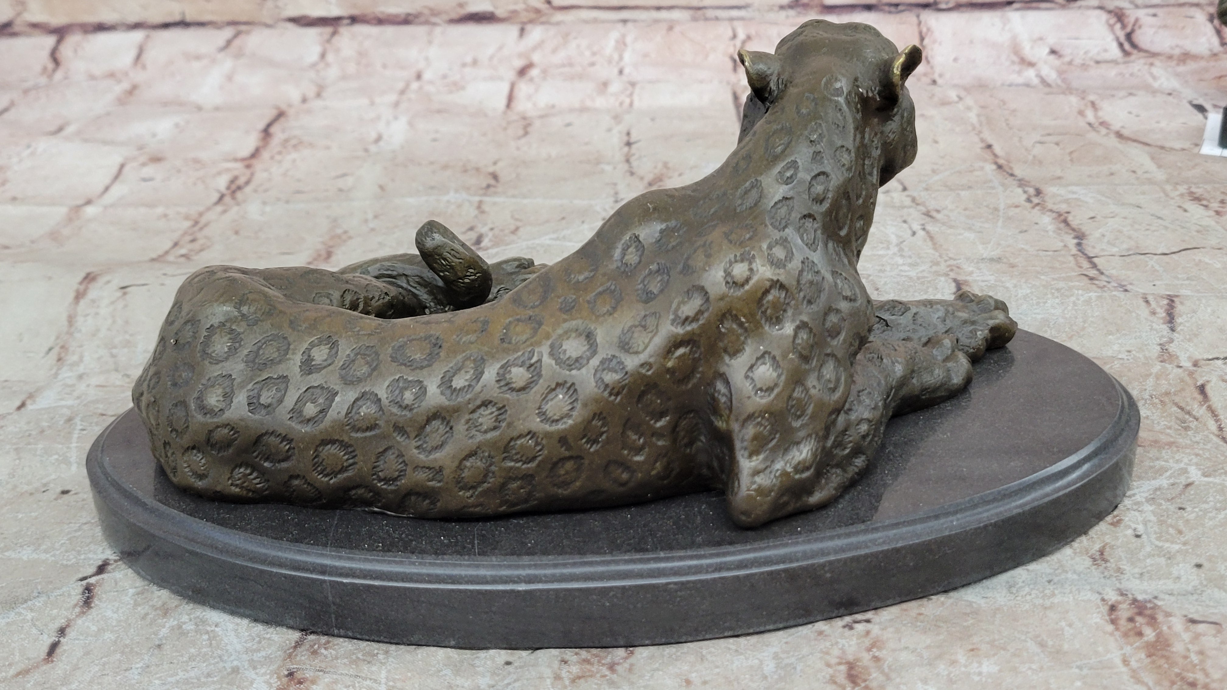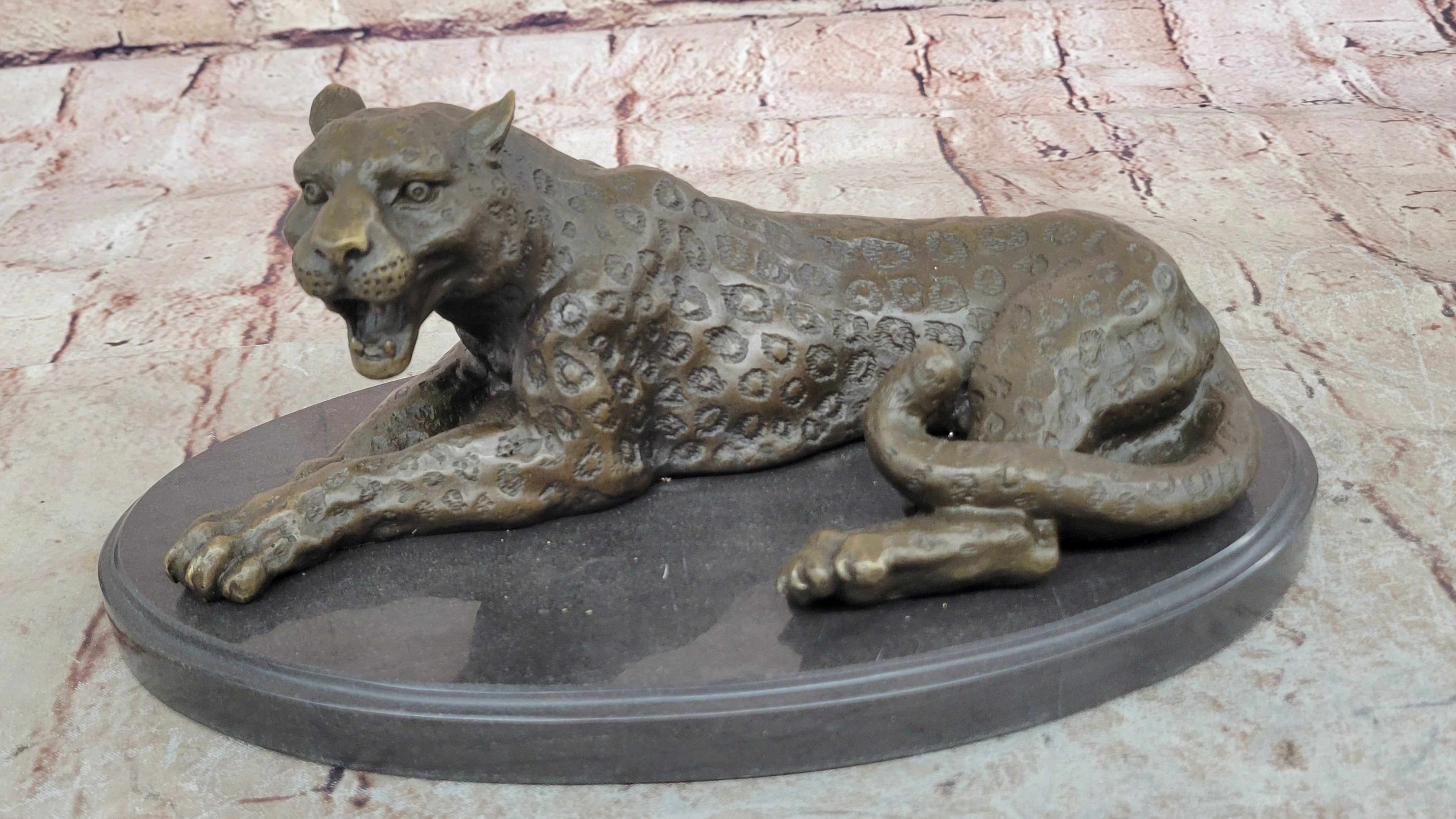 Signed Milo Jaguar Cheetah Wildlife Animal Marble Base Hand Made Bronze Statue