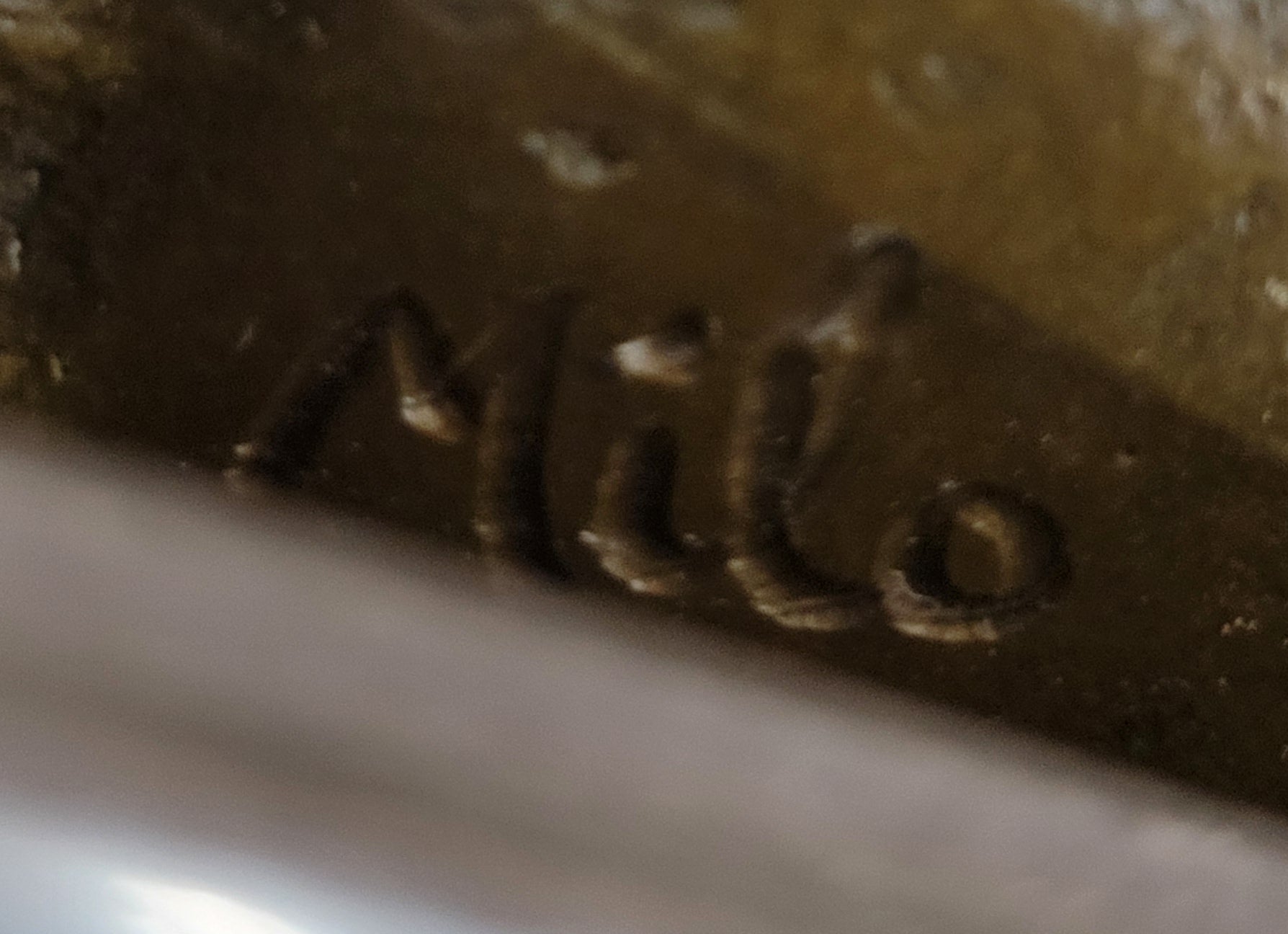 As a true collector's item, the "Signed Milo Jaguar" bronze statue invites enthusiasts to connect with the awe-inspiring beauty of the animal kingdom. Whether displayed in a home or office, this sculpture is a powerful representation of the wild, encapsulating the spirit of the jaguar in a timeless and enduring form. It is more than just a statue; it is an homage to the untamed vitality and majesty of one of nature's most magnificent creatures.Bronze Dimensions with Marble Base: Height 5" X Width 9"