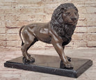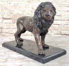 This remarkable bronze sculpture pays homage to the majestic presence and indomitable spirit of the lion, making it a captivating addition to any art collection or space. Its formidable gaze, detailed craftsmanship, and powerful stance serve as a striking testament to the lion's commanding aura, leaving a lasting impression on all who have the opportunity to behold this remarkable work of art.Bronze Dimensions with Marble Base: Height 11" X Width 14"