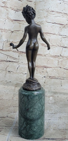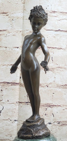 Signed Moreau Bronze Sculpture Statue Young Girl Nude Art Deco Nouveau Figurine