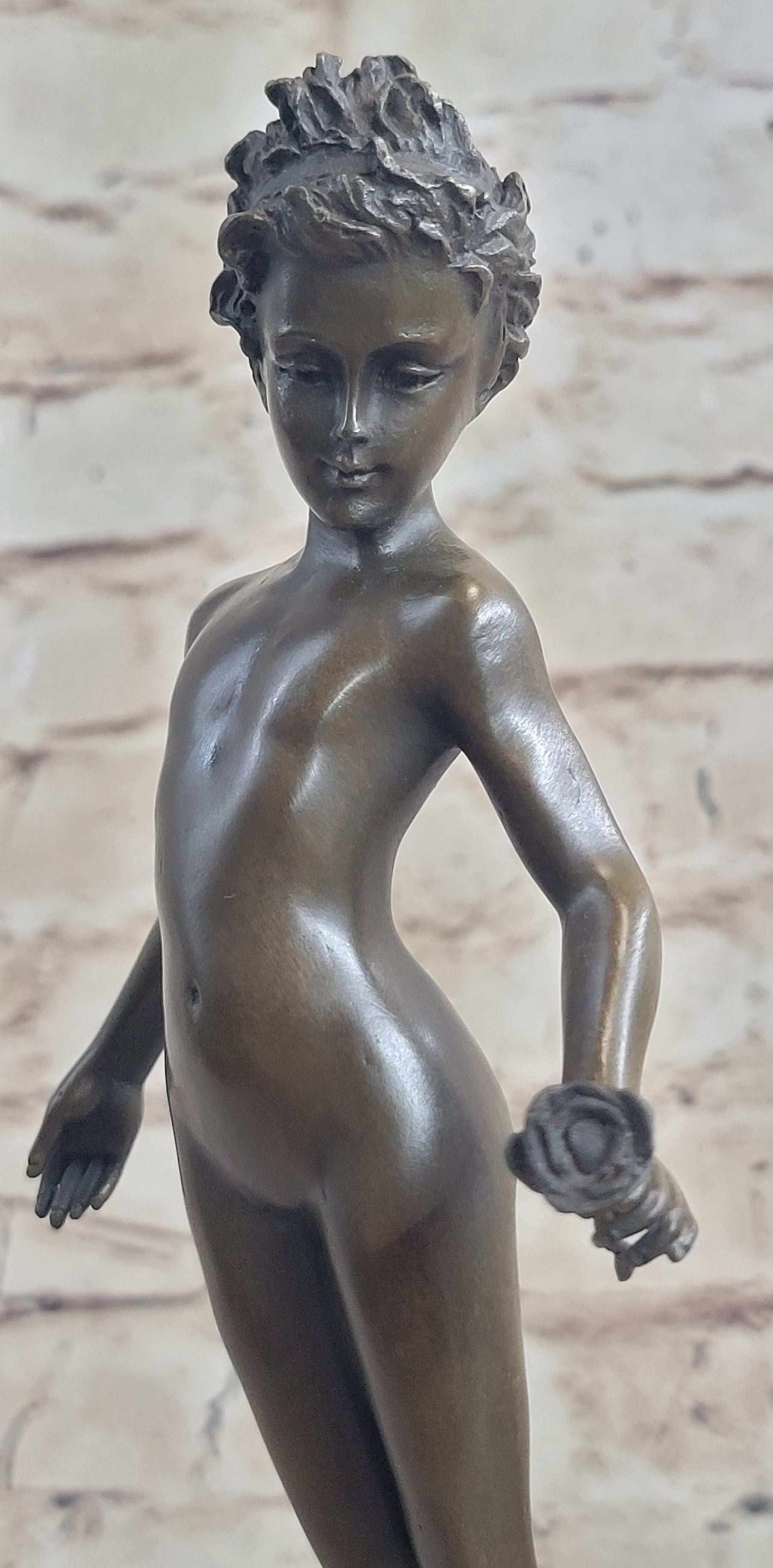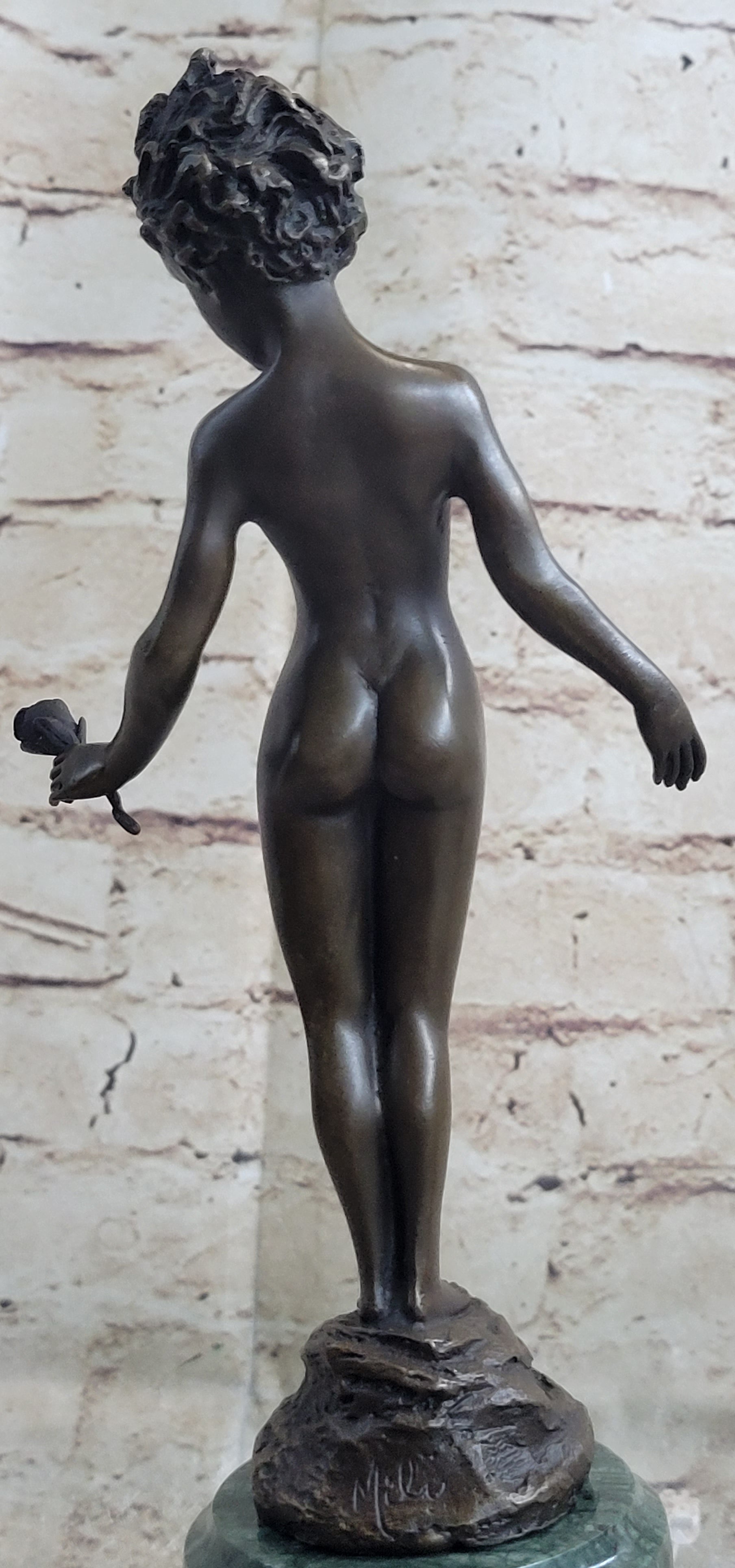This beautiful piece of art is signed by the renowned artist Milo and is sure to be a conversation starter in any setting. Whether displayed in a home, office, or gallery, this sculpture is a true work of art that captures the beauty and confidence of youth.Bronze Dimensions with Marble Base: Height 13" X Width 4"