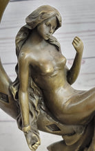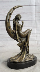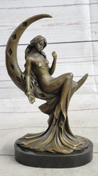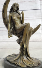 High Life Girl on Moon Bronze Statue Sculpture Figure 9" x 6"