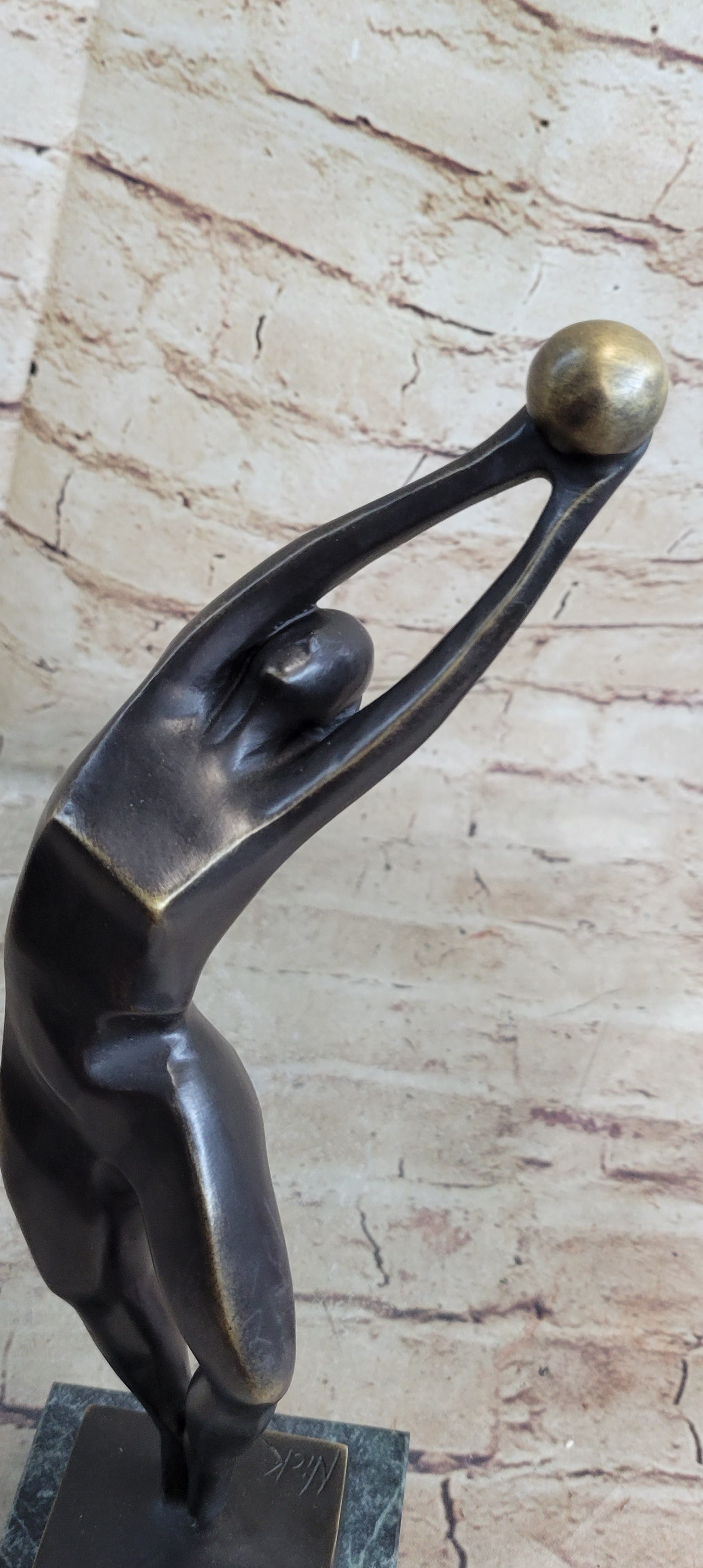 Signed Original Abstract Modern Art Basketball Player Bronze Sculpture Statue
