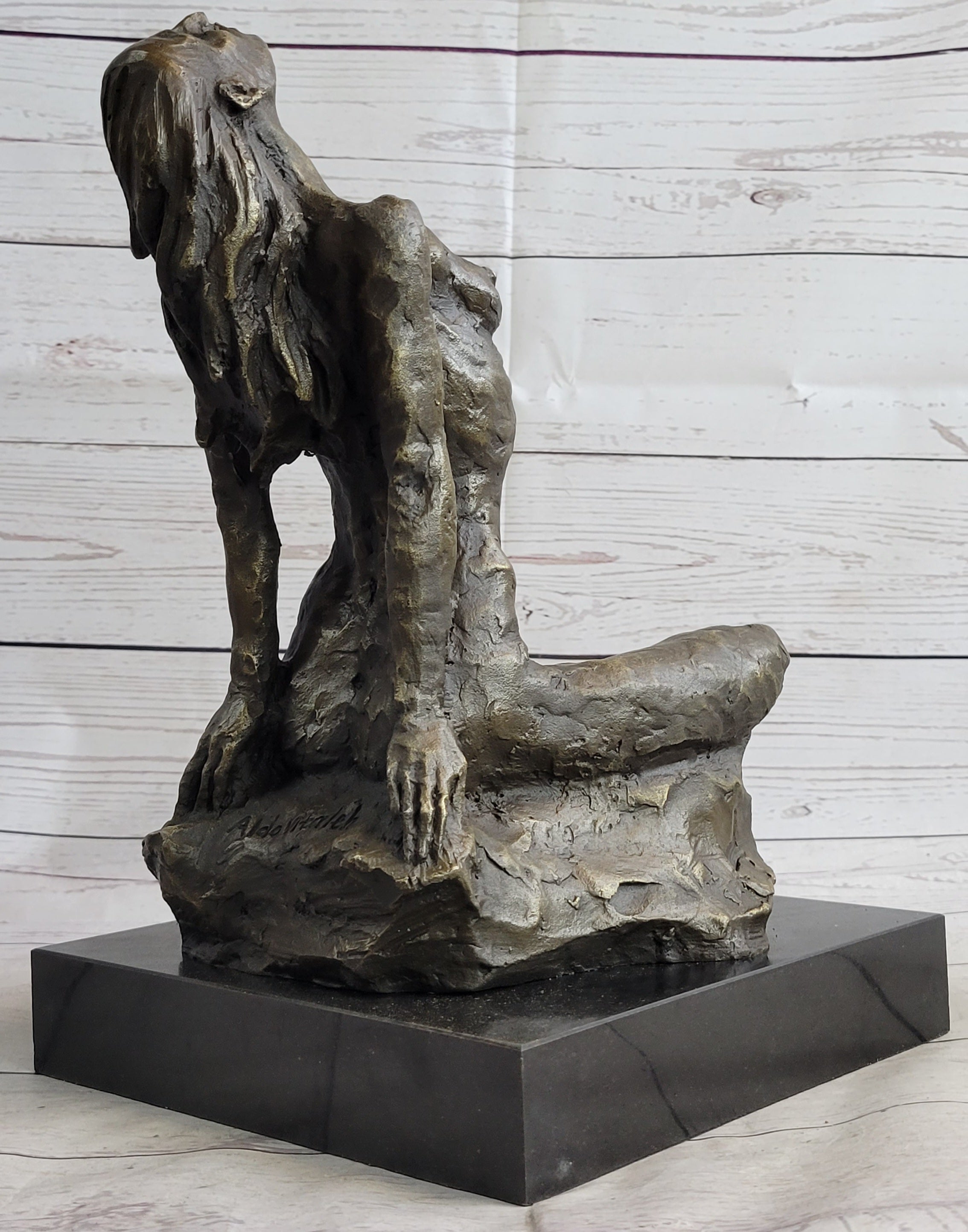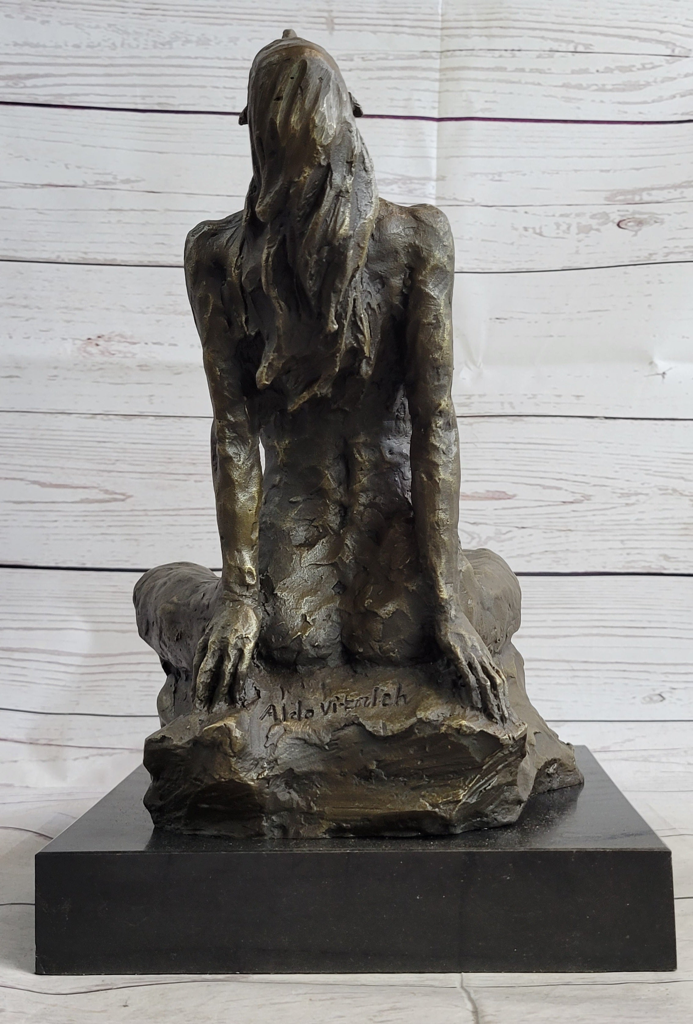 Signed Original Aldo Vitaleh Abstract Nude Female Bronze Marble Sculpture Figure