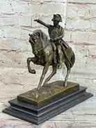 The sculpture is a testament to Napoleon's military prowess and his connection to the great Carthaginian general Hannibal, whom he often quoted. The bronze was crafted using the Lost Wax Method, a traditional casting process that ensures the highest quality and durability. The sculpture has a stunning brown patina finish and is mounted on a sleek black marble base, signed by the renowned artist Aldo Vitaleh.