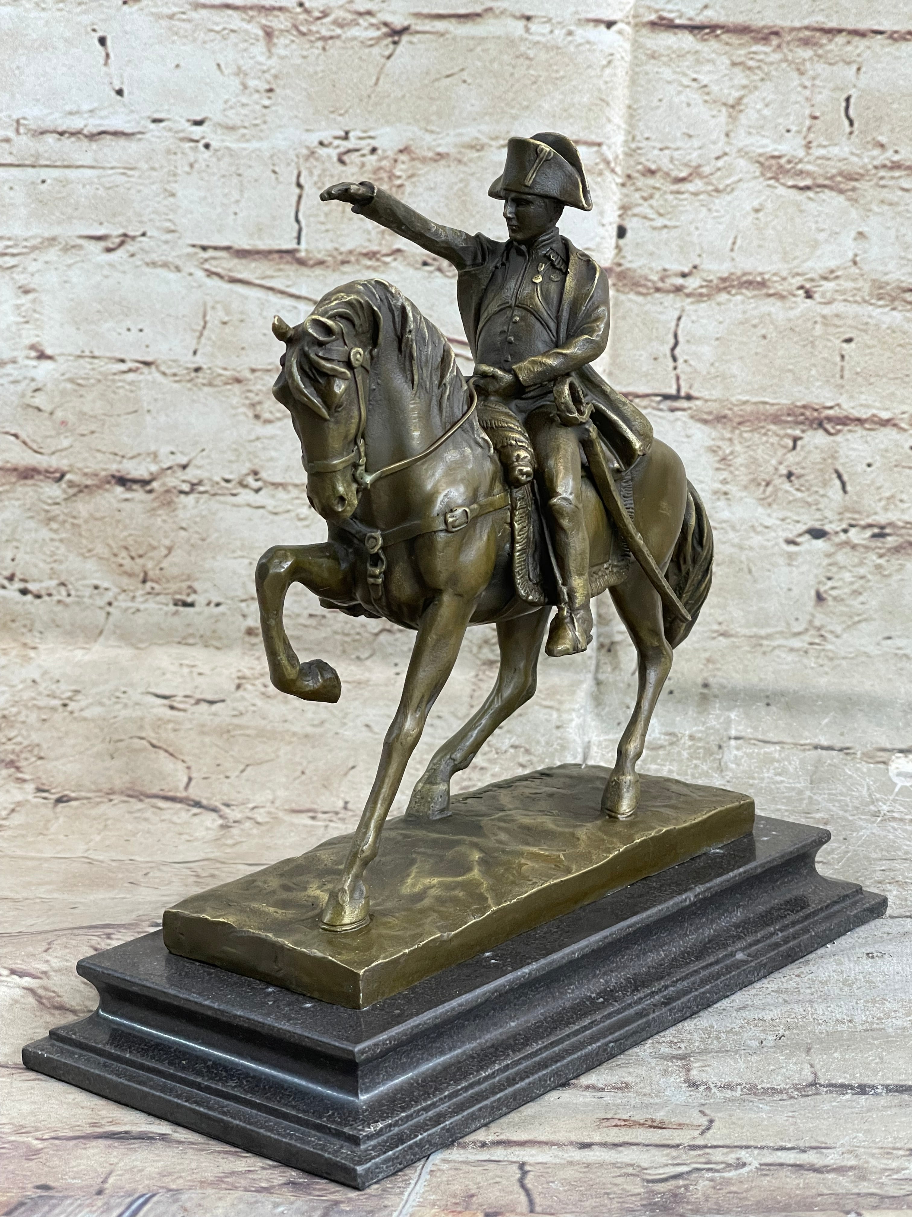 Whether you're a history buff, a political enthusiast, or simply appreciate beautiful artwork, this sculpture is sure to impress. It makes for a great addition to any home, office, or public space, and is a timeless reminder of Napoleon's legacy.Bronze Dimensions with Marble Base: 9.5" X 8.5"