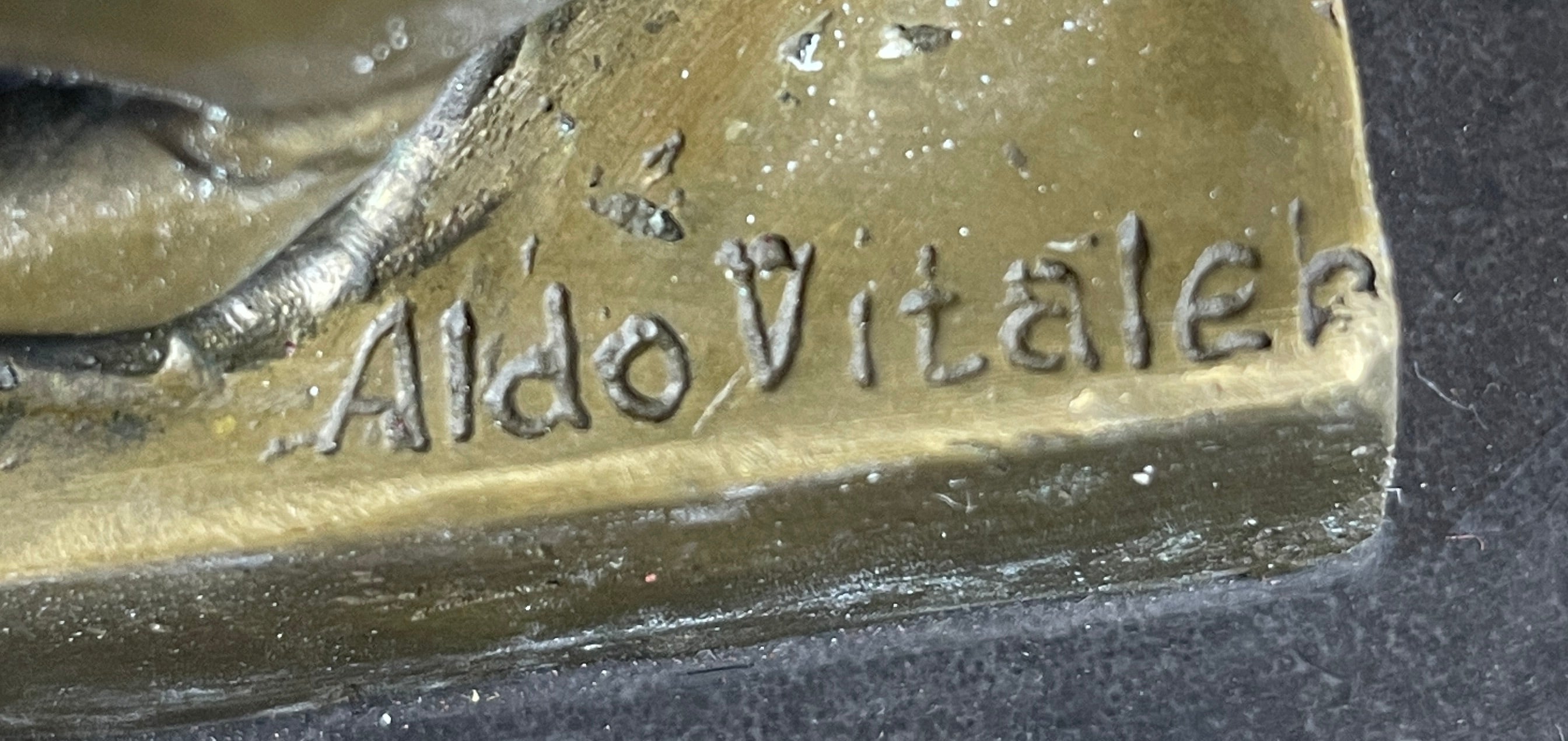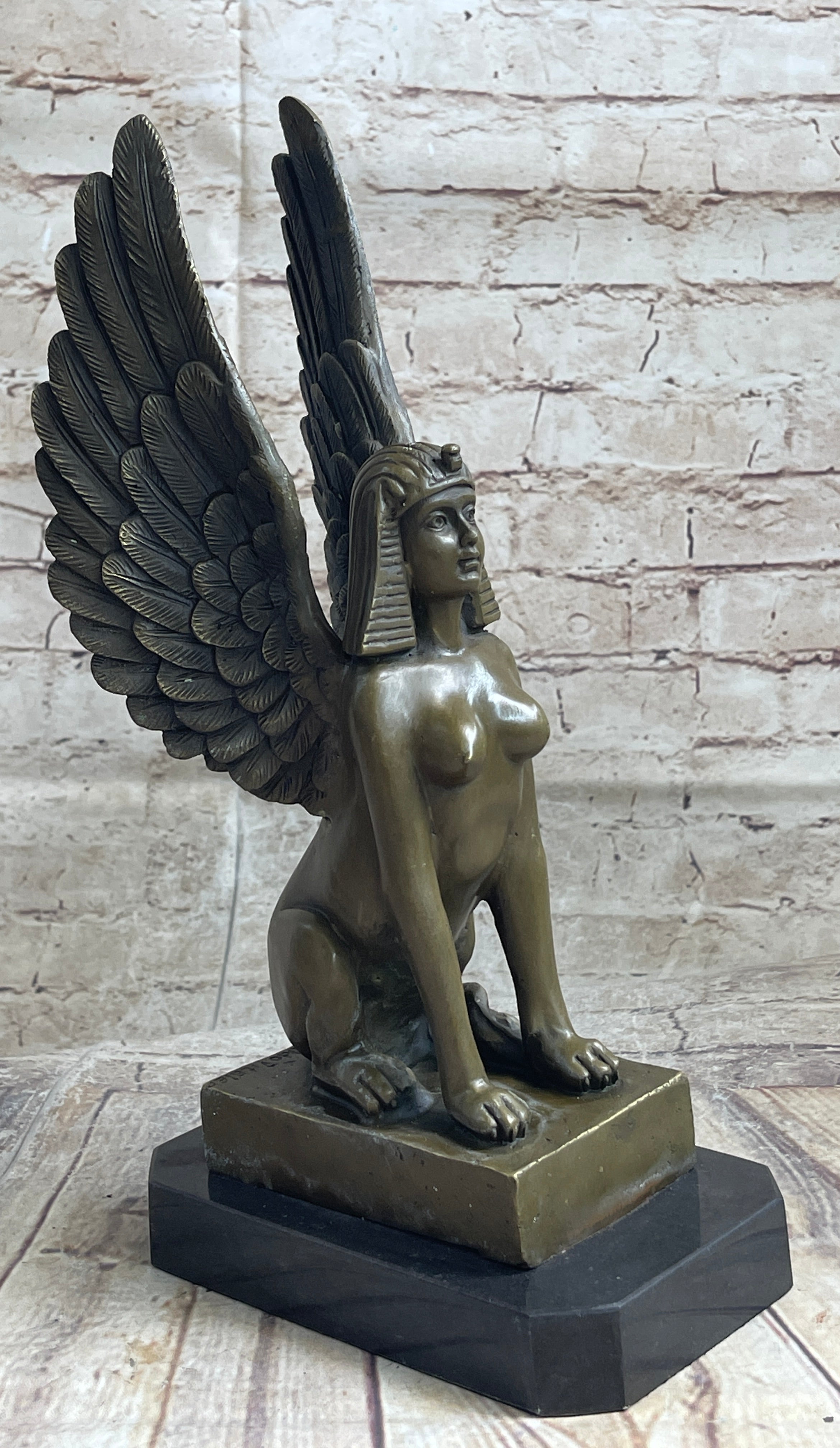 Signed Original Aldo Vitaleh Nude Sphinx Bronze Sculpture Marble Base Figurine