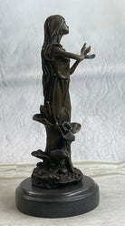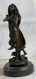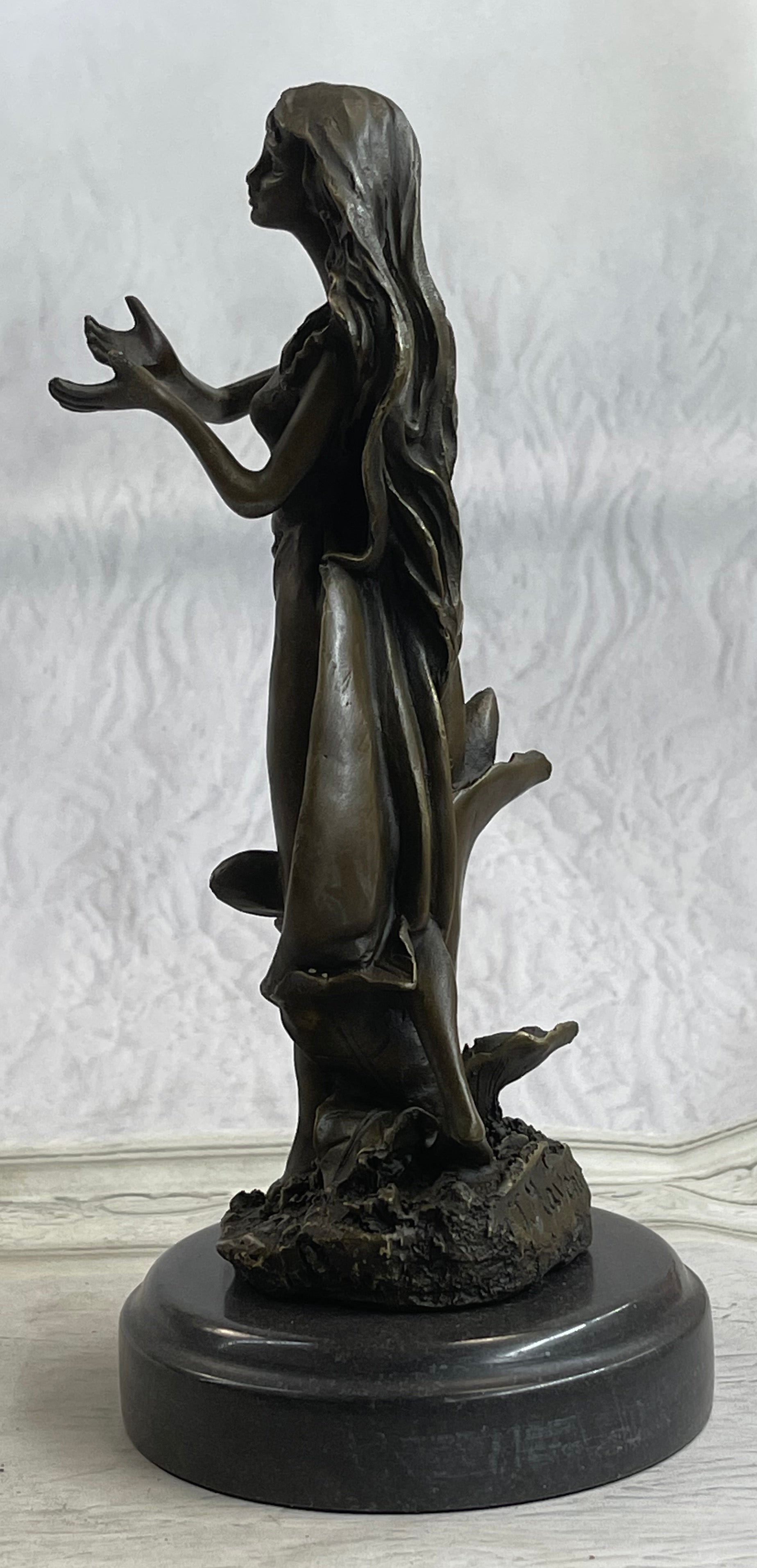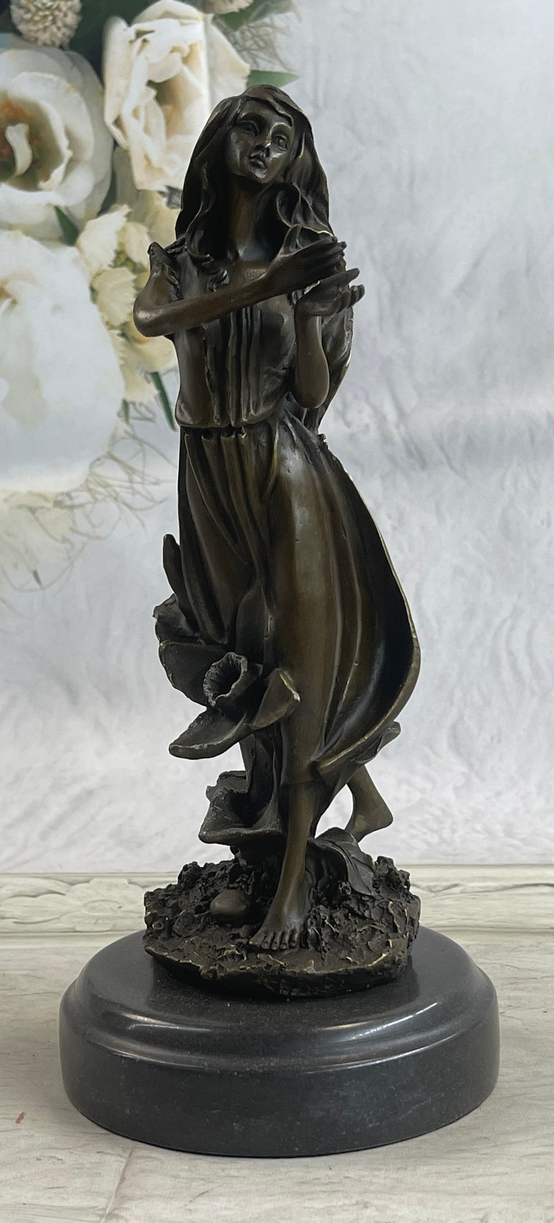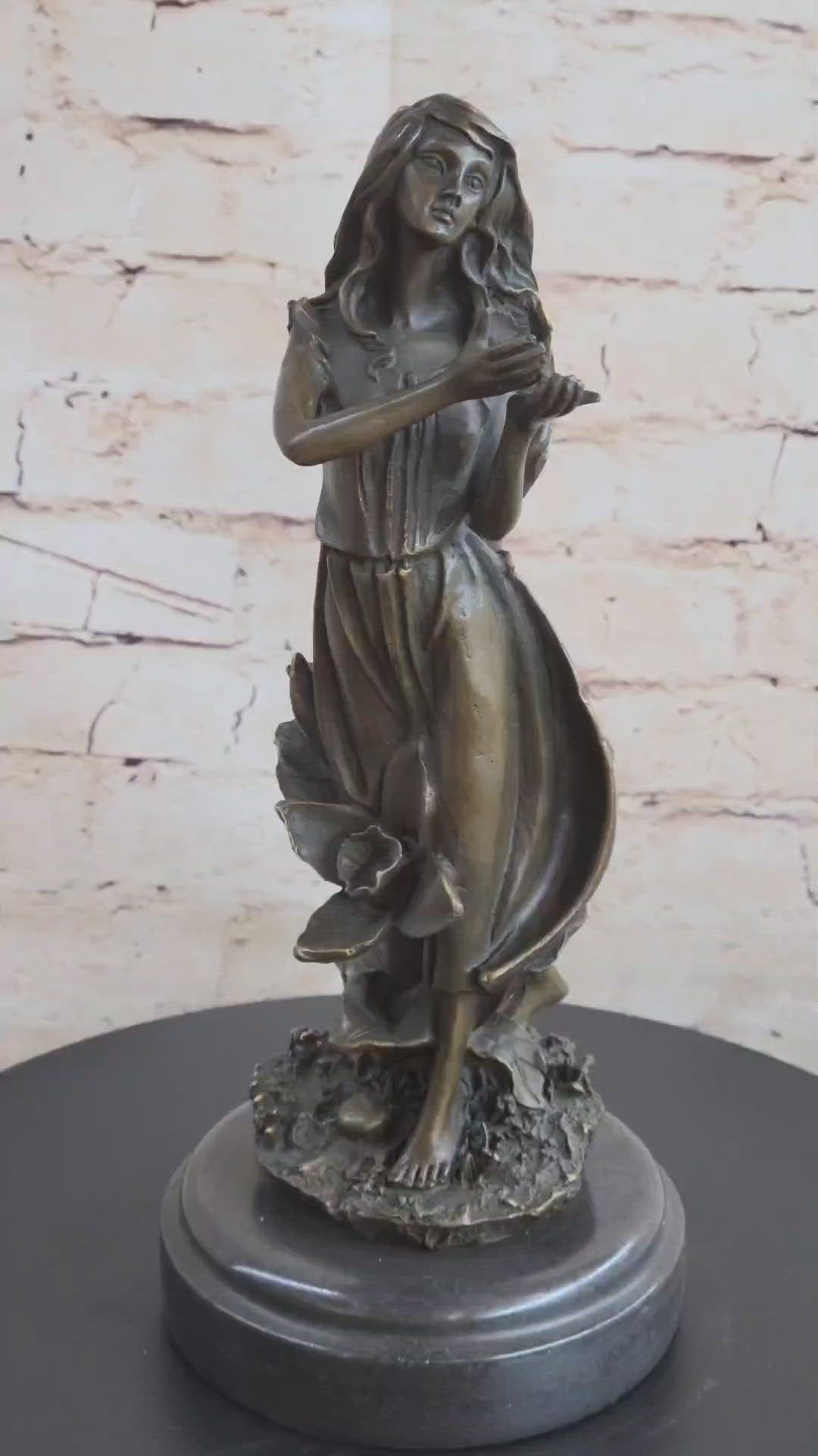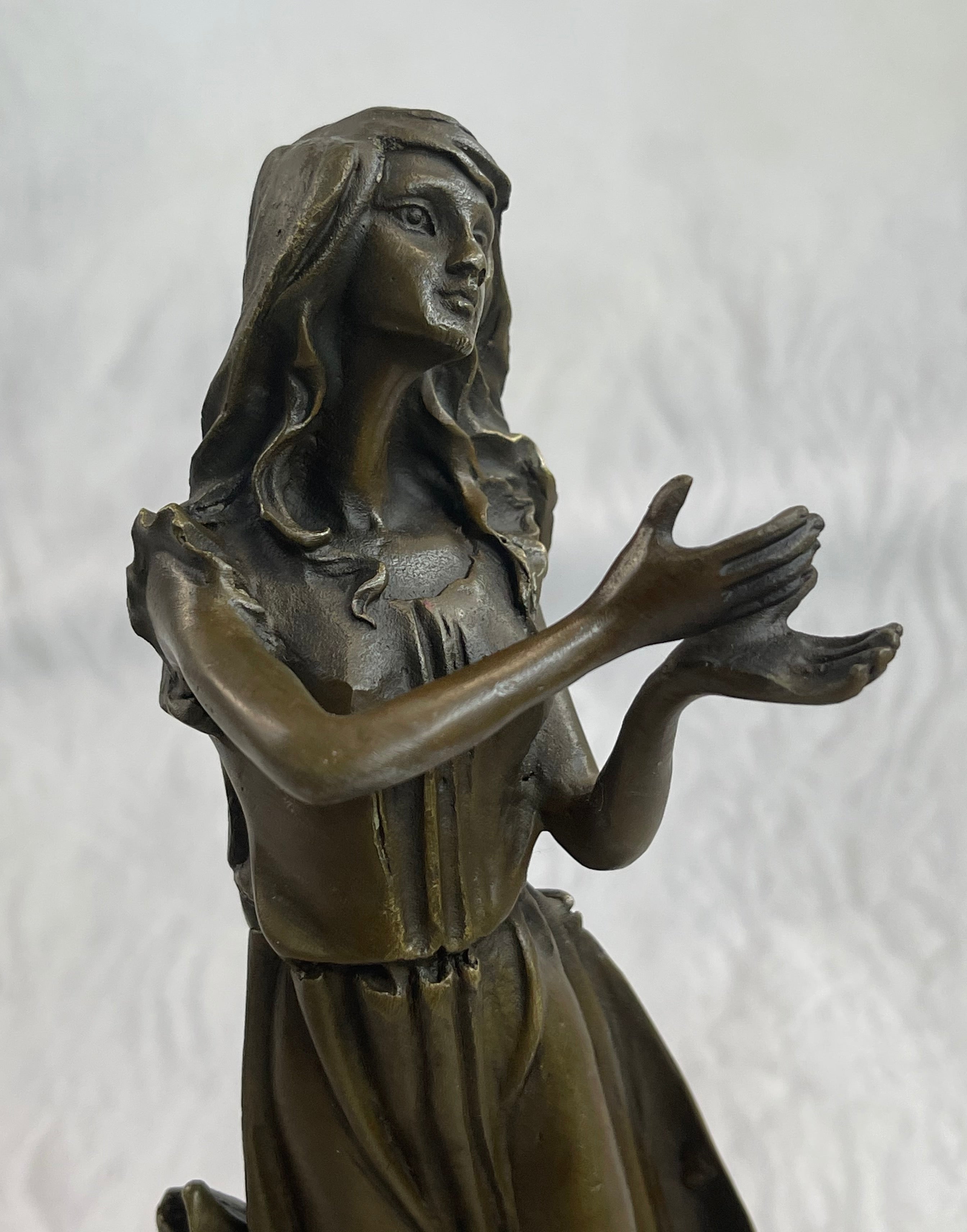 Handcrafted from 100% bronze, this sculpture is created using the traditional "Lost Wax Method", ensuring precision and detail. The rich brown patina enhances its depth and character, while the marble base provides a touch of refinement. Signed by artist J. Mavchi, this stunning piece embodies elegance, artistry, and the essence of peaceful contemplation..Bronze Dimensions with Marble Base: Height 10.5" X Width 4.5"