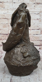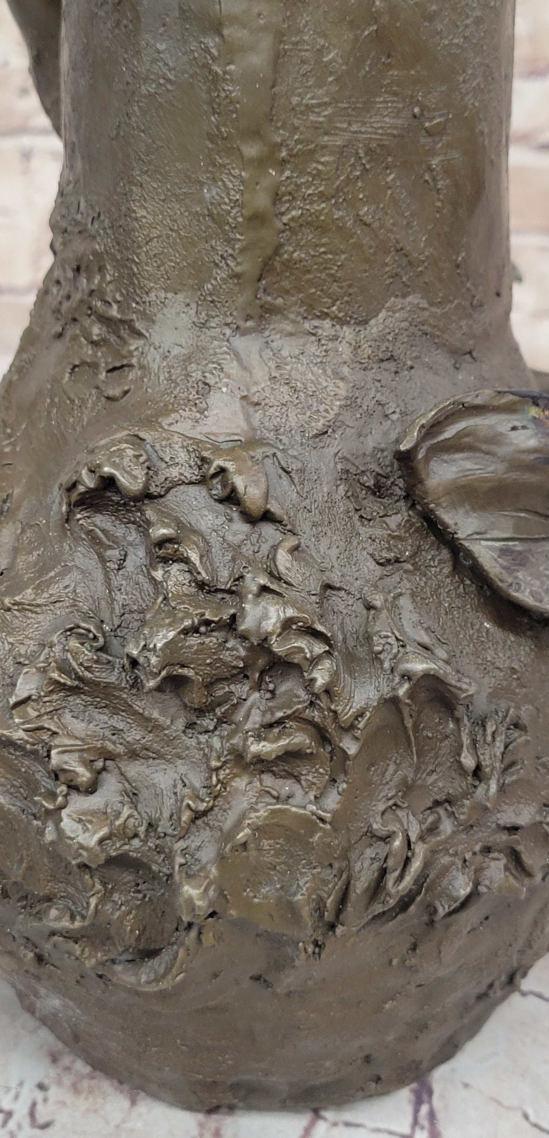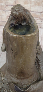 Signed Original Art Nouveau Aldo Vitaleh Mermaid Vase Bronze Sculpture Statue