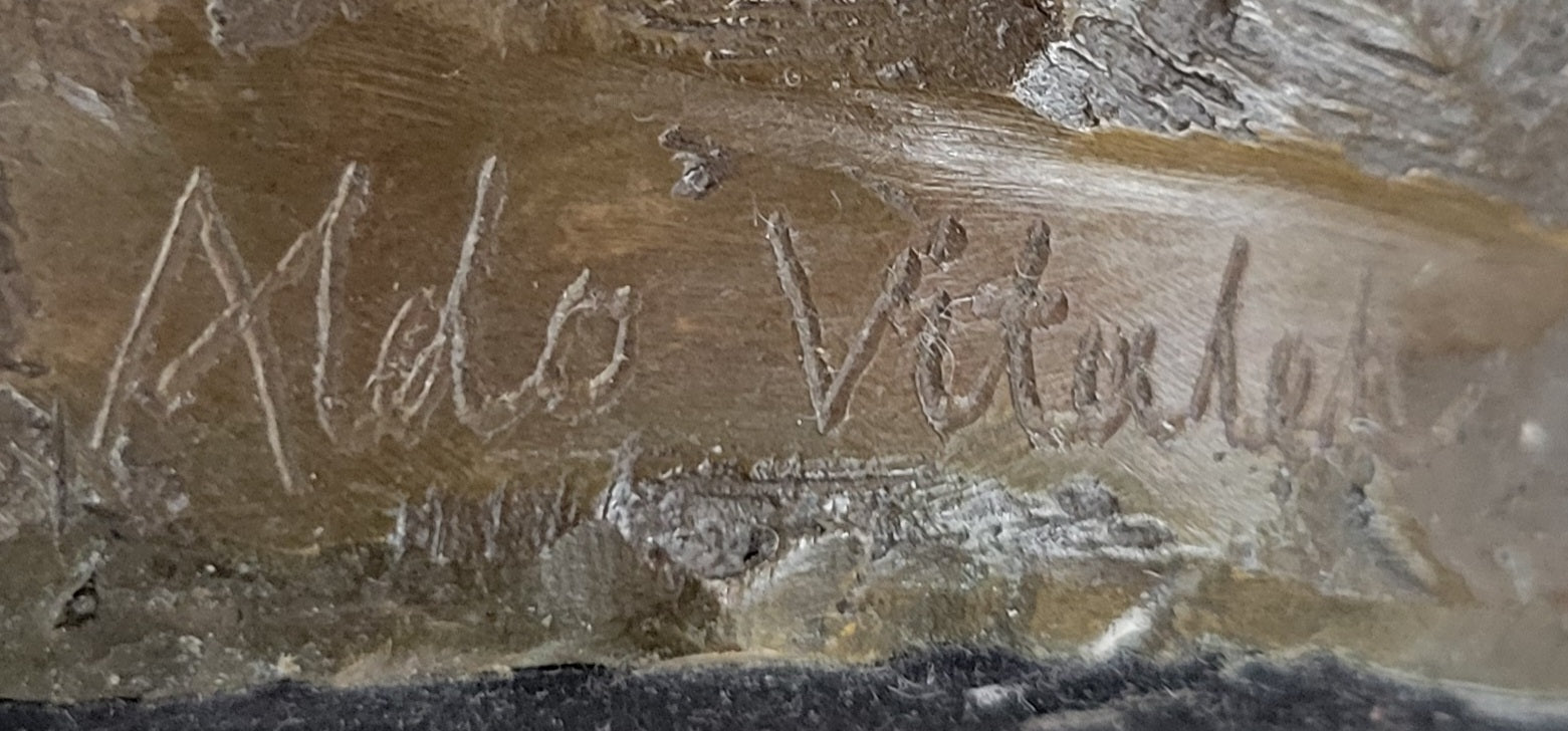 Signed by the esteemed artist Aldo Vitaleh, this Art Nouveau vase is not only a functional piece but also a work of art that adds beauty and sophistication to any space. Whether displayed on its own or used to hold flowers or other decorative items, it serves as a striking centerpiece that captures the imagination and delights theBronze Dimensions: Height 14" X Width 8"