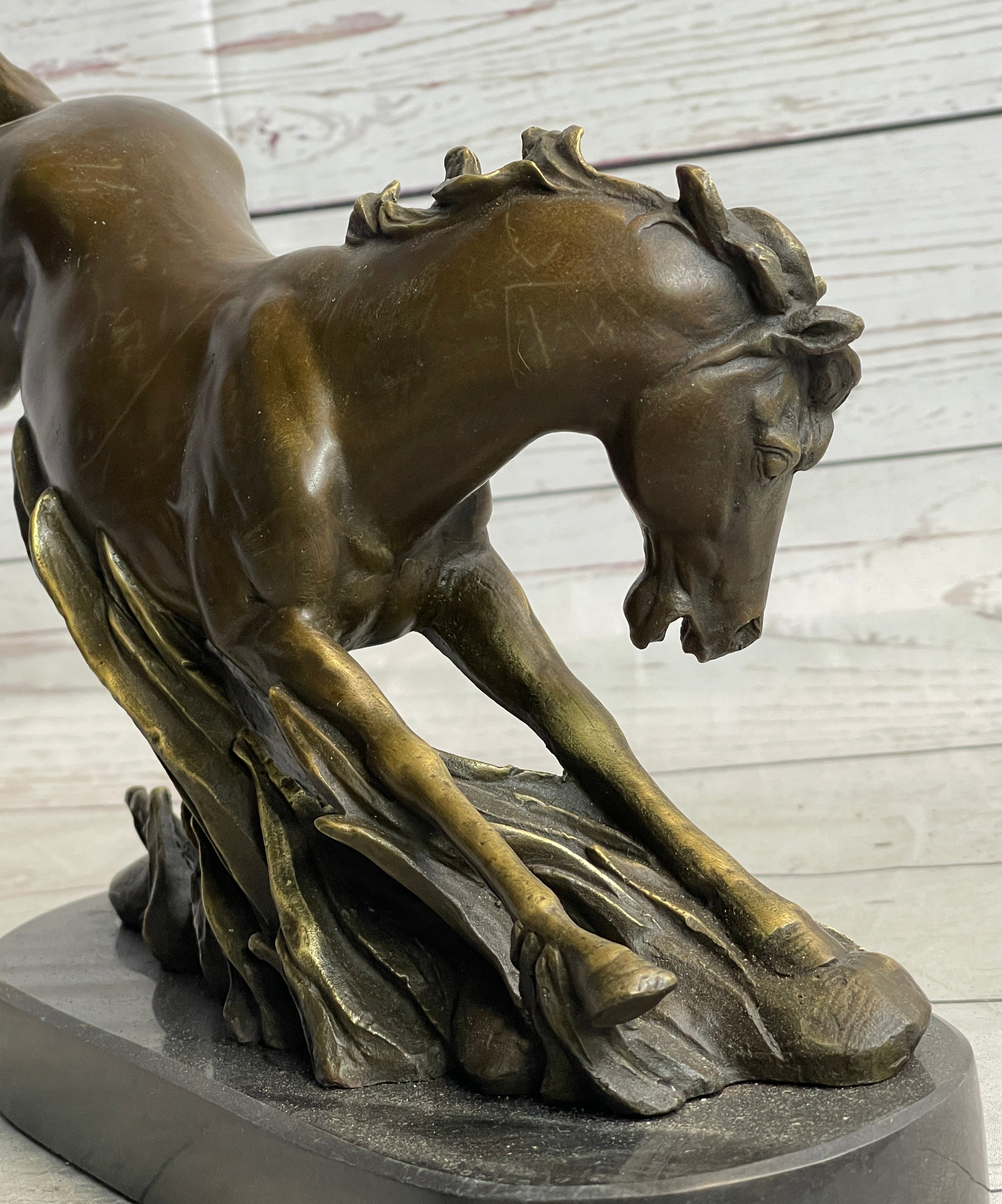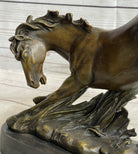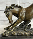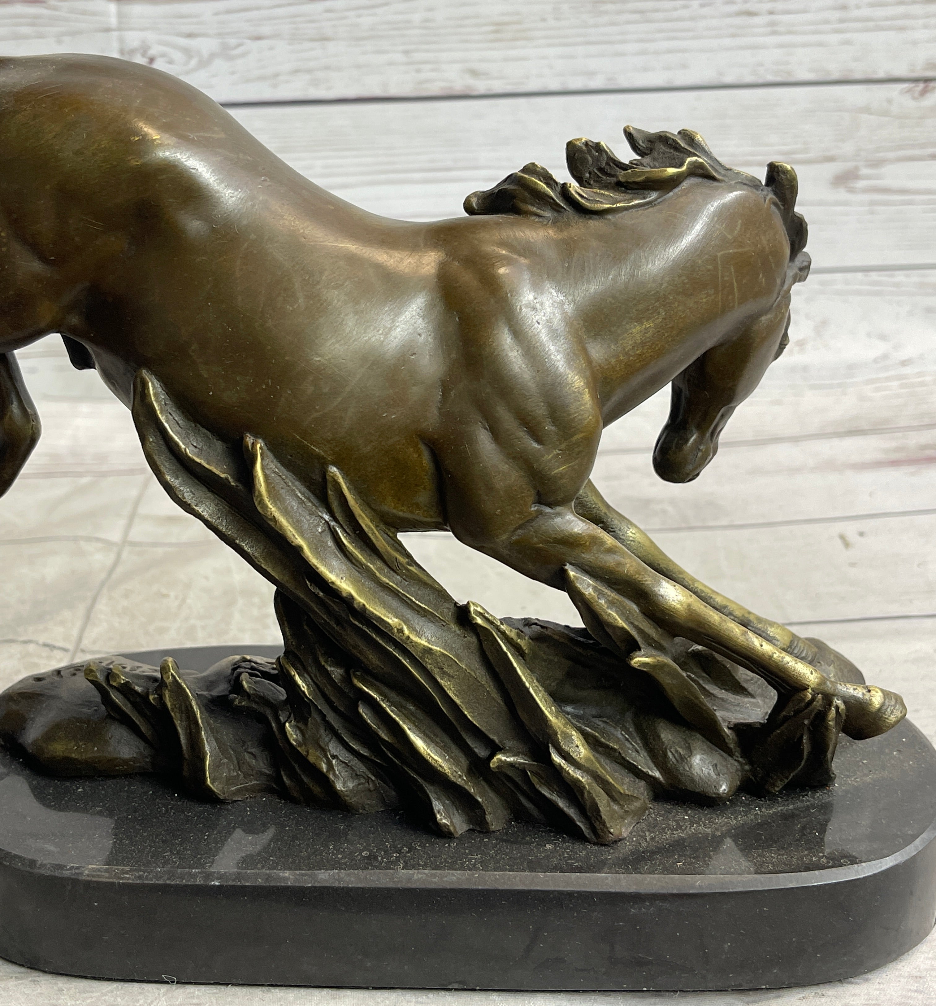 Using the ancient lost wax method, this sculpture is a testament to the artist's dedication and expertise. Every intricate detail, from the horse's muscular form to its flowing mane, is meticulously captured, resulting in a lifelike representation that evokes a sense of awe and admiration. As a signed original by the renowned American artist Fisher, this sculpture holds both artistic and sentimental value, becoming a cherished possession that brings pleasure and inspiration for a lifetime.Bronze Dimensions with Marble Base: Height 9" X Width 13"