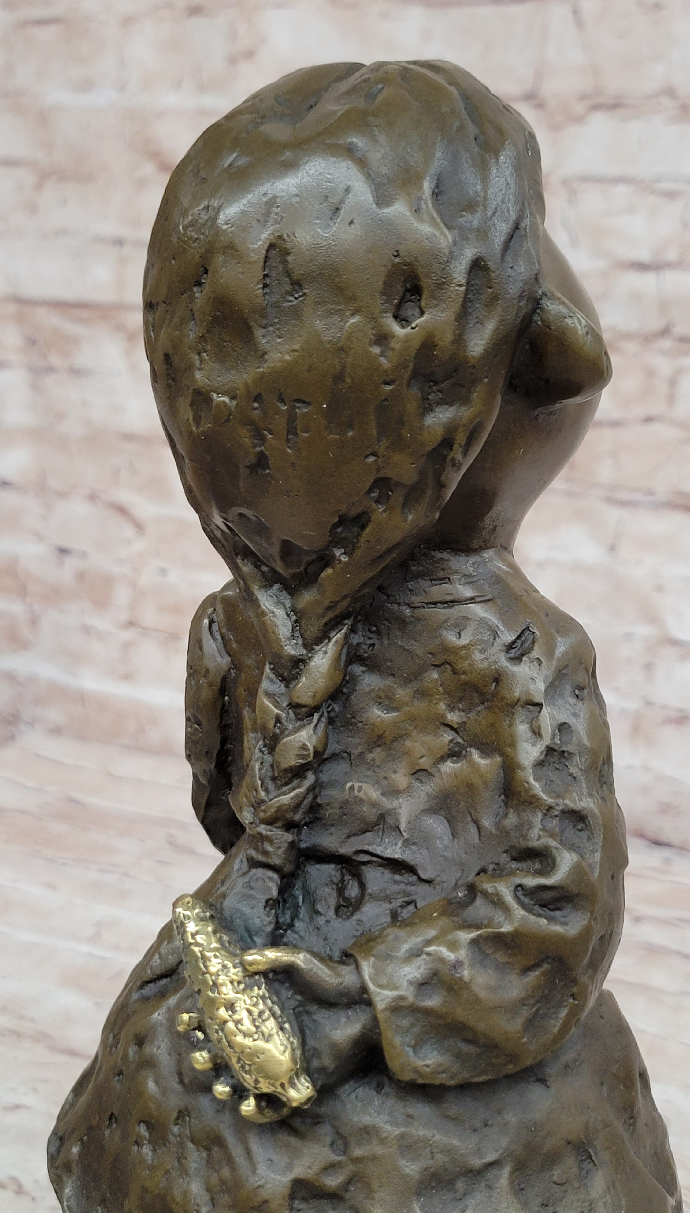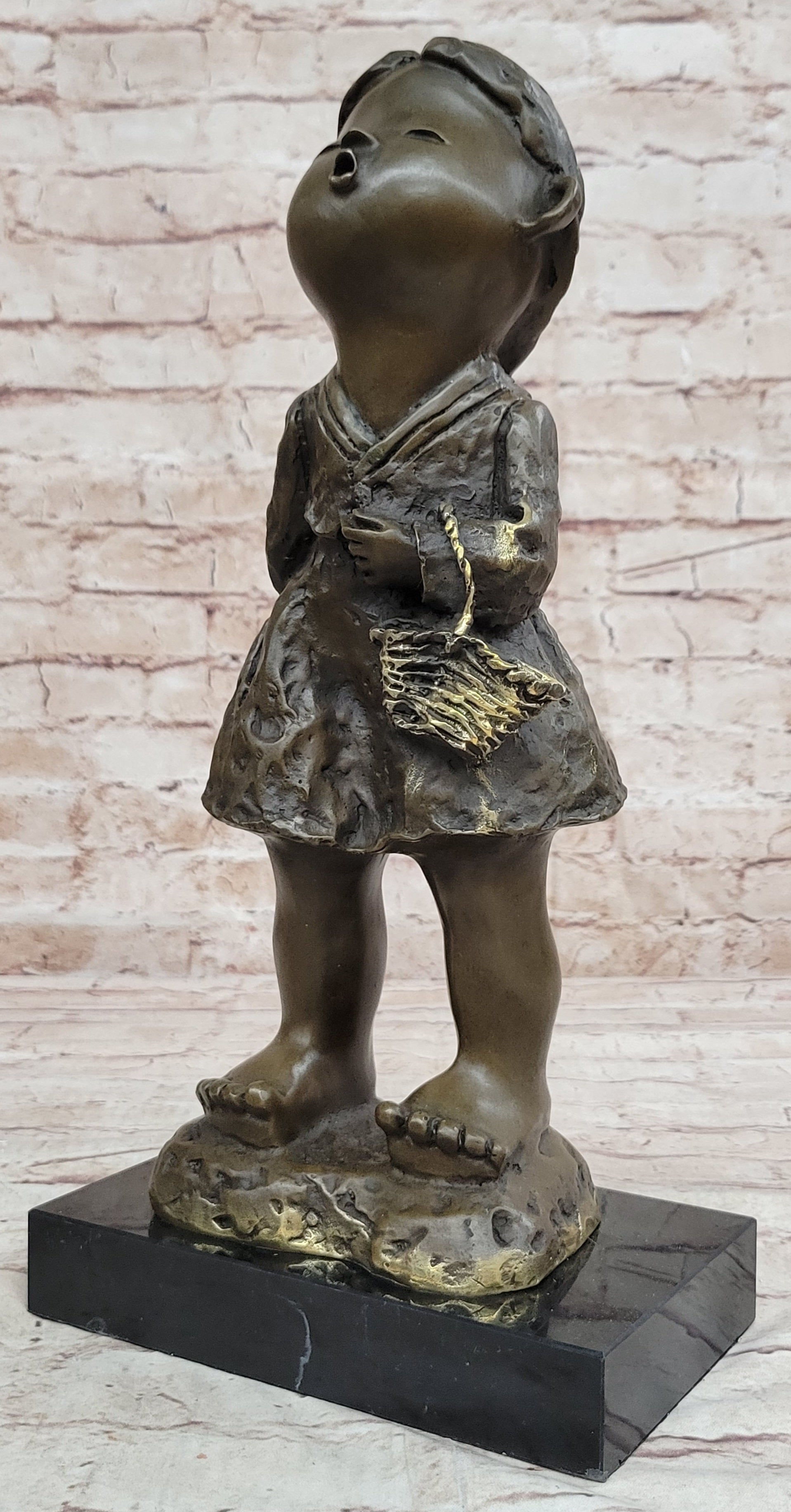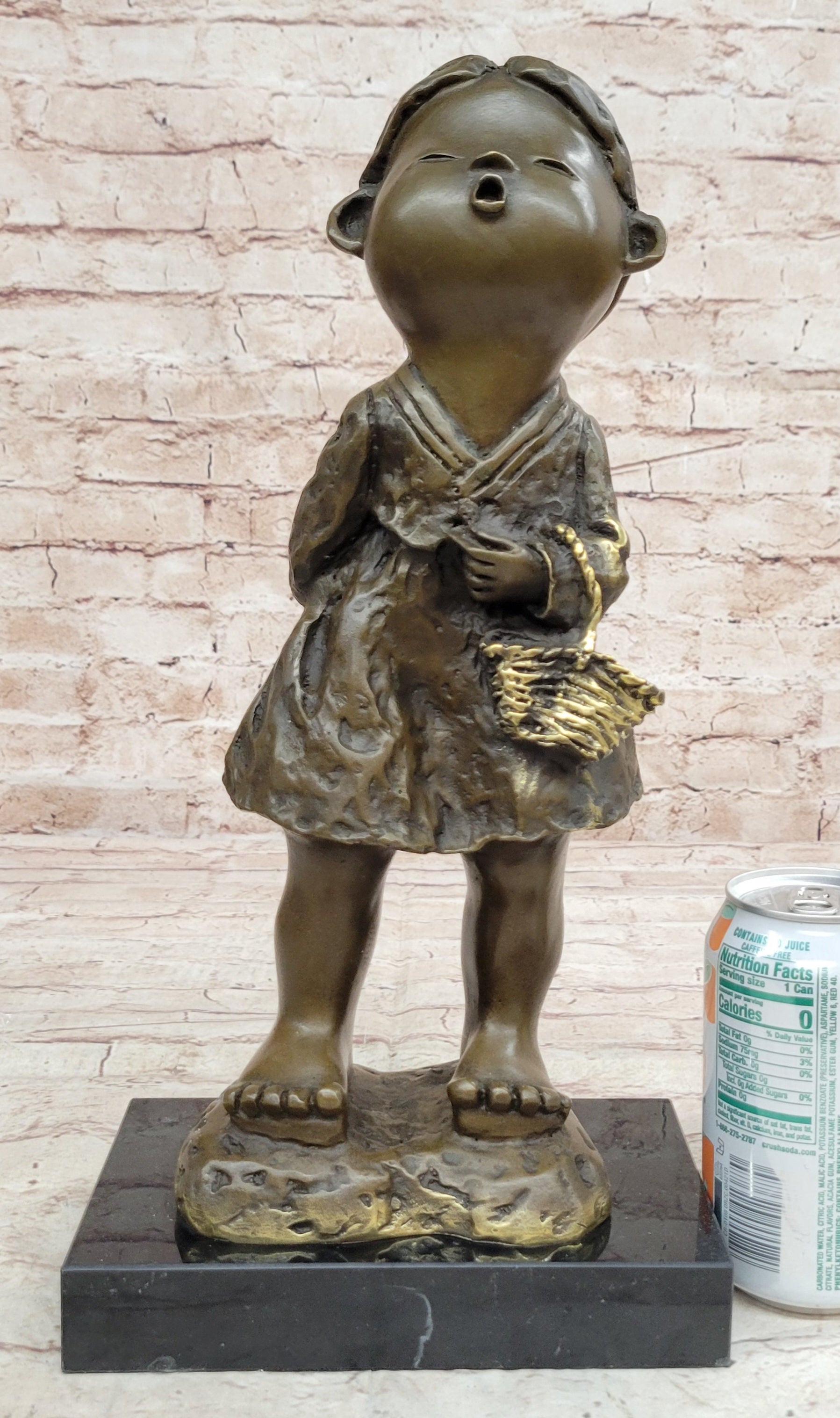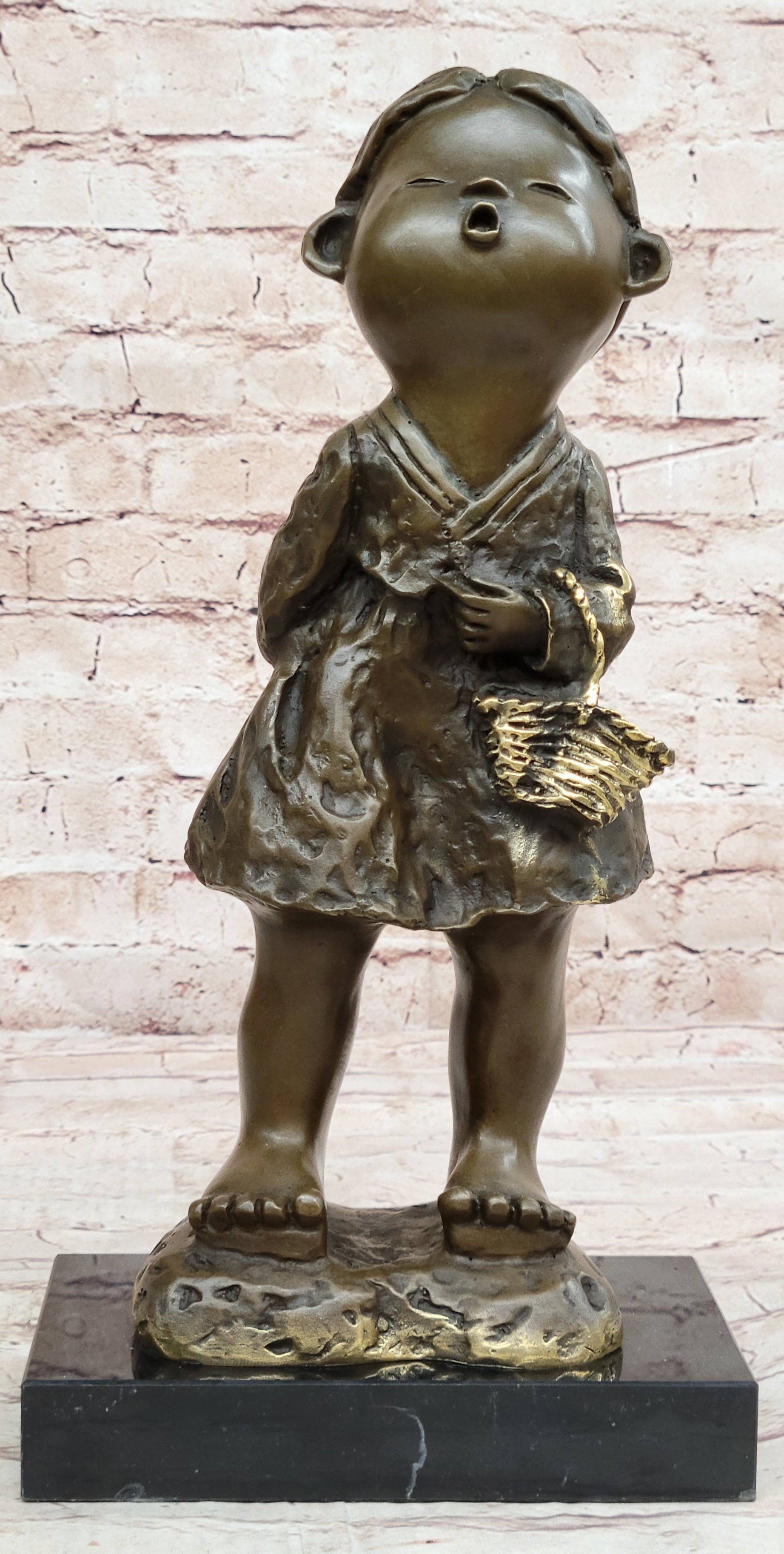 Signed Original Artwork by Milo Chinese Girl holding Basket Bronze Sculpture