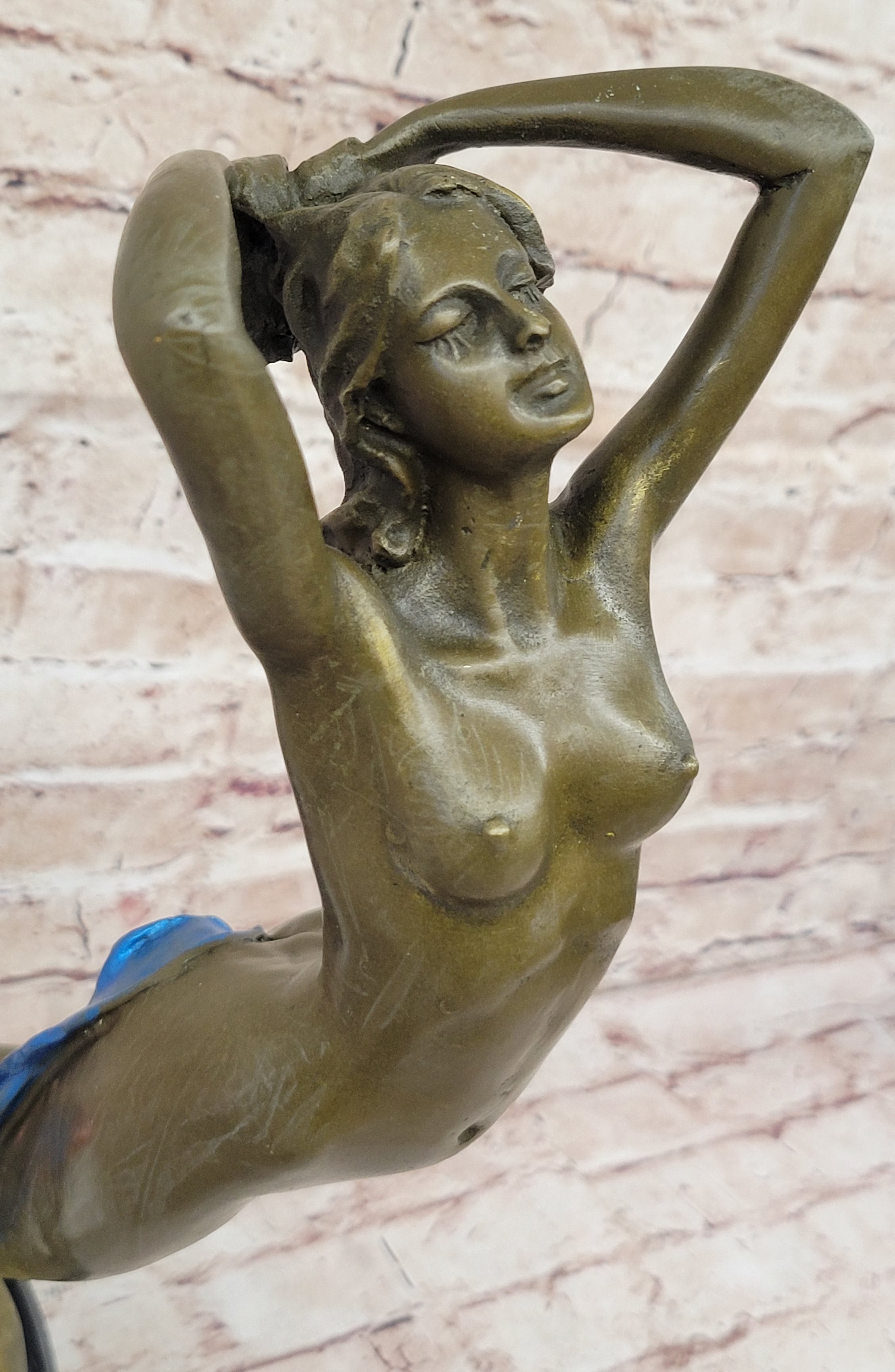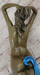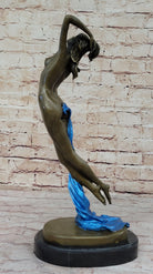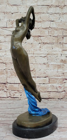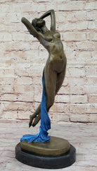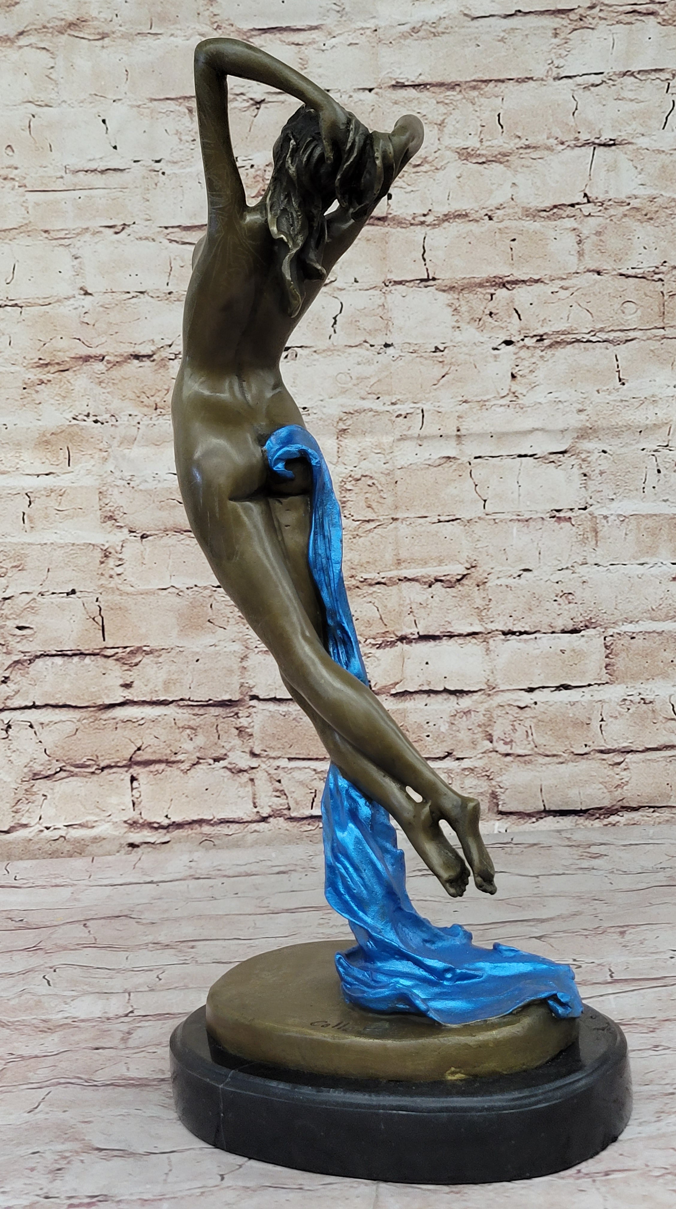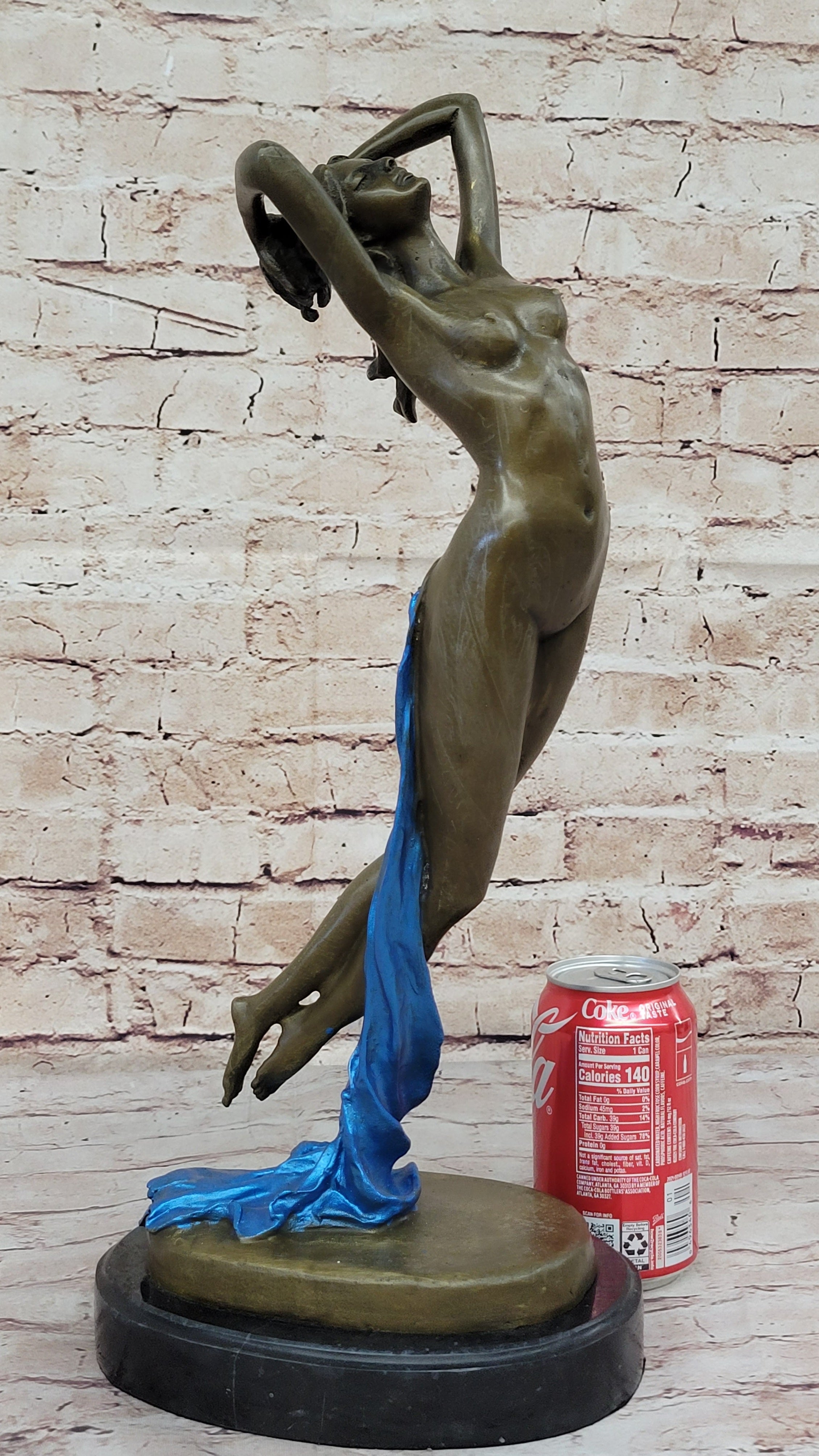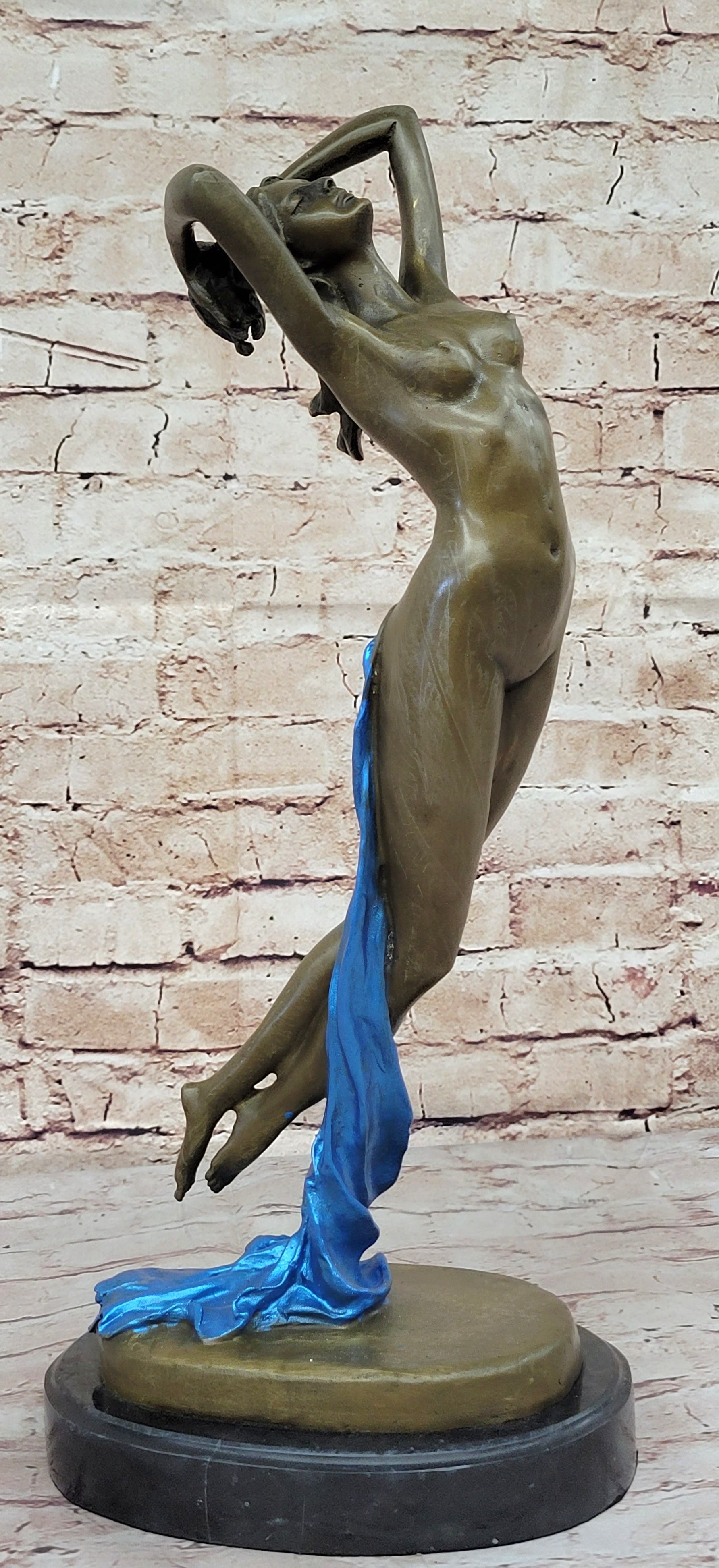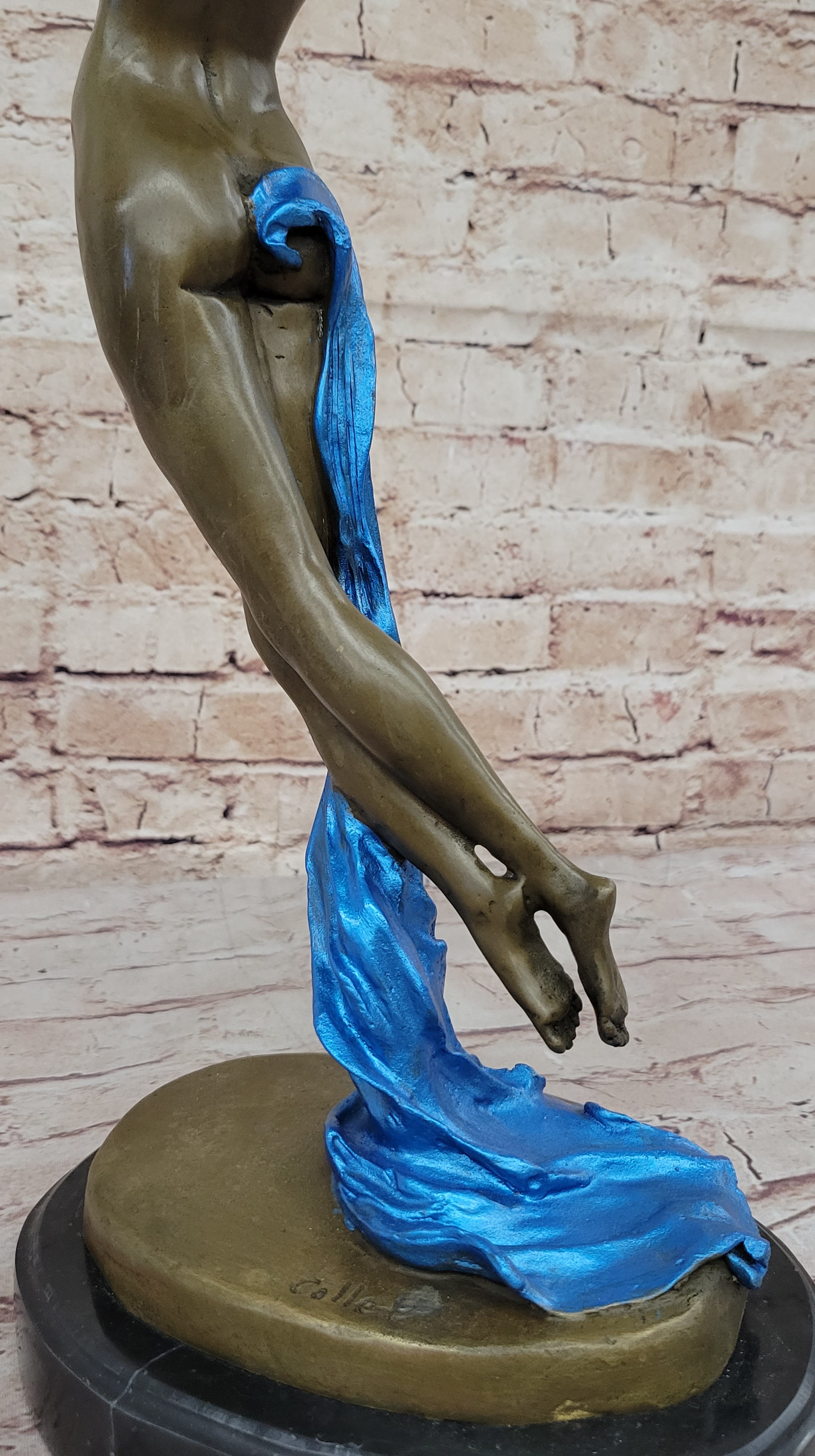Signed Original Blue Patina Nude Female Leaping in Air Bronze Sculpture Statue