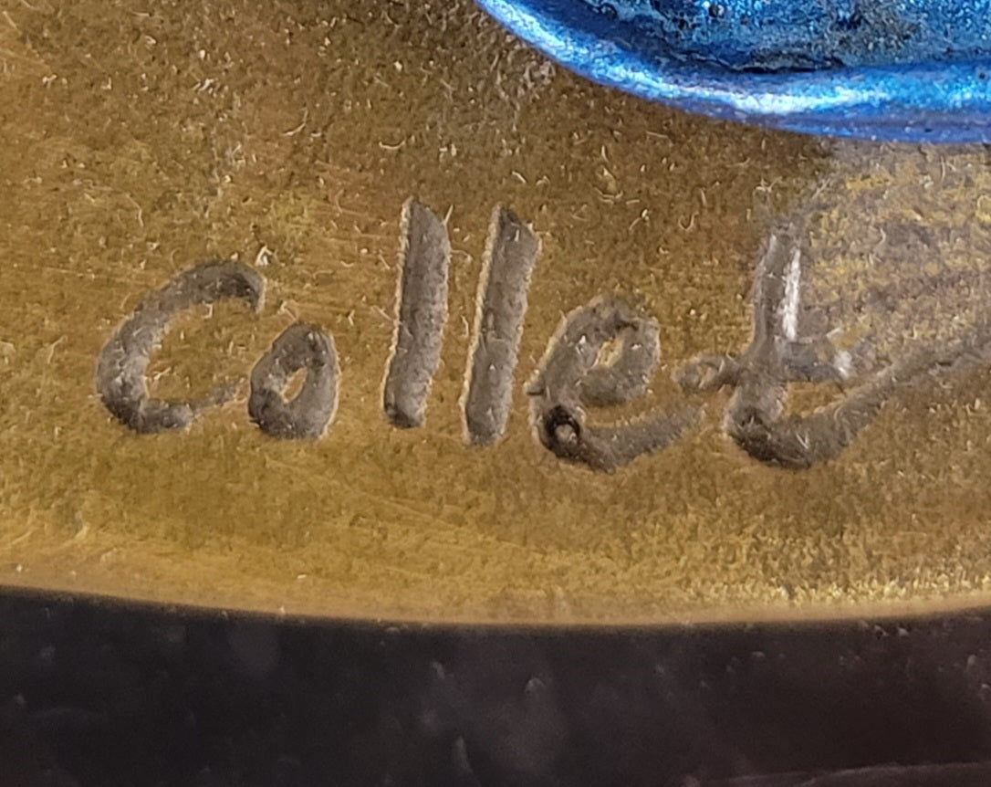 With the artist's signature, Collet, proudly displayed, this sculpture not only celebrates the human form but also pays tribute to the skill and creativity of its creator. It invites viewers to appreciate the beauty of movement and the expression of inner vitality, making it a captivating addition to any art collection or space.Bronze Dimensions with Marble Base: Height 18" X Width 8"