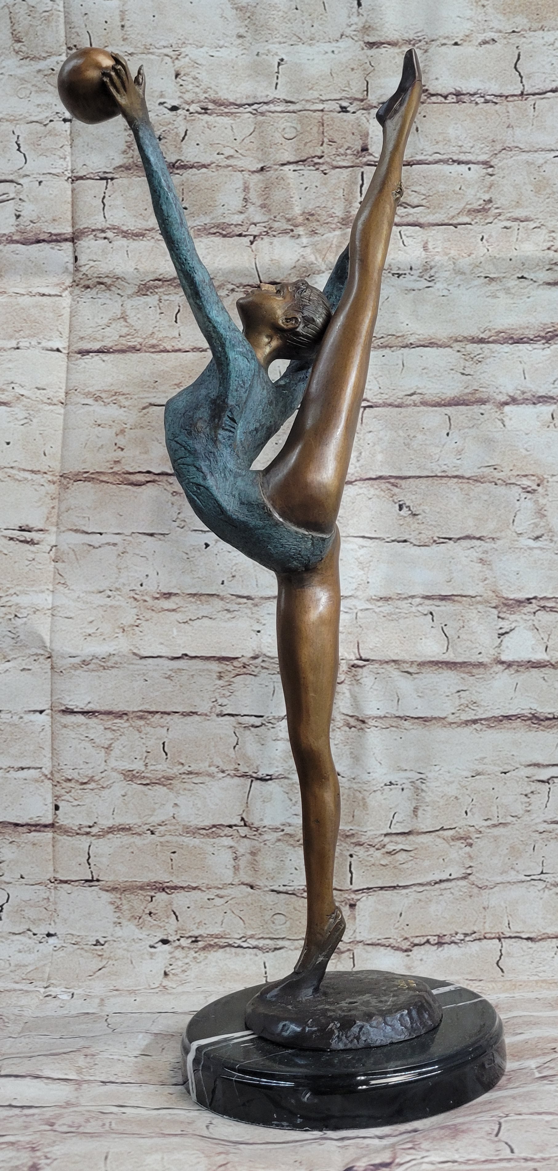 Signed Original Collett Gymnast Balancing Ball Bronze Sculpture Statue 24" x 12"
