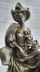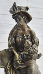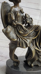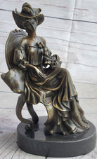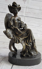 Signed Original Fisher Victorian Girl Holding Dog Bronze Sculpture Statue Decor
