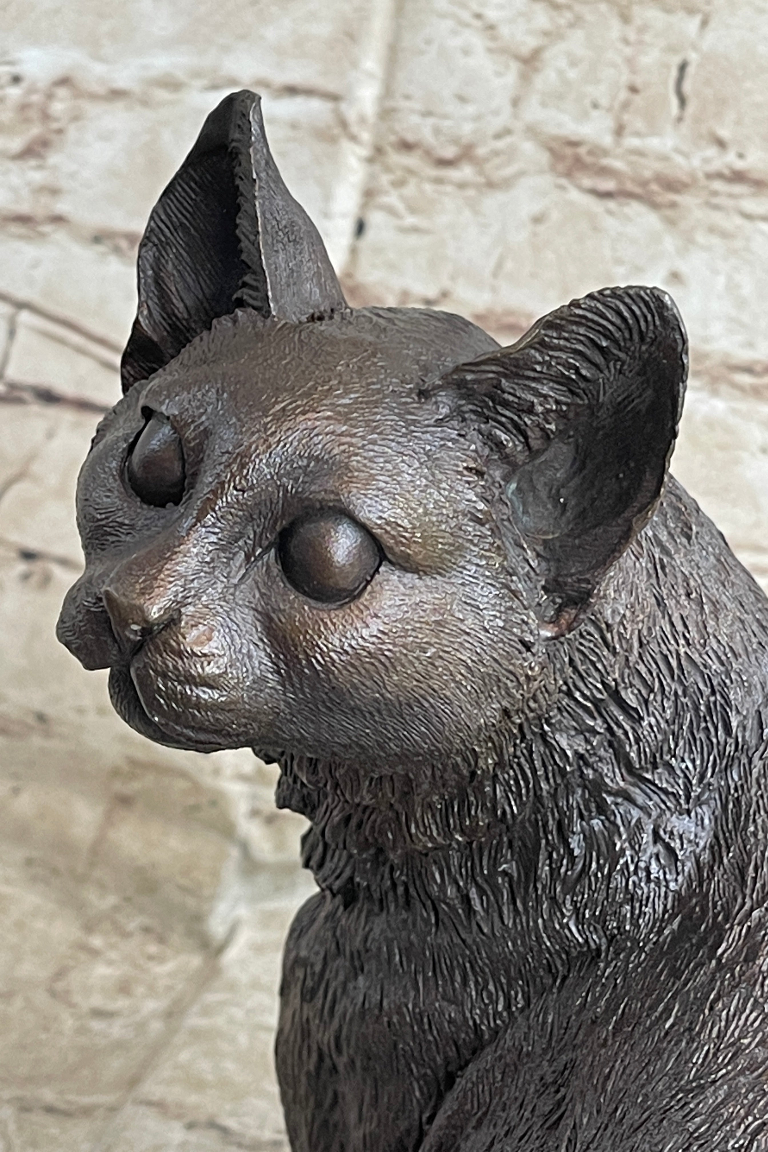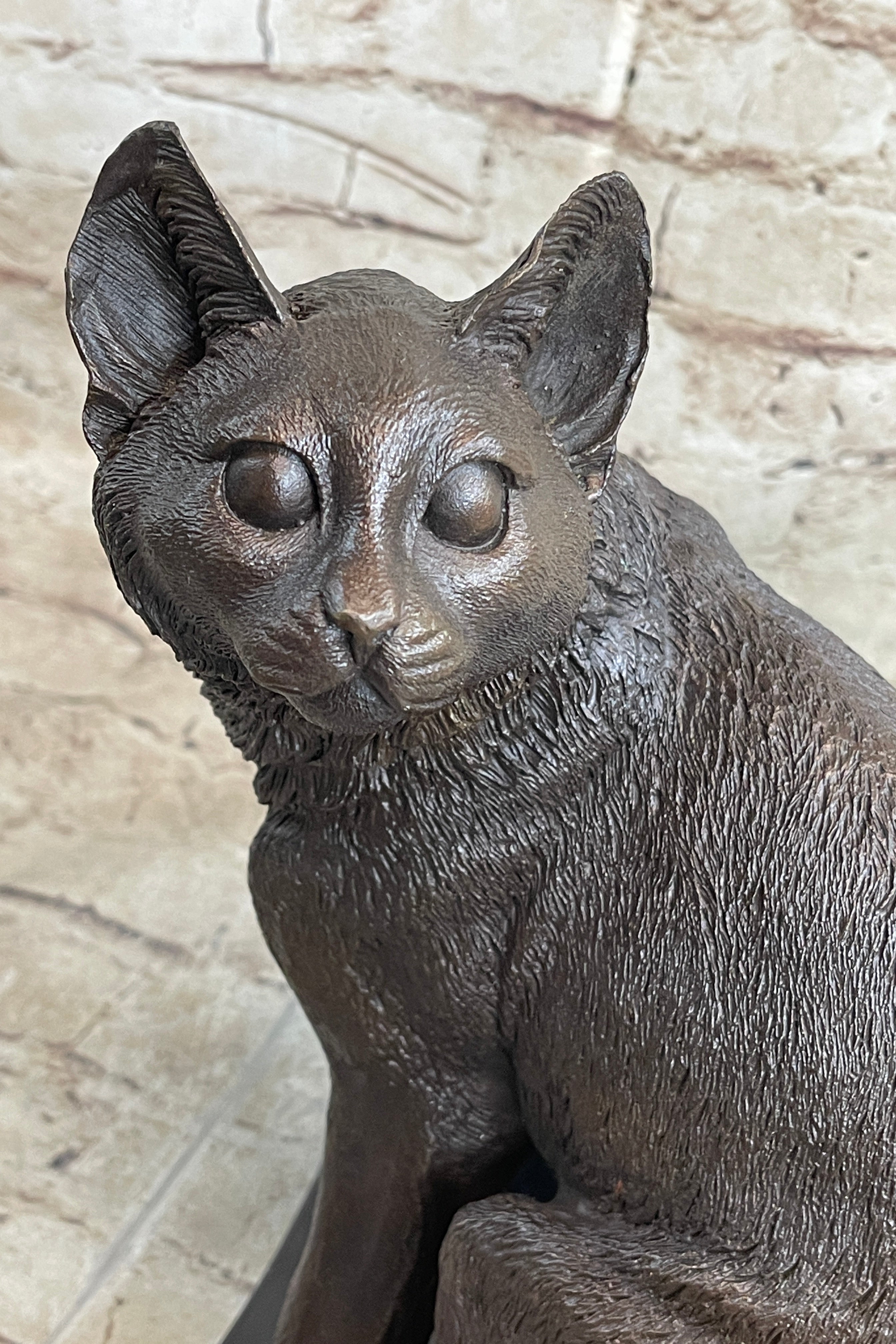 Signed Original Friendly Cat Feline Bronze Art Deco Marble Base Sculpture Figure