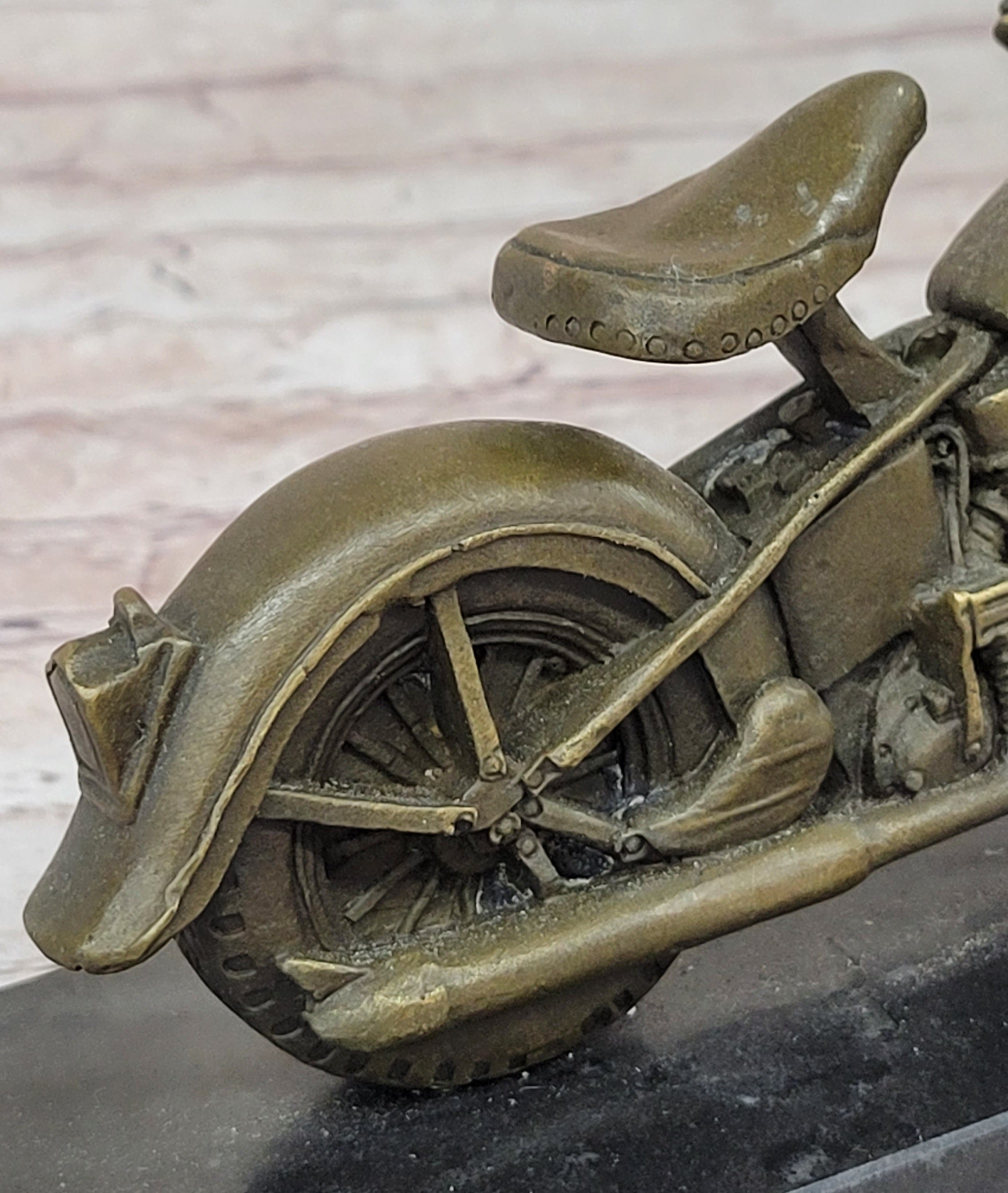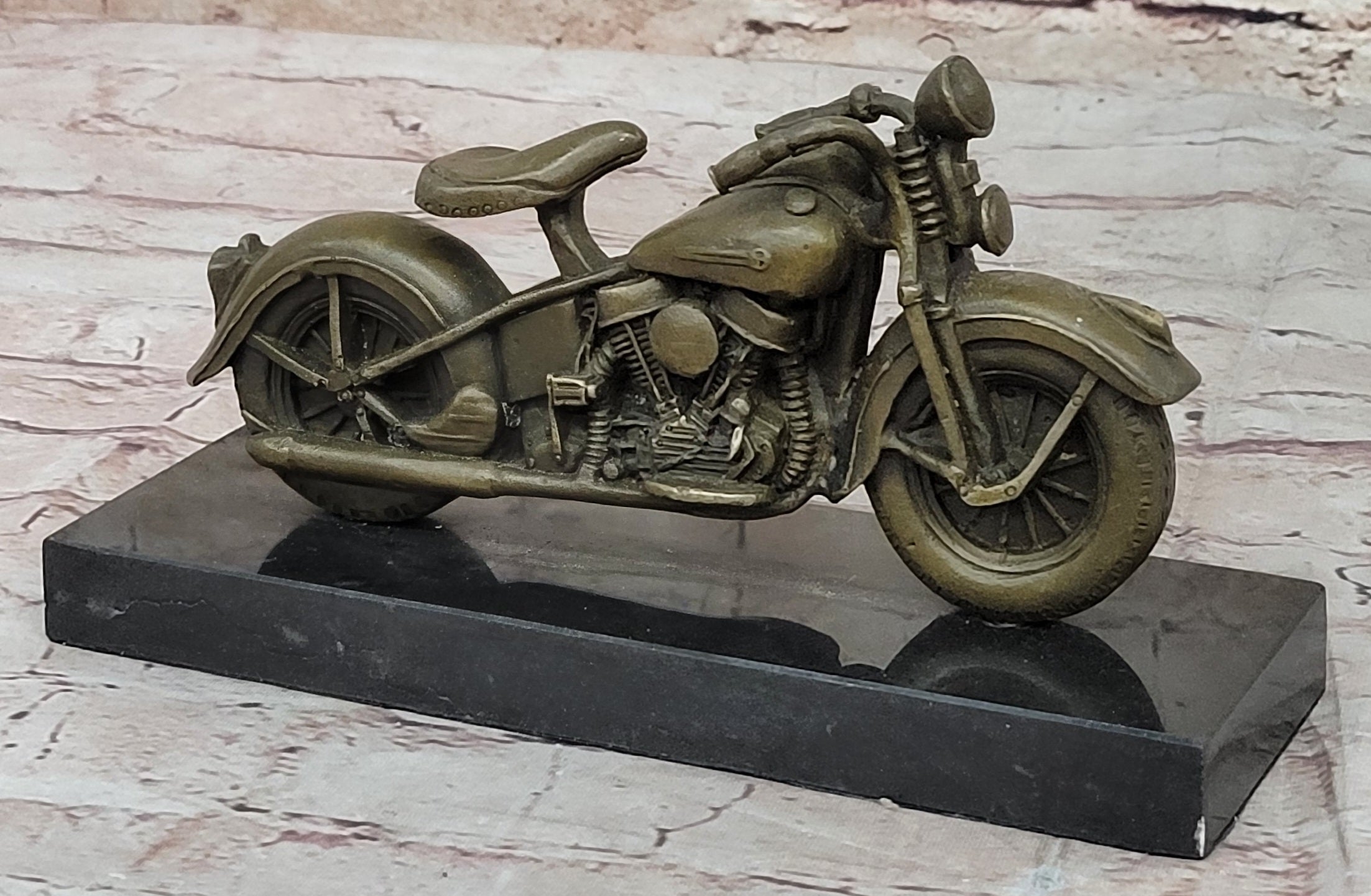 Mounted on a sleek marble base, this impressive artwork bears the signature of the talented artist Milo, a testament to its genuine authenticity and artistic merit. Whether displayed in a motorcycle enthusiast's collection, showcased in a museum, or as a captivating centerpiece in your space, this Harley Davidson bronze sculpture is a true homage to the enduring legacy of this iconic motorcycle. A must-have for collectors and fans alike, this showpiece embodies the spirit of freedom and adventure that Harley Davidson represents.Bronze Dimensions with Marble Base: Height 4" X Width 8.5"