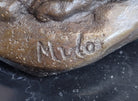 Mounted upon a sleek black marble base bearing the signature of artist Milo, this sculpture not only captures the essence of the cat's symbolic significance but also serves as a stunning piece of art that adds depth and character to any space. Whether displayed in a home or office, it serves as a reminder to embrace the magic of change and the wisdom found in the unexpected encounters of life.Bronze Dimensions with Marble Base: Height 8.5" X Width 3"