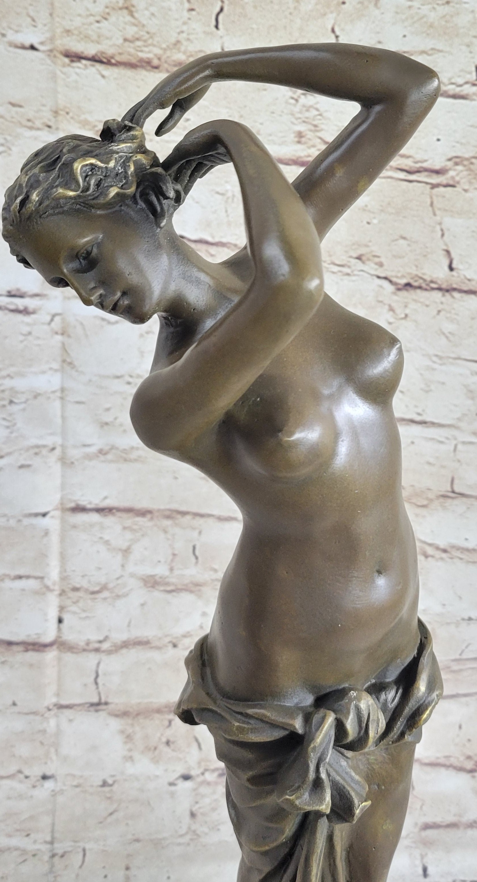 Signed Original Italian Vitaleh Nude Female Bronze Sculpture Art Deco Figurine