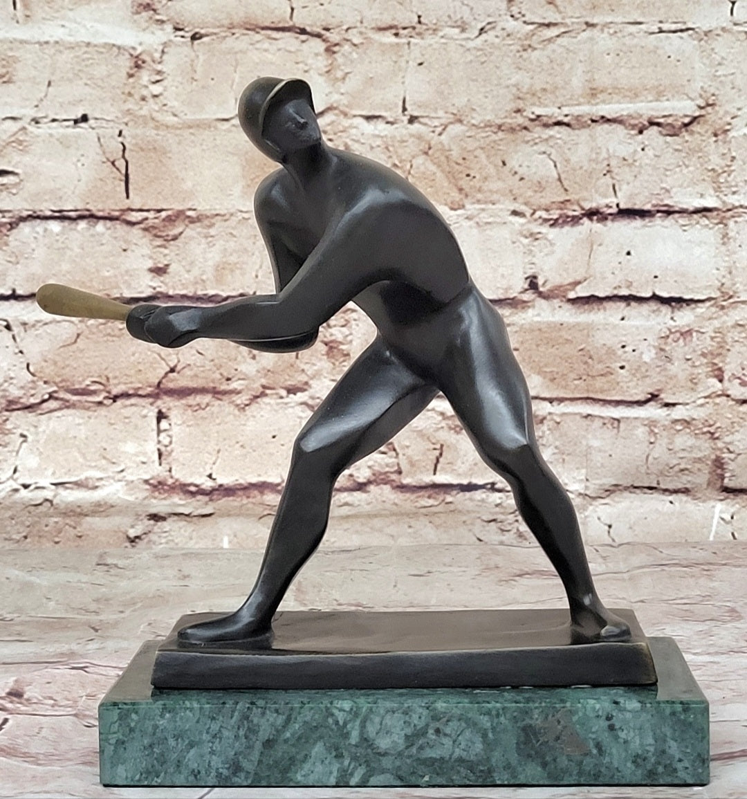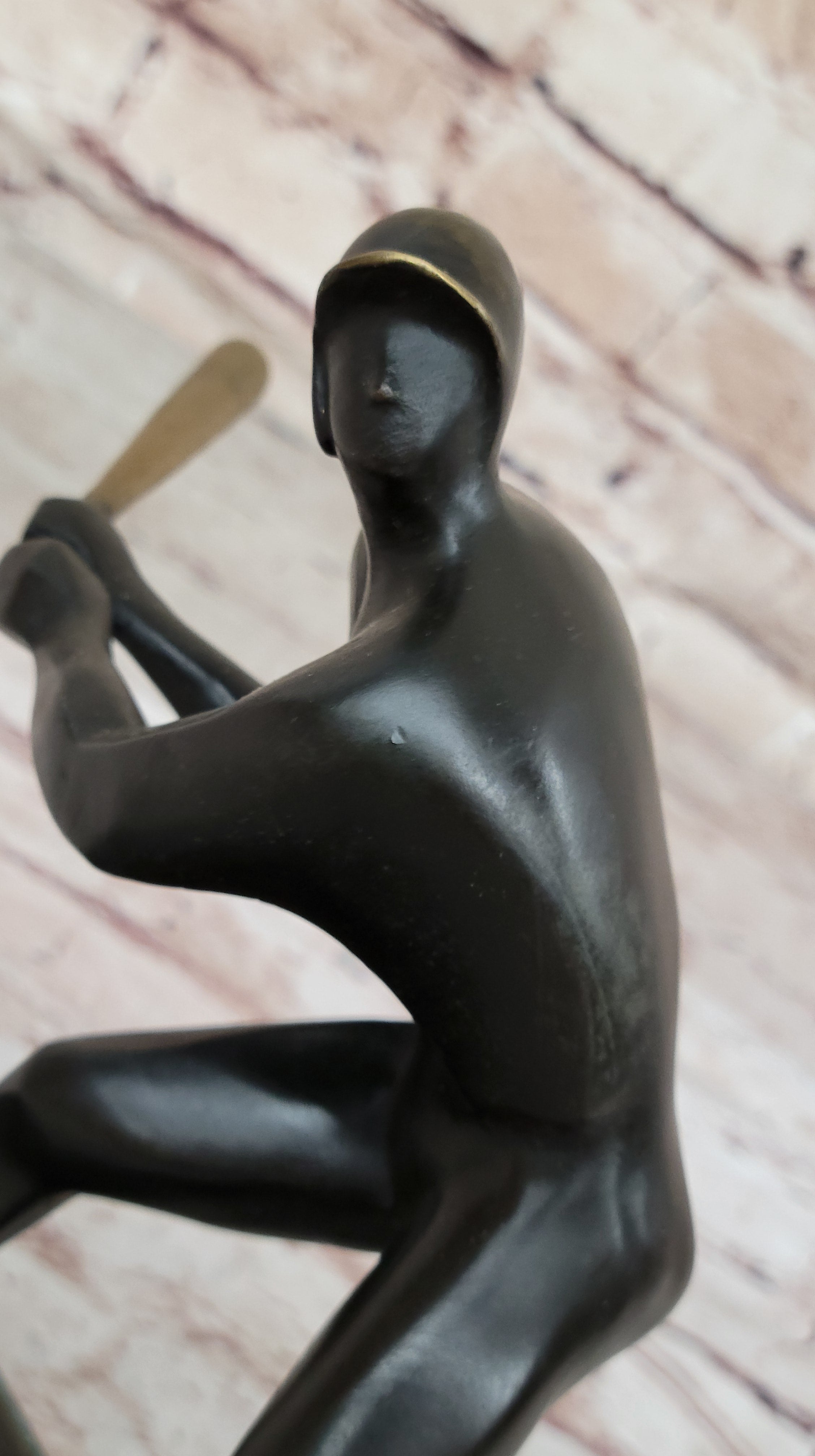 Signed Original Mario Nick Abstract Mid Century Baseball Player Bronze Sculpture