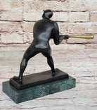 Mounted on a marble base, this sculpture not only captures the action and excitement of baseball but also adds a touch of elegance to any space. Invite the energy of the game into your home or office with this remarkable and finely crafted bronze sculpture, a tribute to the timeless appeal of America's favorite pastime.Bronze Dimensions with Marble Base: Height 8" X Width 6.5"
