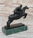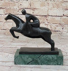 Signed Original Mario Nick Sport Jockey on Horse Bronze Sculpture Statue Figure