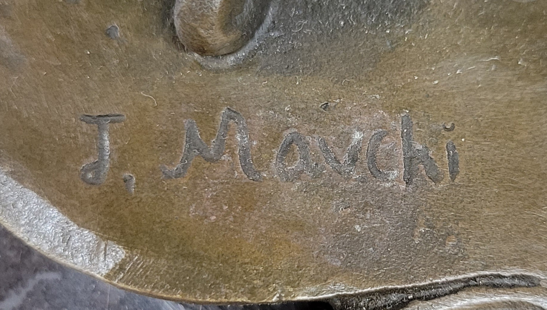 Capture the elegance and charm of the 1920s with this exquisite bronze sculpture depicting two women. Perfect for a sophisticated living room or a young lady's bedroom, the sculpture showcases one woman standing gracefully while the other is seated on a chair, posing for their photo shoot. The intricately carved details, from their floor-length dresses to the delicate necklace, waist belt, overcoat, and Charleston hat, bring their image to life in stunning perfection. Crafted using the renowned "Lost Wax Method," this sculpture boasts a beautiful brown patina that adds a touch of vintage allure. Mounted on a sleek marble base, this 100% bronze and handmade artwork is a true testament to the artist's skill and passion. It is proudly signed by the talented artist Mavchi.